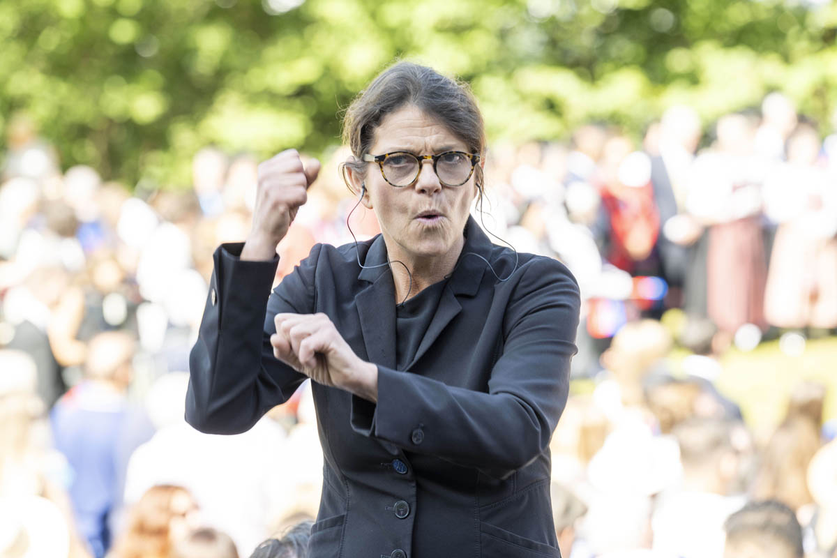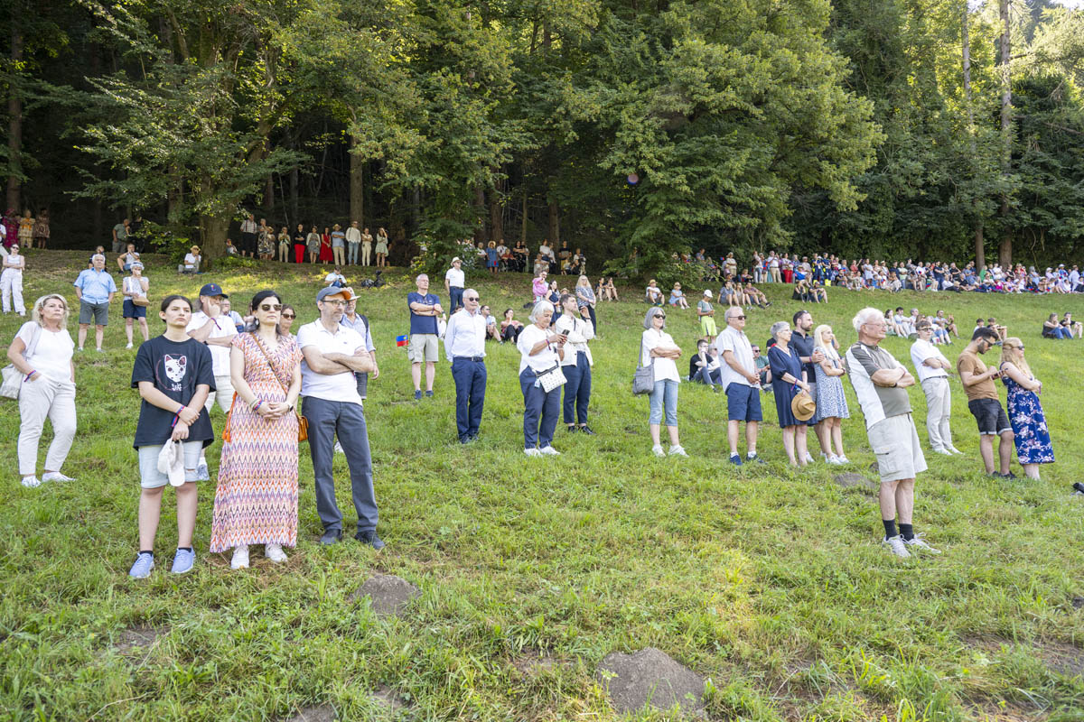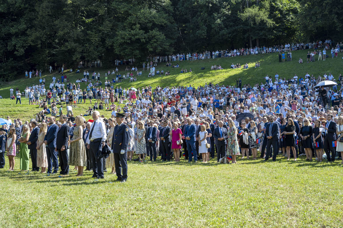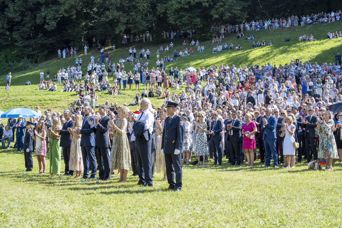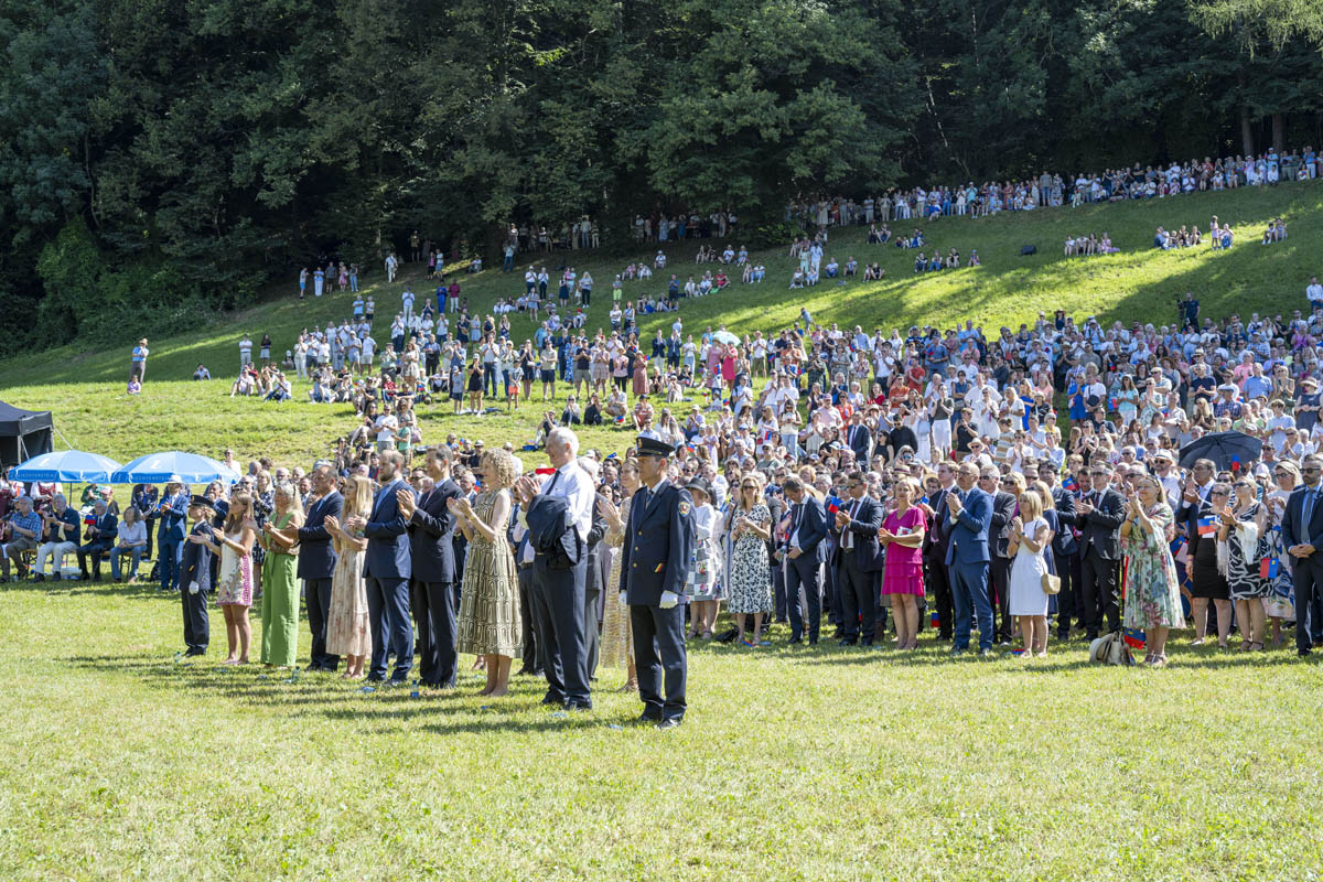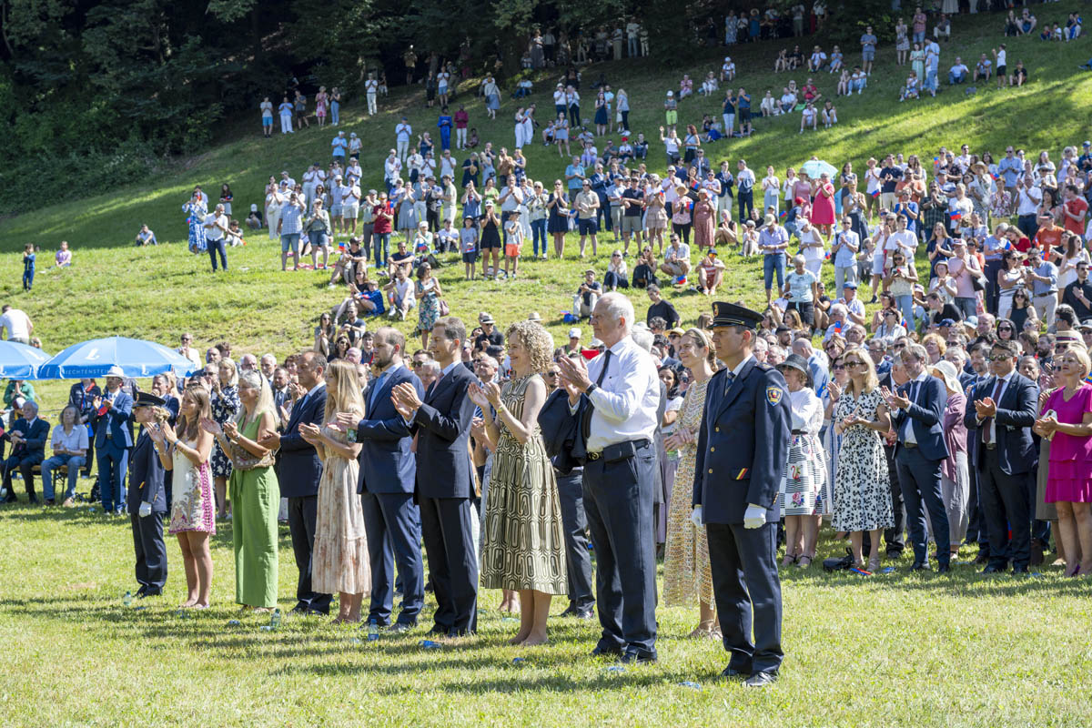 Offizieller Staatsakt mit den Ansprachen von S.D. Erbprinz Alois von und zu Liechtenstein und Landtagspräsident Albert Frick. Feierlich umrahmt von der Harmoniemusik Balzers, zusammen mit einer Formation des Young Unlimited Chors aus Mauren. Die Moderatorin Christiani Wetter führte durch den Staatsakt. Fotos: © exclusiv