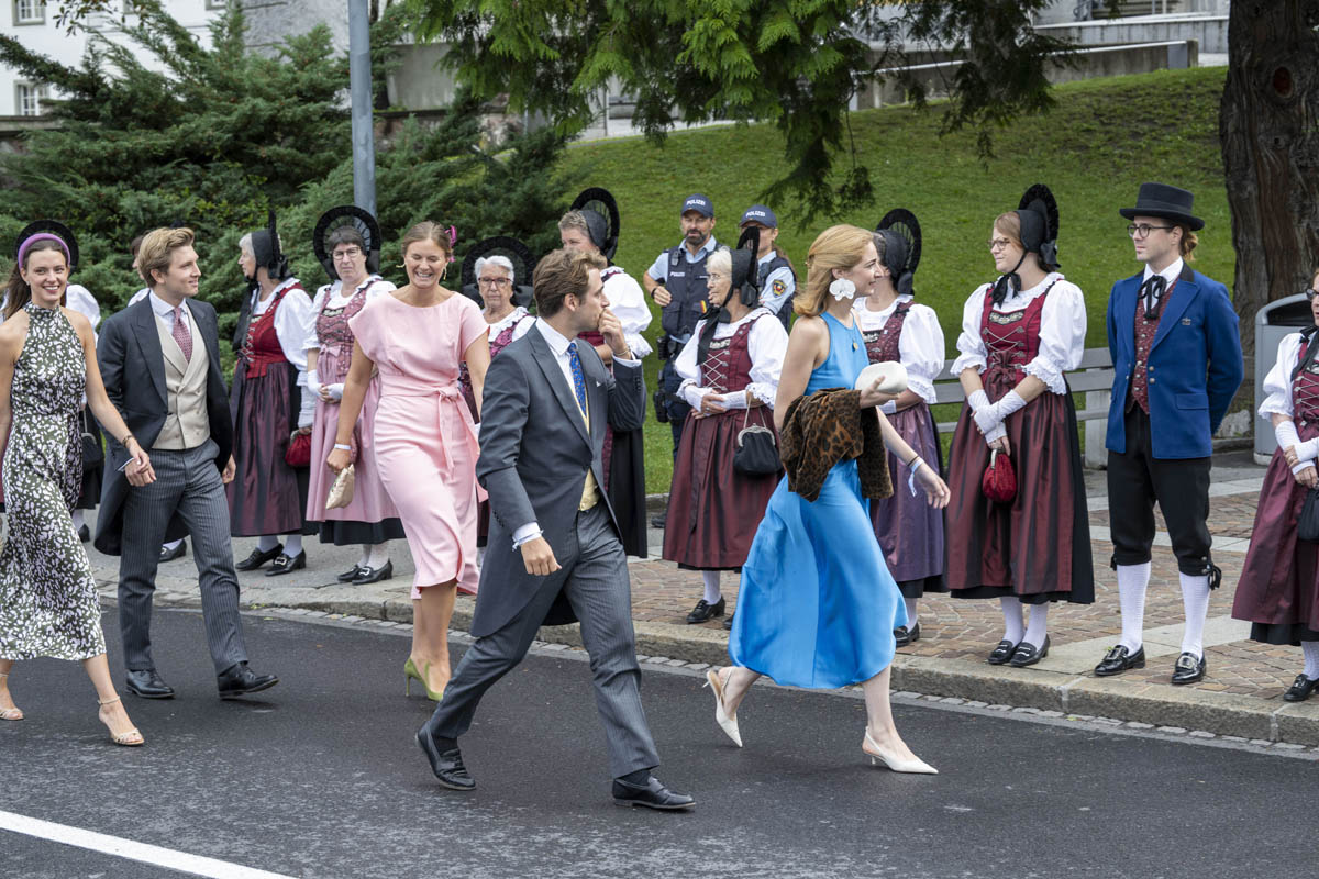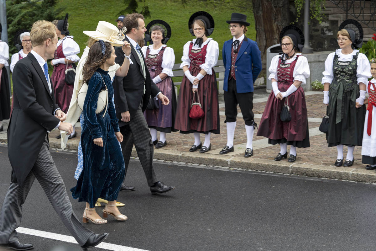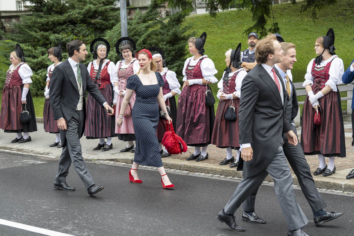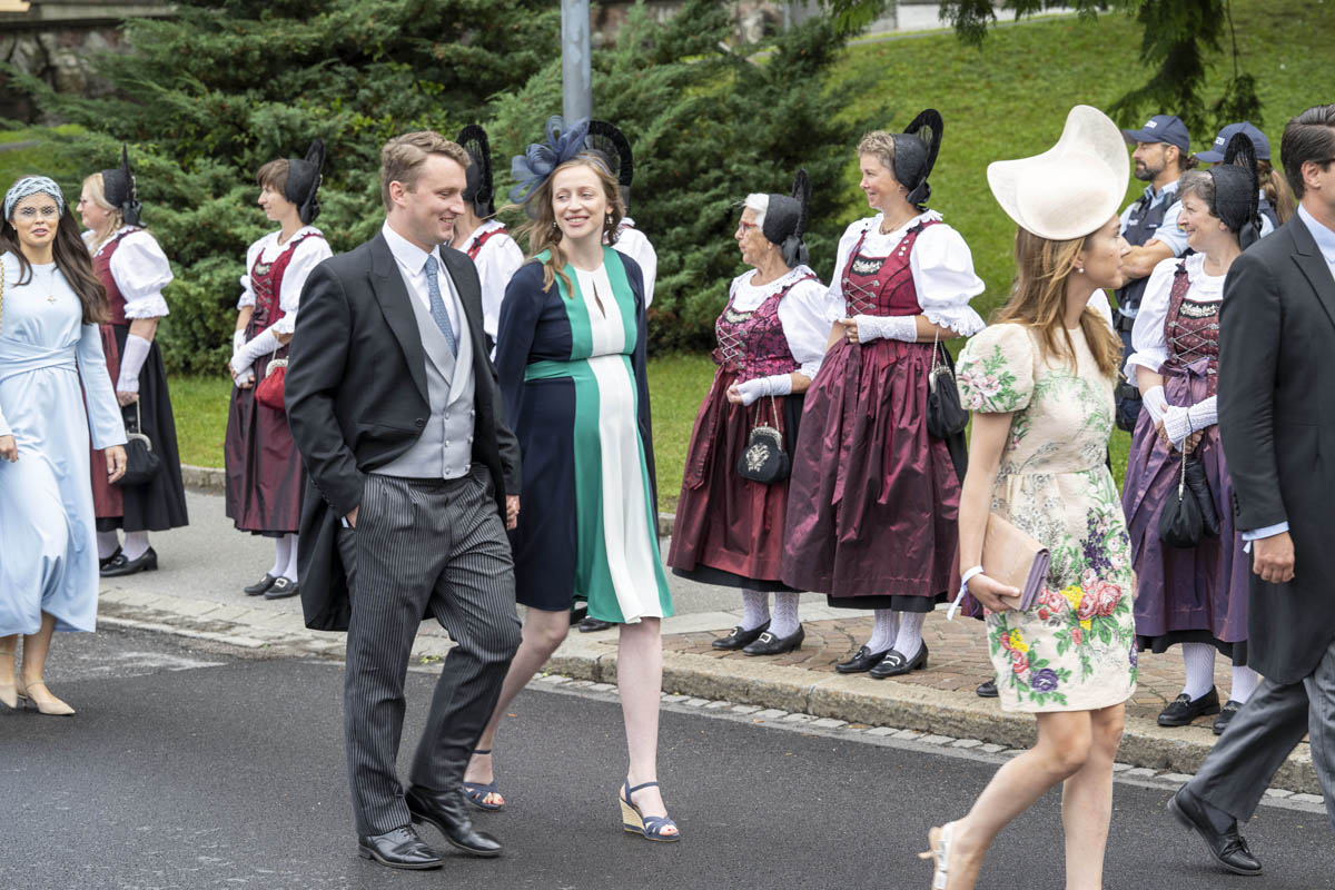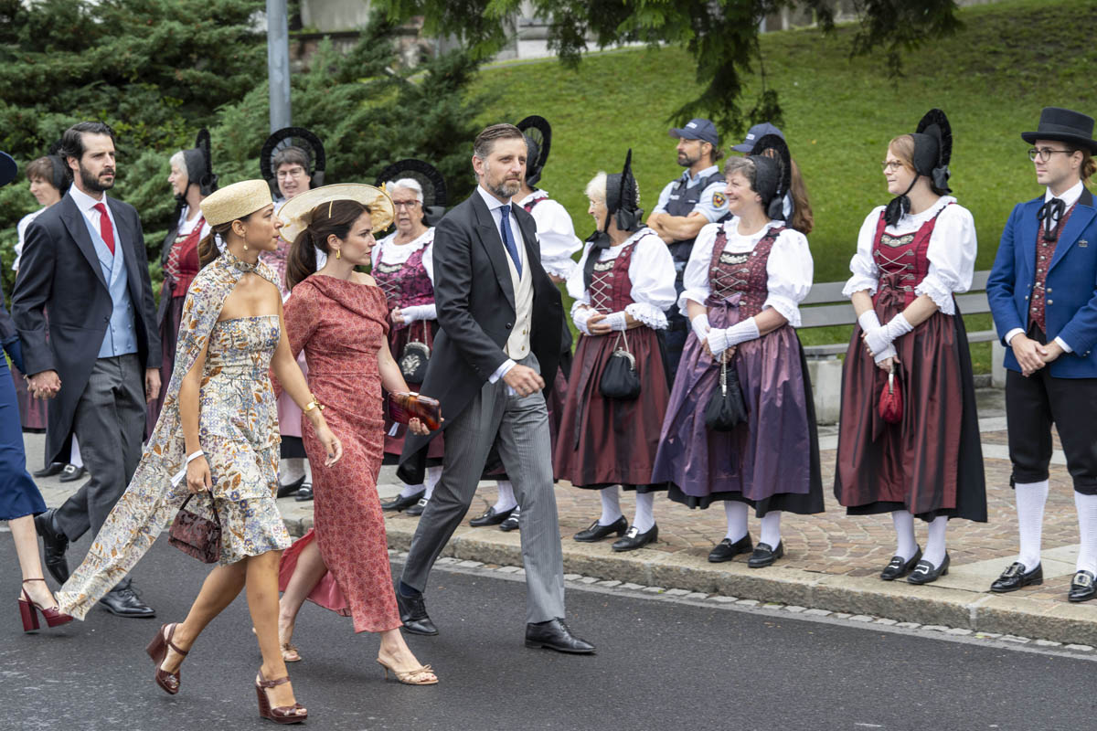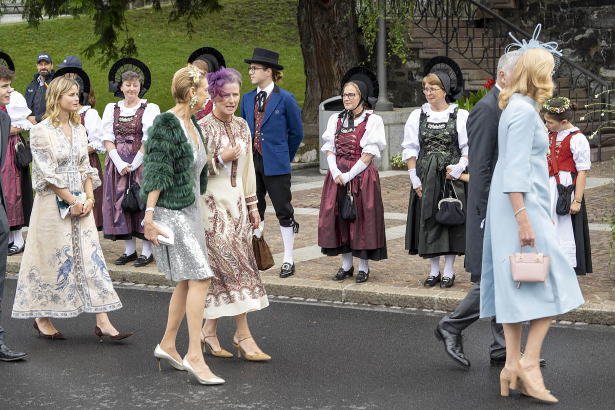 30. August 2025 – Die Hochzeitsfeierlichkeiten begannen am Vormittag mit der feierlichen Ankunft der Gäste an der Kathedrale St. Florin in Vaduz. Pfadfinderinnen und Pfadfinder unterstützten die Gäste beim Eintreffen, während Trachtenfrauen, -mädchen und -jungen Spalier standen.