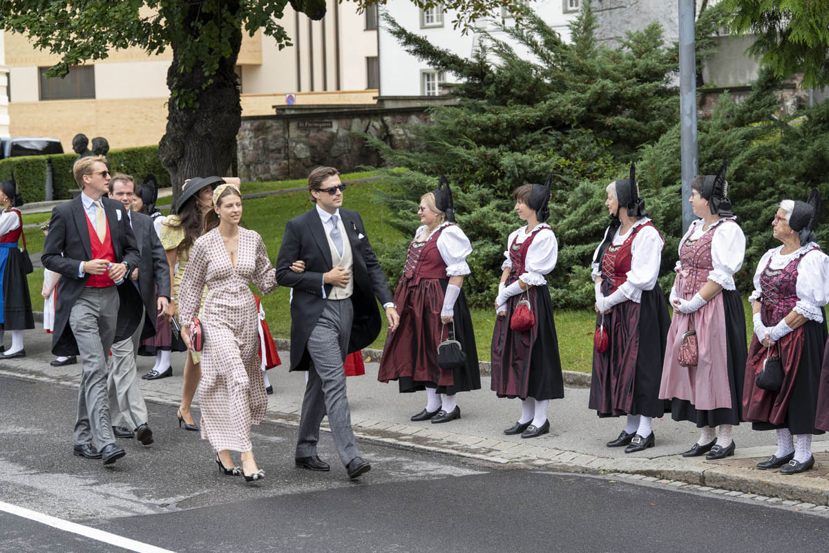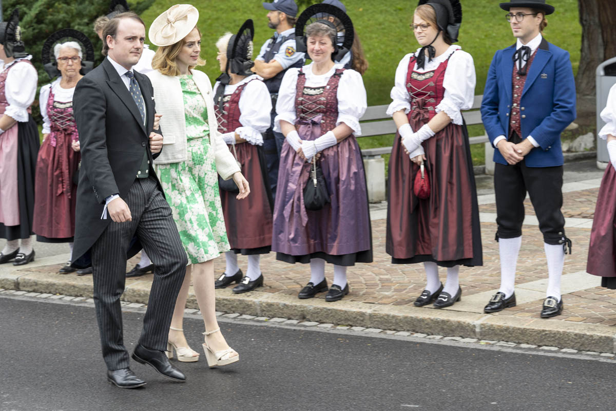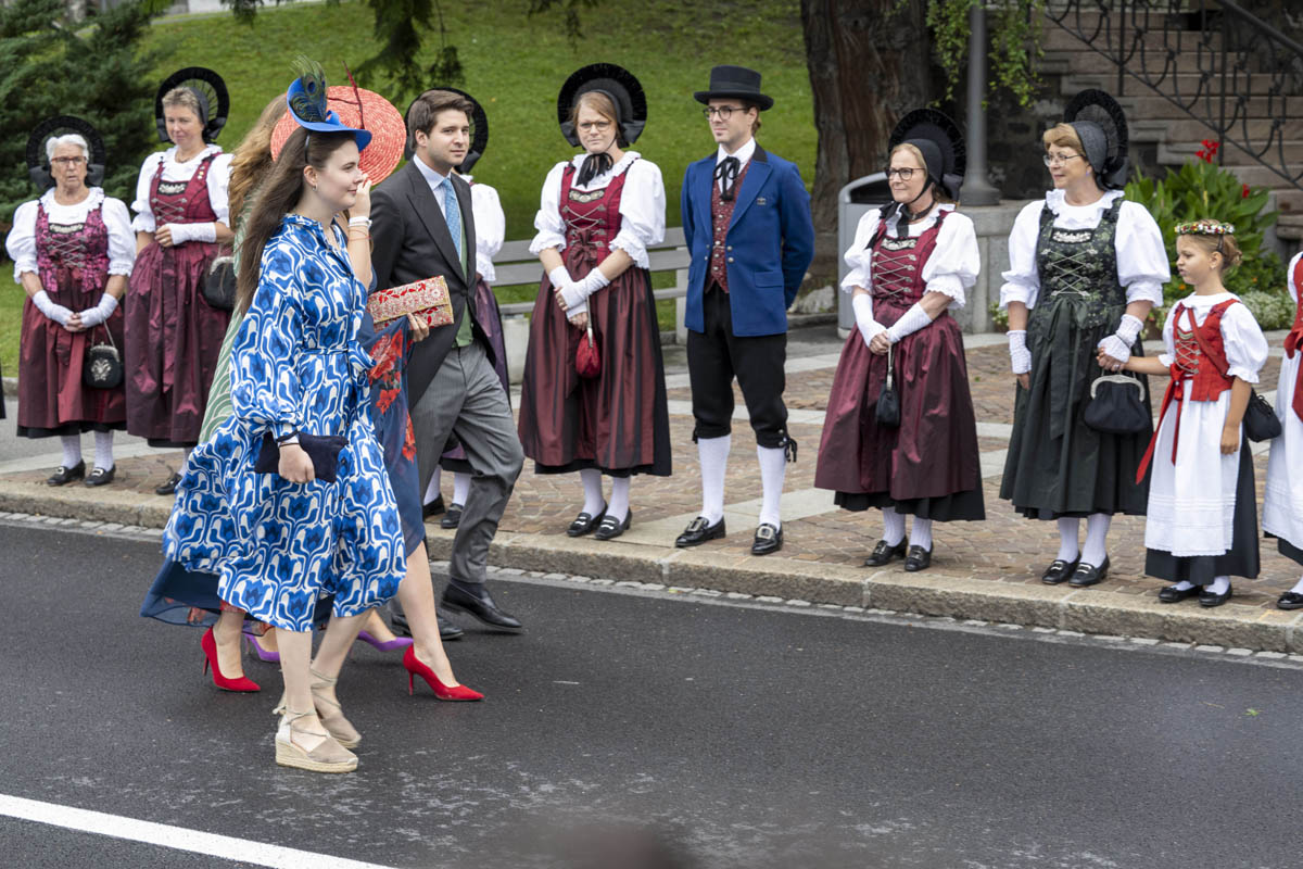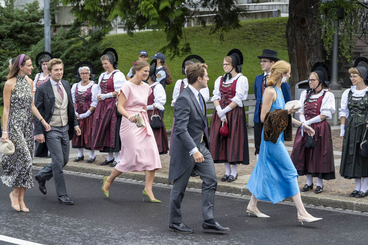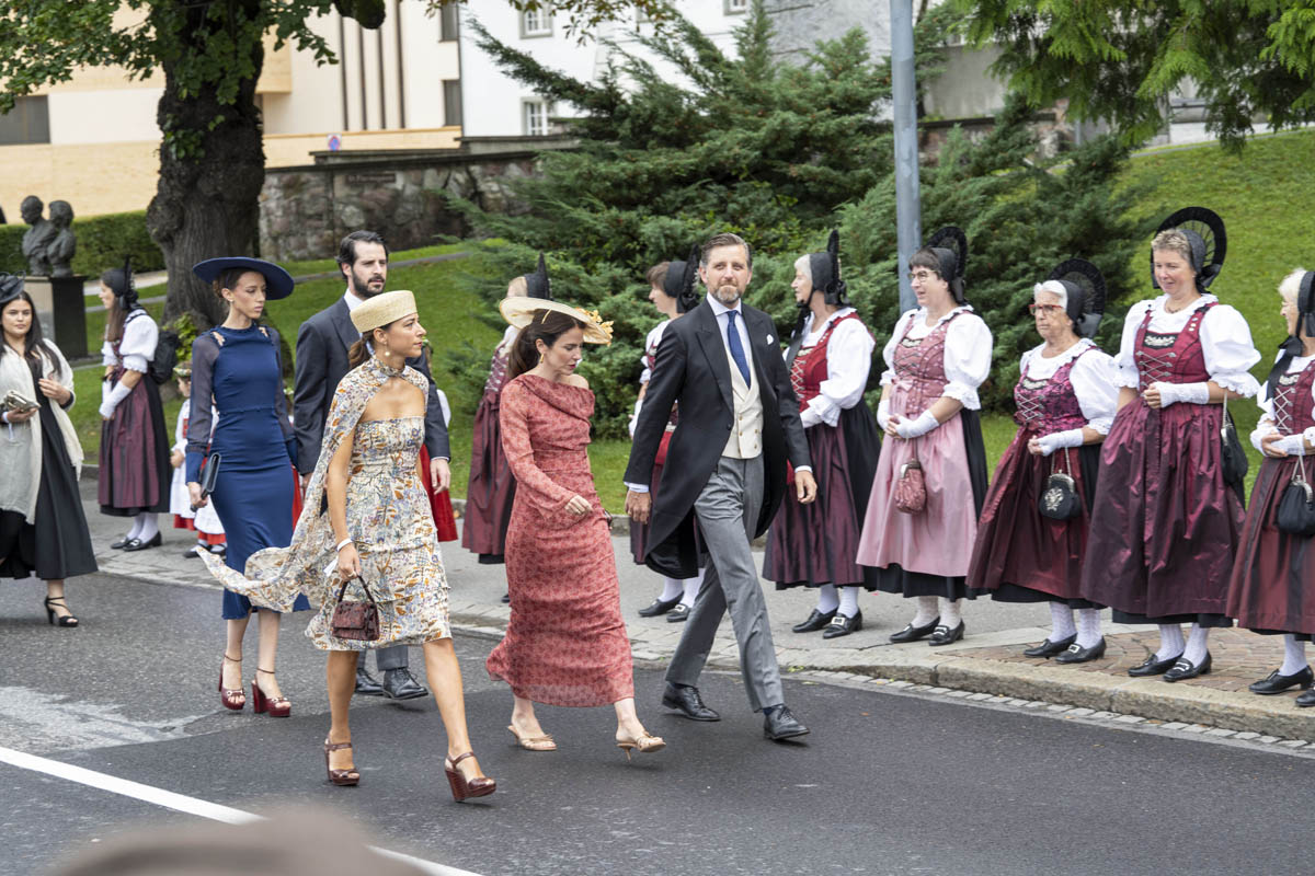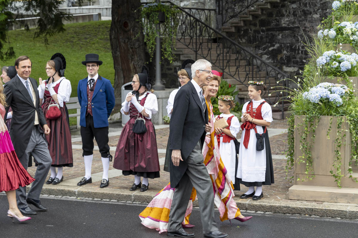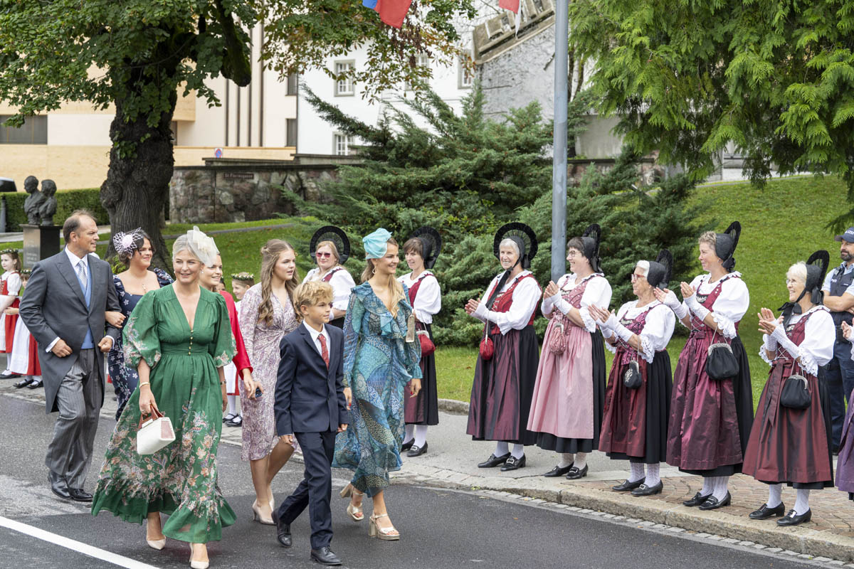 30. August 2025 – Die Hochzeitsfeierlichkeiten begannen am Vormittag mit der feierlichen Ankunft der Gäste an der Kathedrale St. Florin in Vaduz. Pfadfinderinnen und Pfadfinder unterstützten die Gäste beim Eintreffen, während Trachtenfrauen, -mädchen und -jungen Spalier standen.