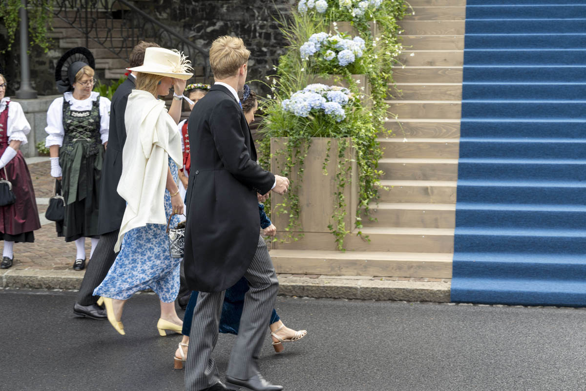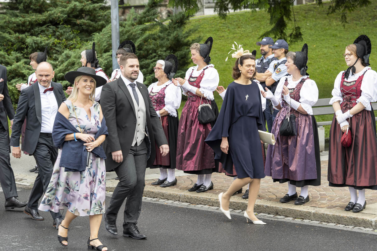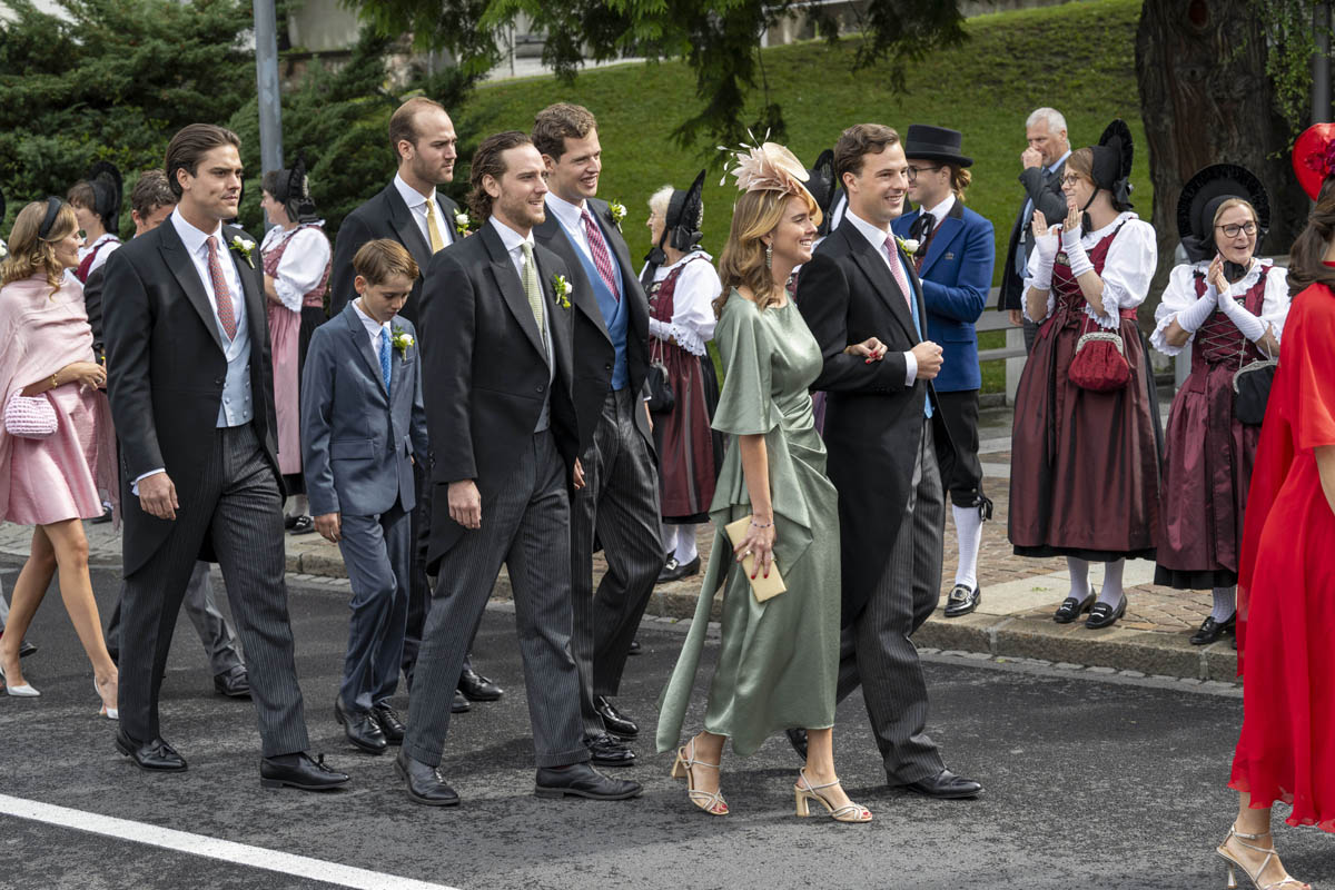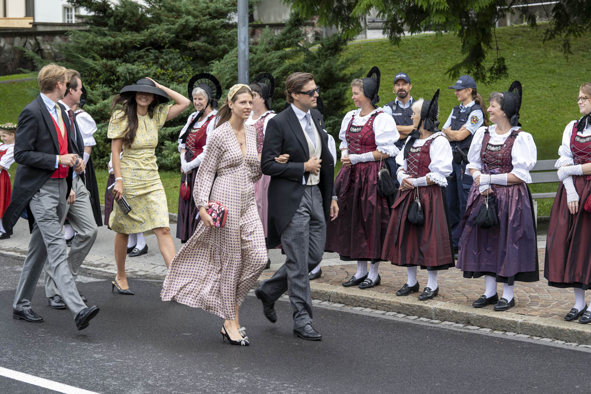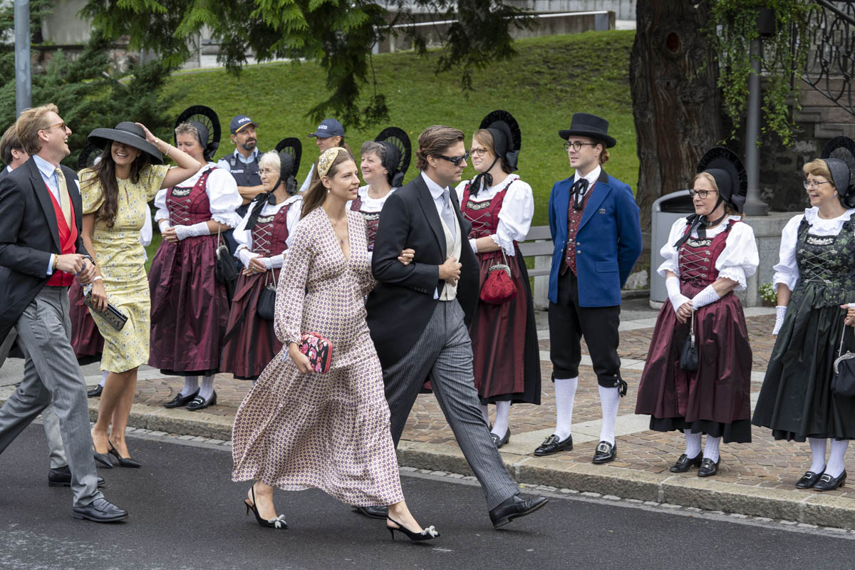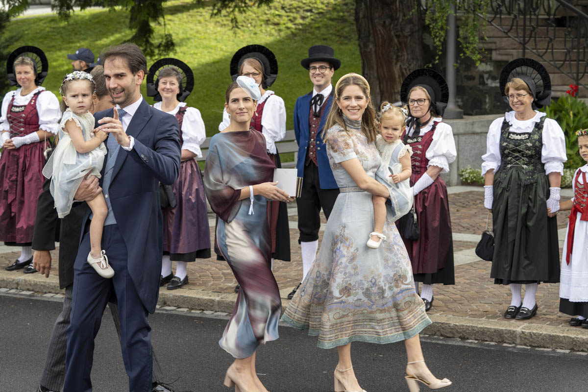 30. August 2025 – Die Hochzeitsfeierlichkeiten begannen am Vormittag mit der feierlichen Ankunft der Gäste an der Kathedrale St. Florin in Vaduz. Pfadfinderinnen und Pfadfinder unterstützten die Gäste beim Eintreffen, während Trachtenfrauen, -mädchen und -jungen Spalier standen.