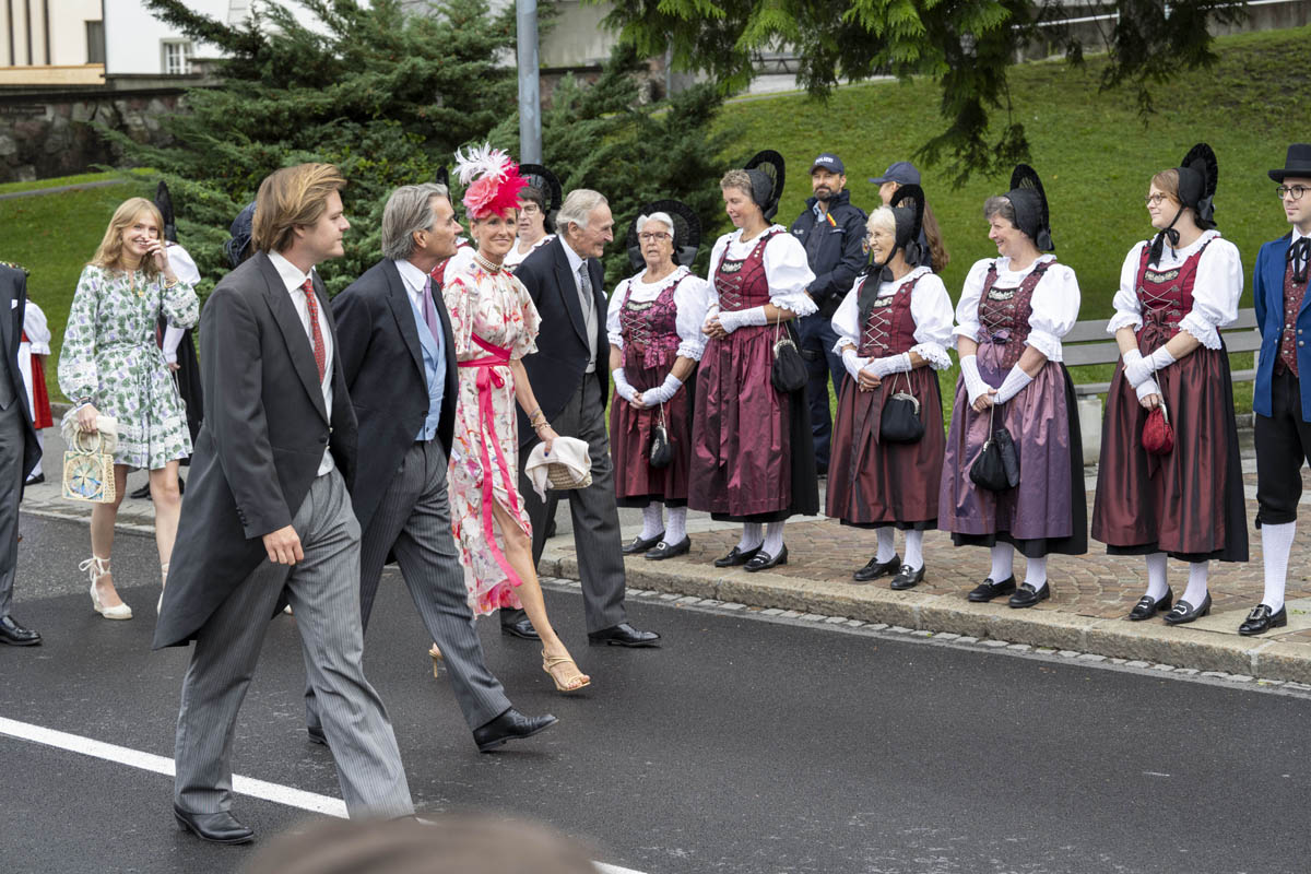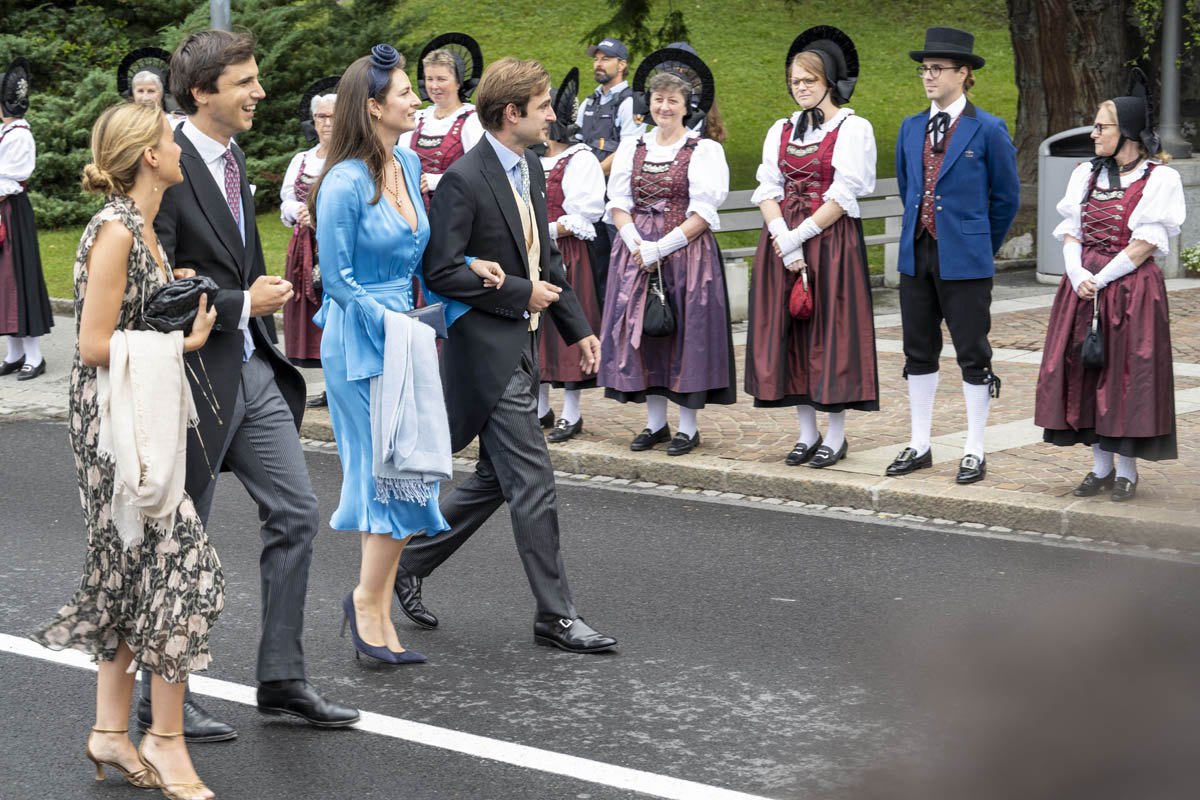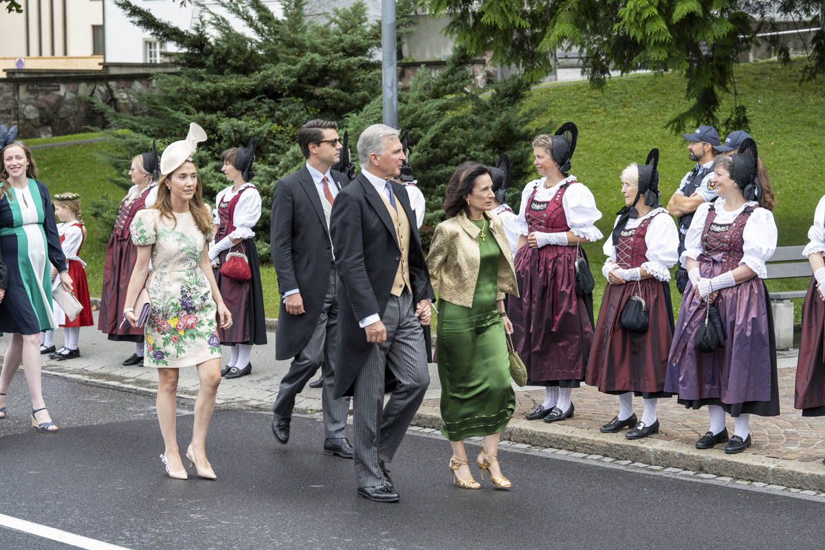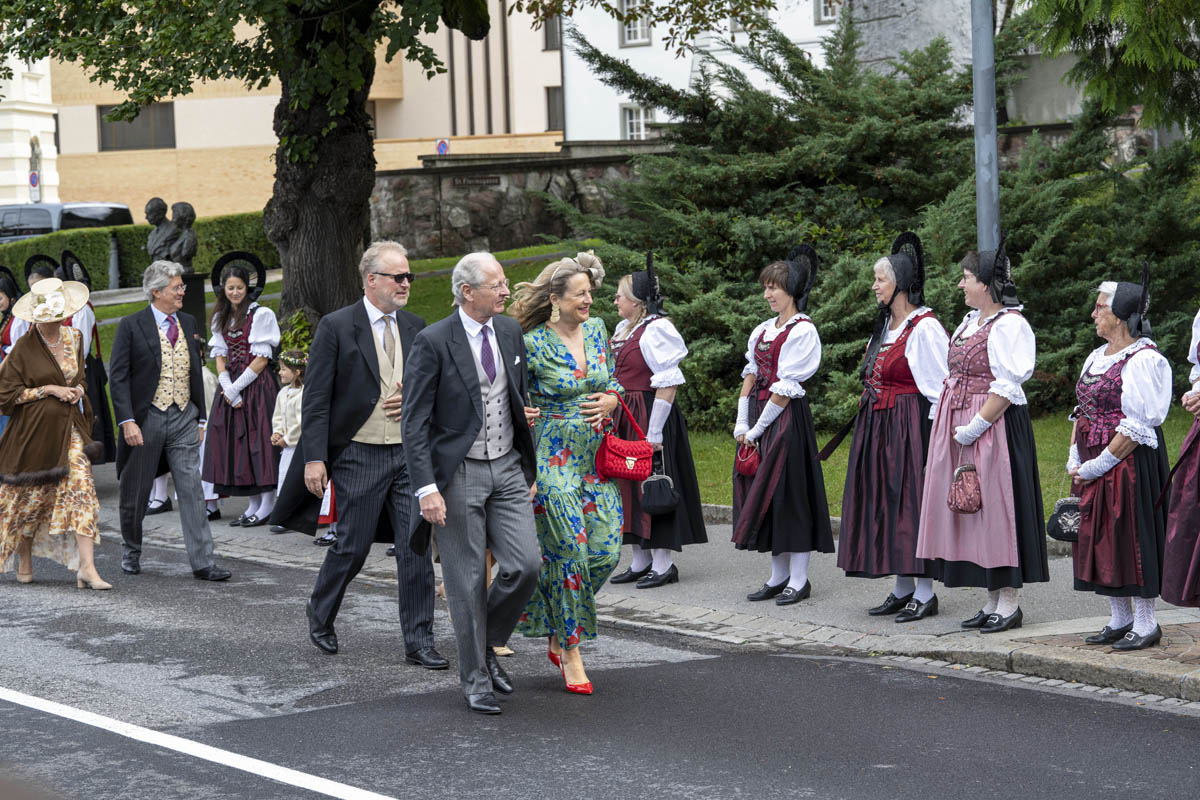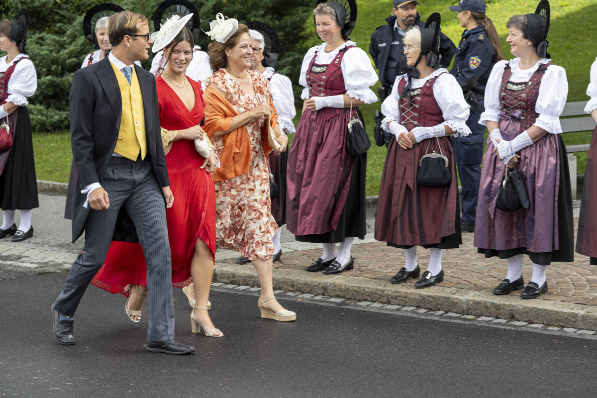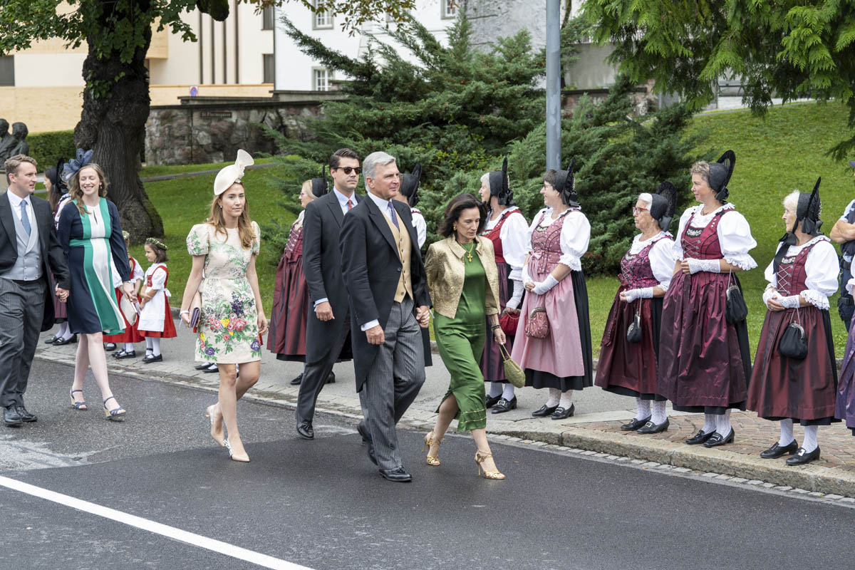 30. August 2025 – Die Hochzeitsfeierlichkeiten begannen am Vormittag mit der feierlichen Ankunft der Gäste an der Kathedrale St. Florin in Vaduz. Pfadfinderinnen und Pfadfinder unterstützten die Gäste beim Eintreffen, während Trachtenfrauen, -mädchen und -jungen Spalier standen.