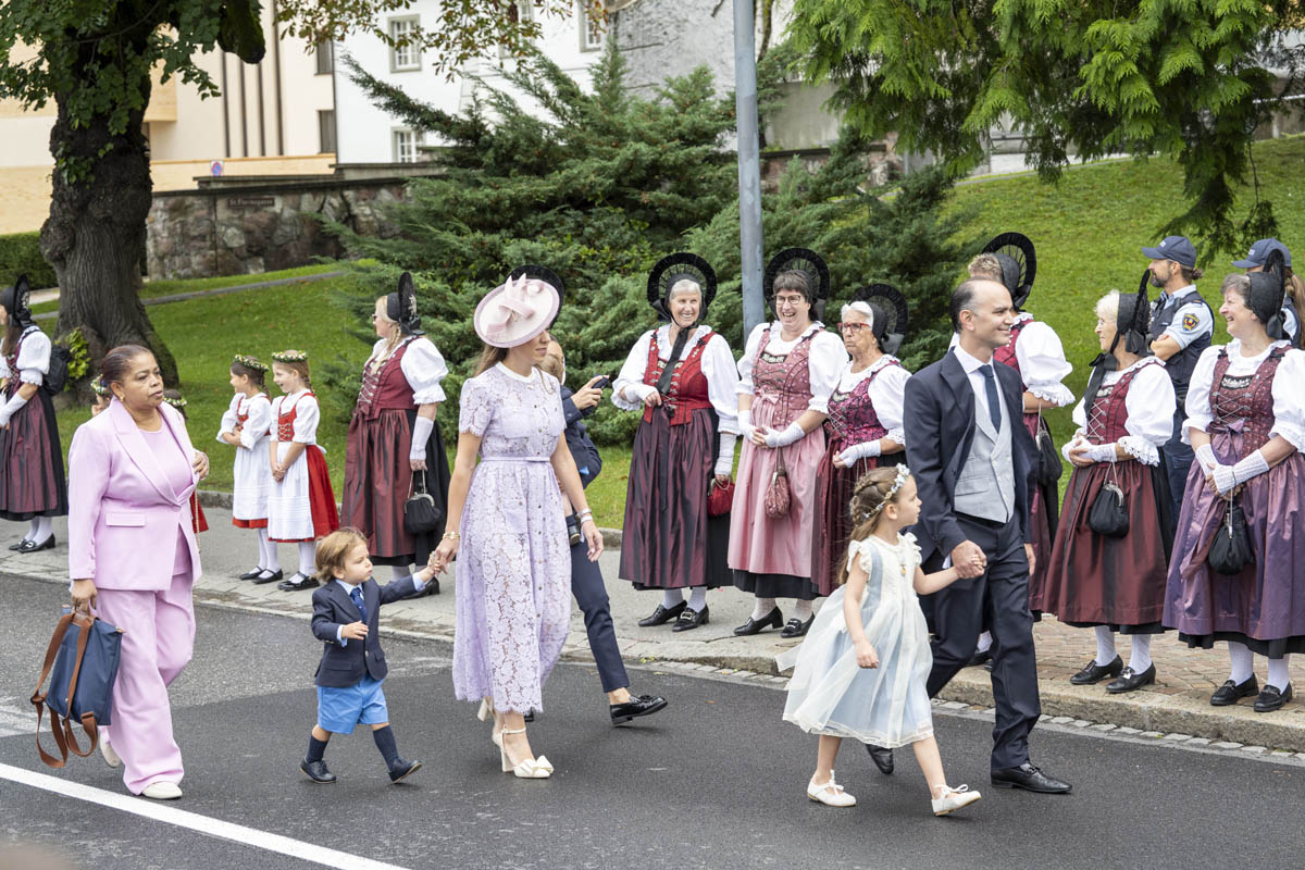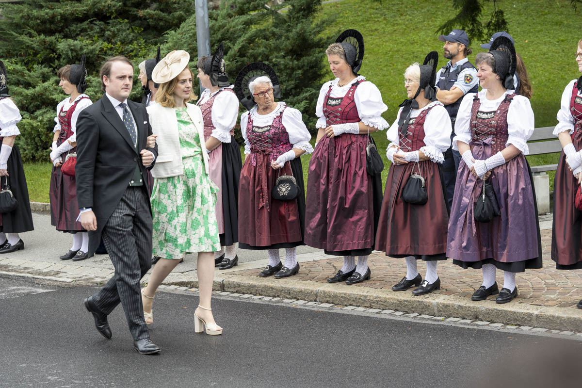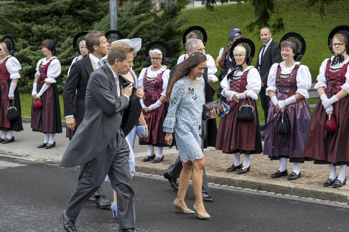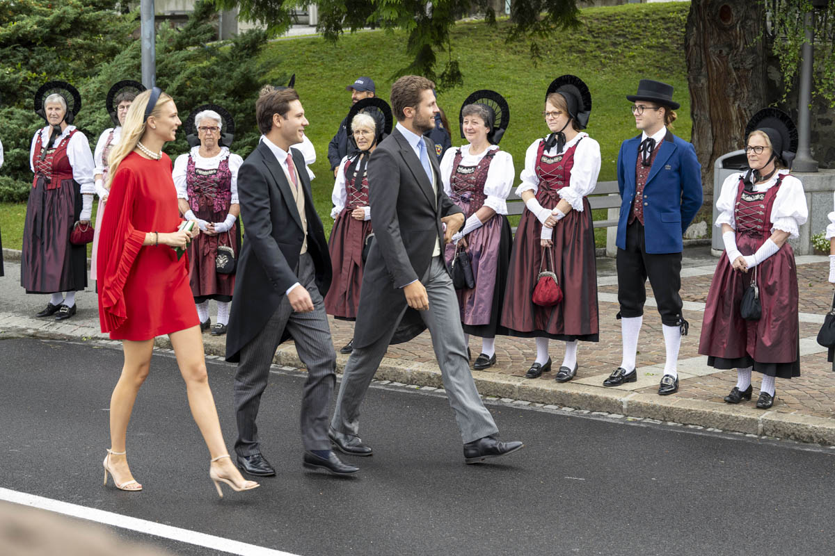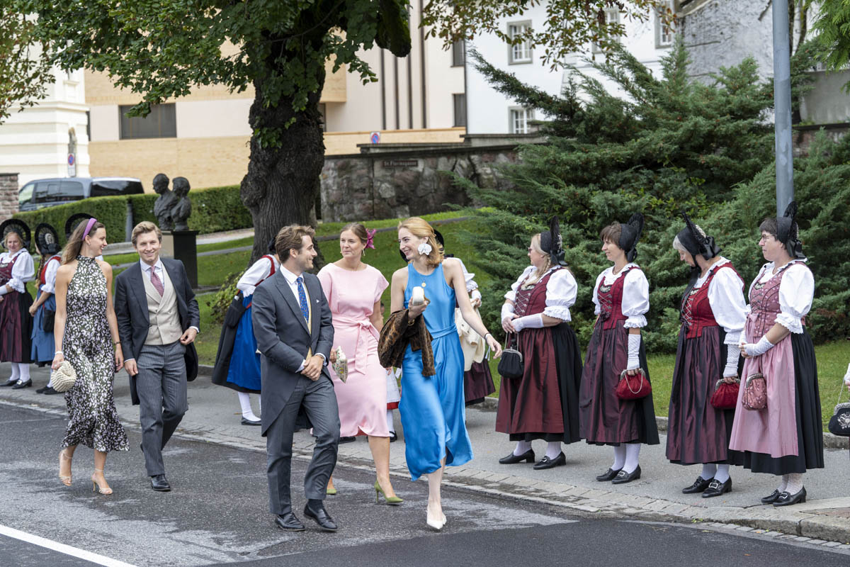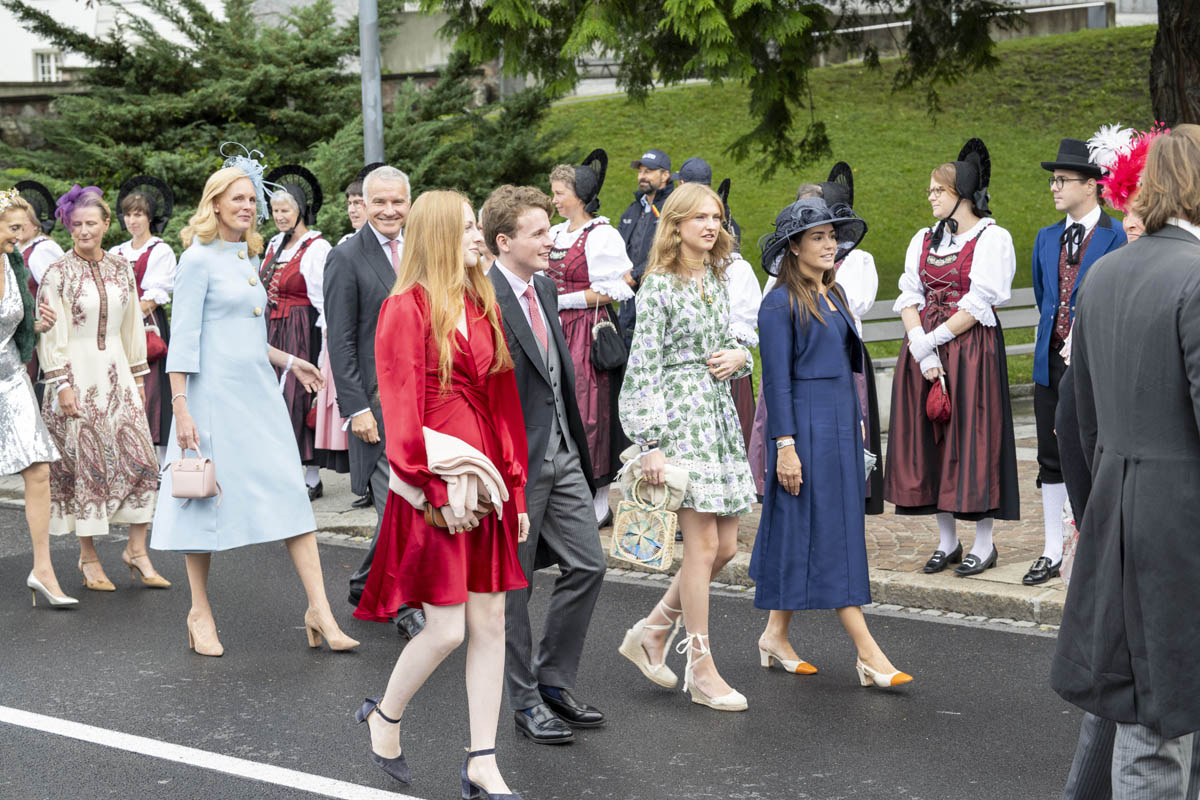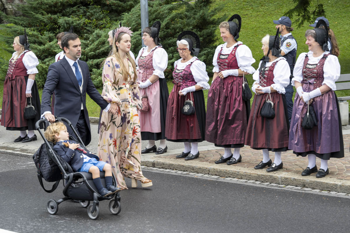 30. August 2025 – Die Hochzeitsfeierlichkeiten begannen am Vormittag mit der feierlichen Ankunft der Gäste an der Kathedrale St. Florin in Vaduz. Pfadfinderinnen und Pfadfinder unterstützten die Gäste beim Eintreffen, während Trachtenfrauen, -mädchen und -jungen Spalier standen.