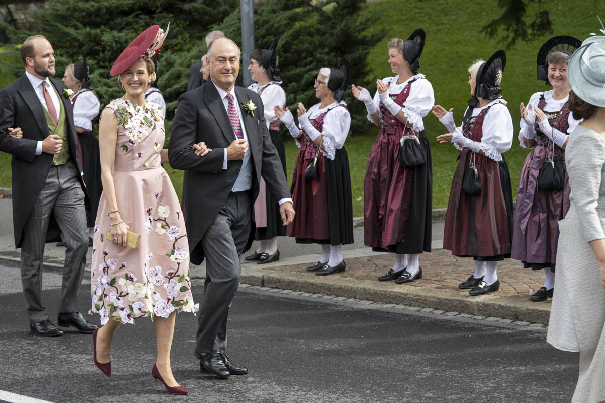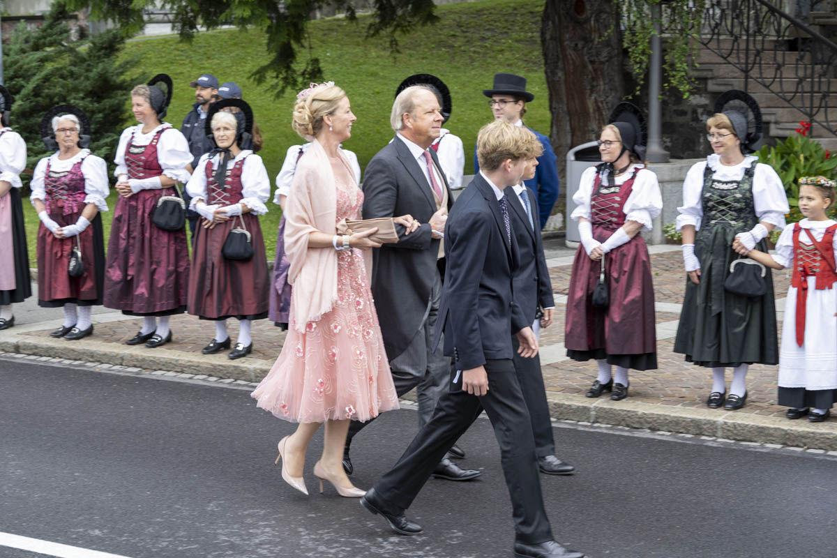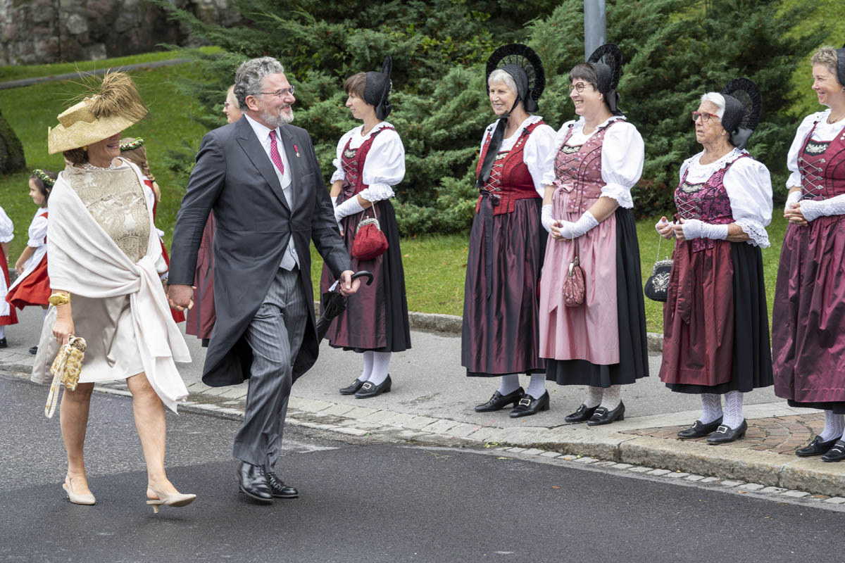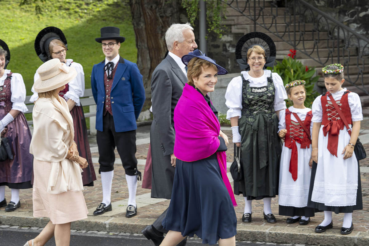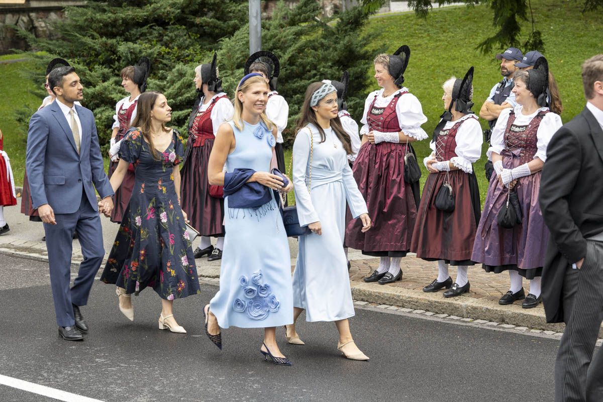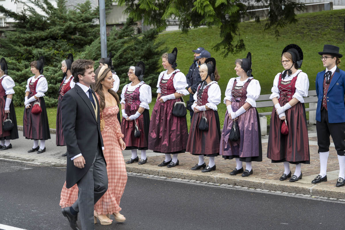 30. August 2025 – Die Hochzeitsfeierlichkeiten begannen am Vormittag mit der feierlichen Ankunft der Gäste an der Kathedrale St. Florin in Vaduz. Pfadfinderinnen und Pfadfinder unterstützten die Gäste beim Eintreffen, während Trachtenfrauen, -mädchen und -jungen Spalier standen.