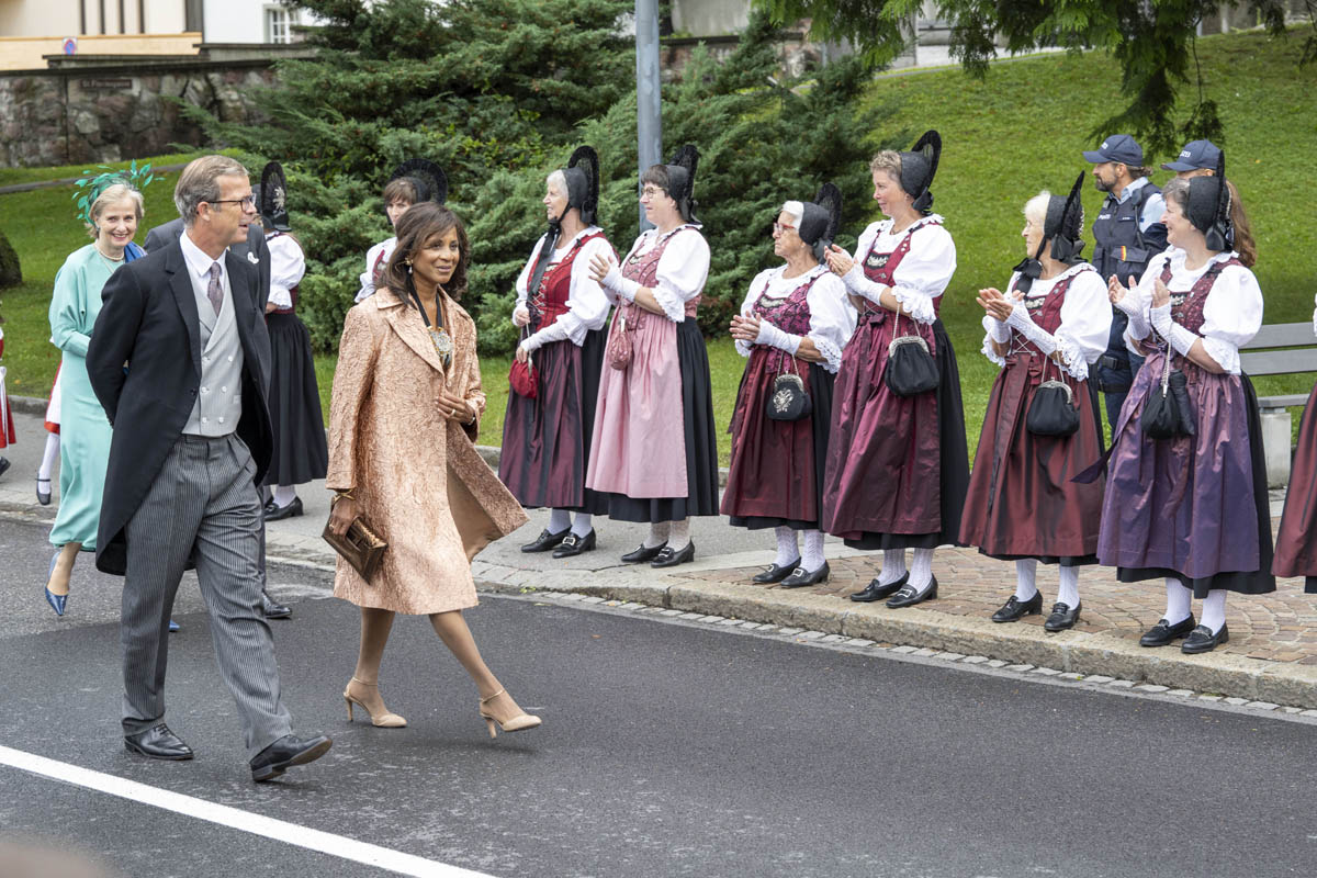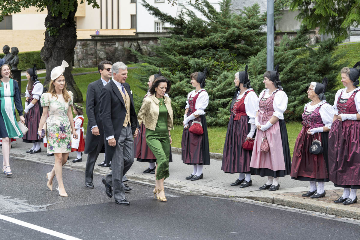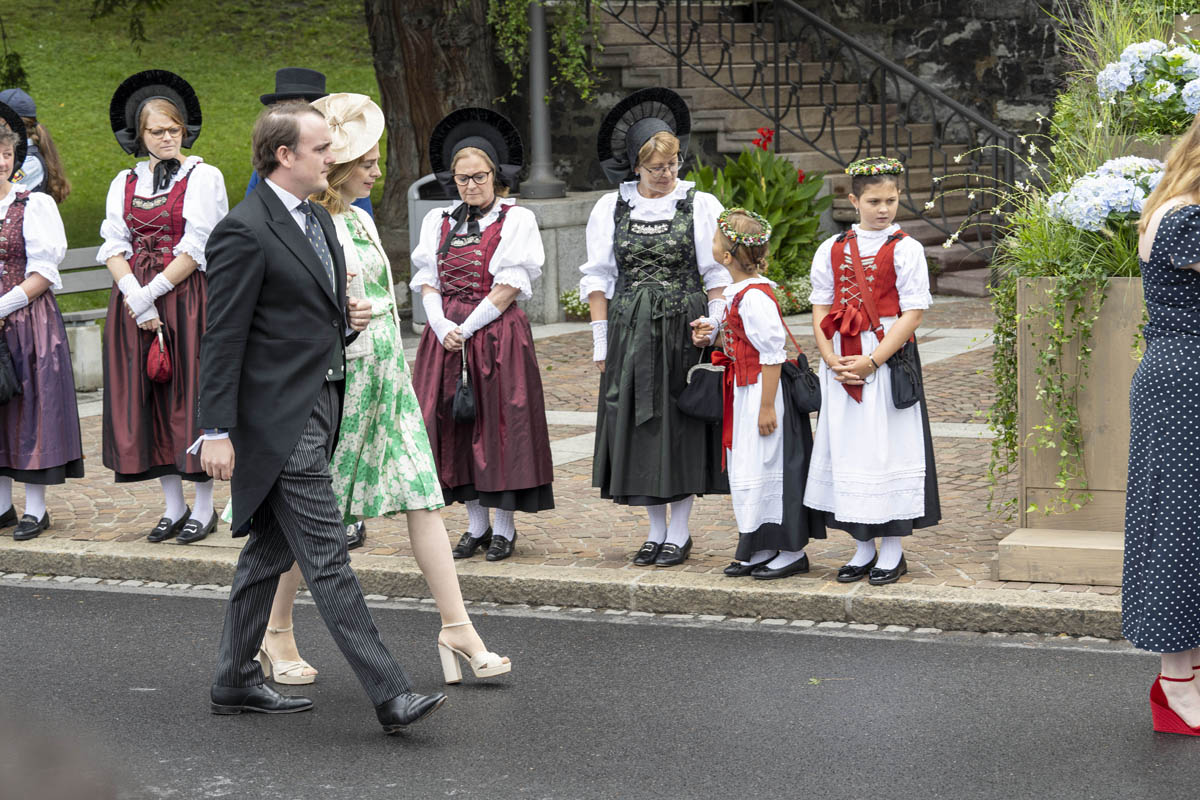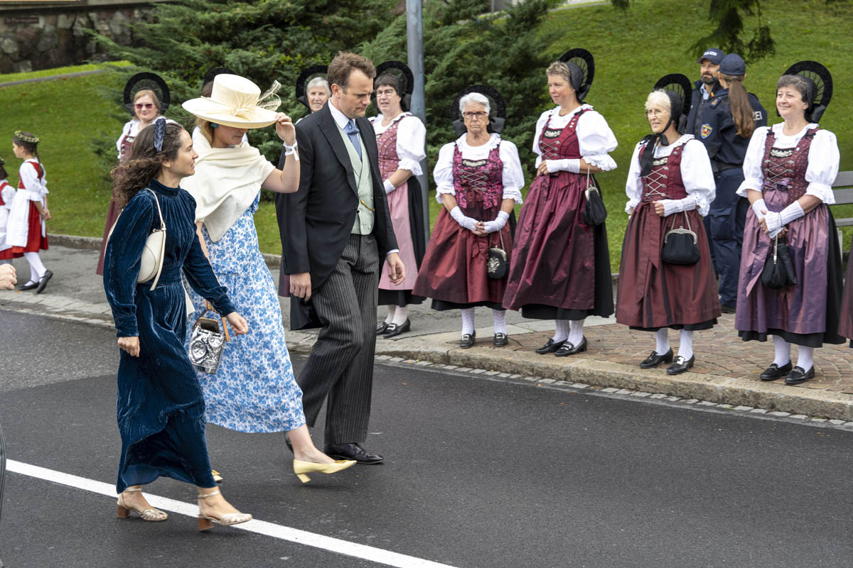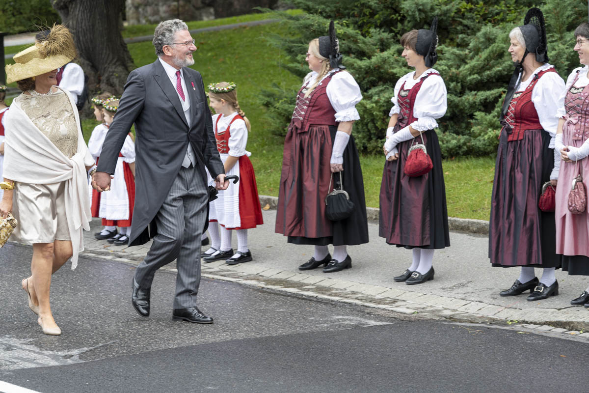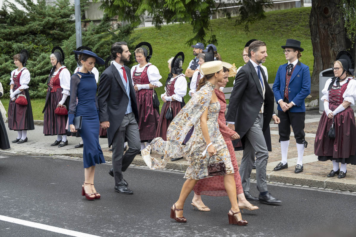 30. August 2025 – Die Hochzeitsfeierlichkeiten begannen am Vormittag mit der feierlichen Ankunft der Gäste an der Kathedrale St. Florin in Vaduz. Pfadfinderinnen und Pfadfinder unterstützten die Gäste beim Eintreffen, während Trachtenfrauen, -mädchen und -jungen Spalier standen.