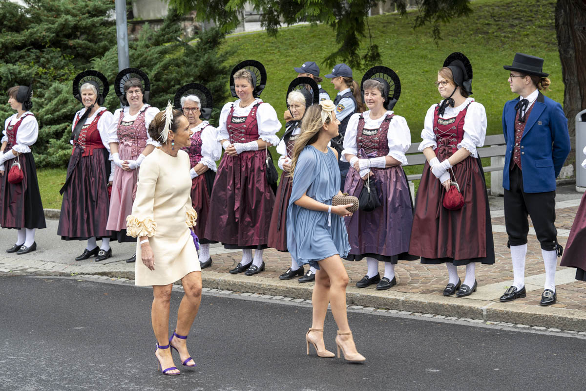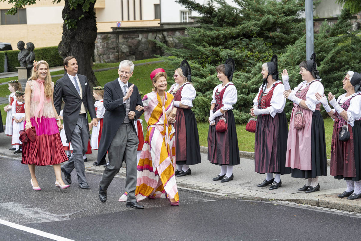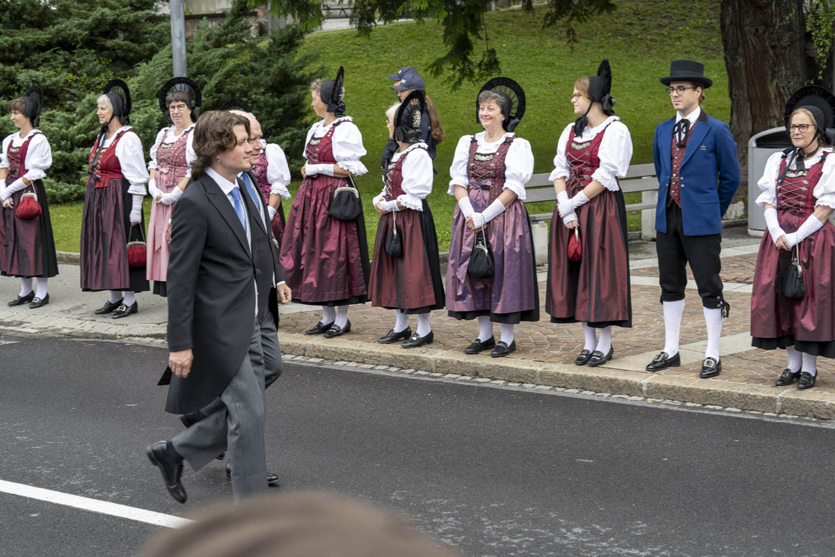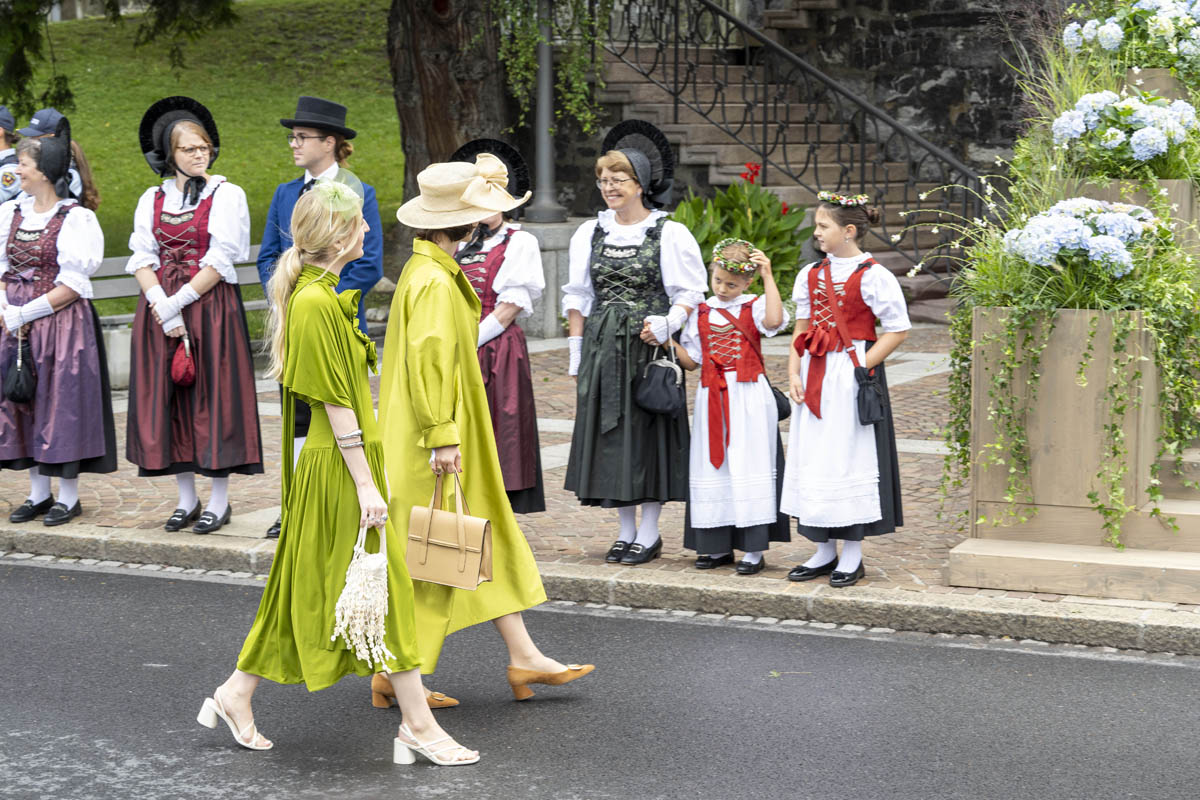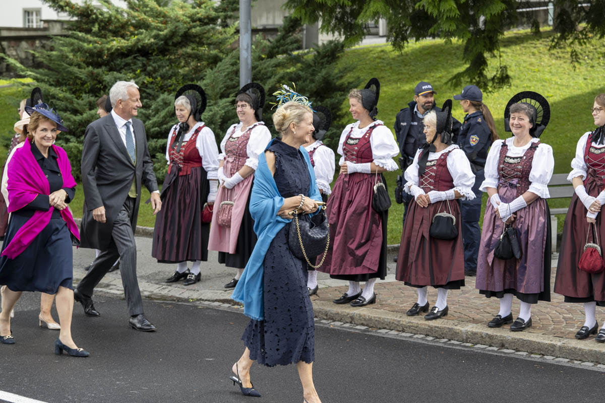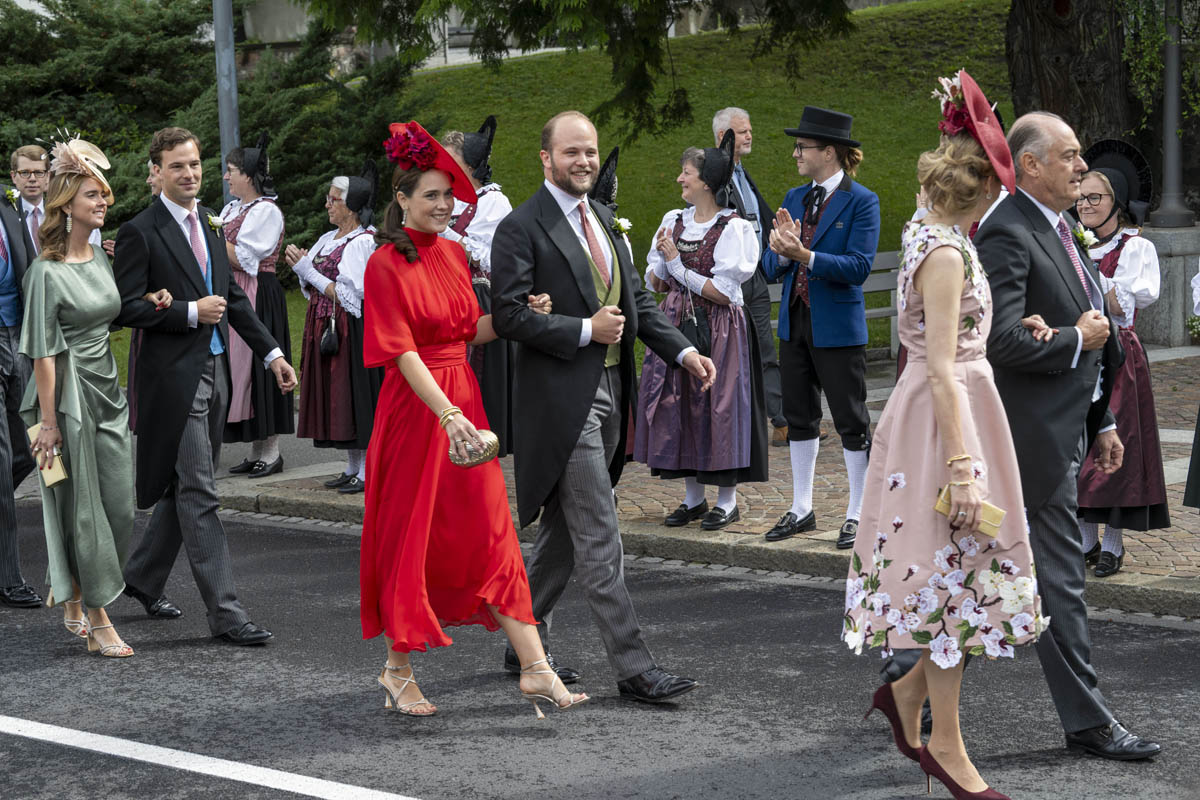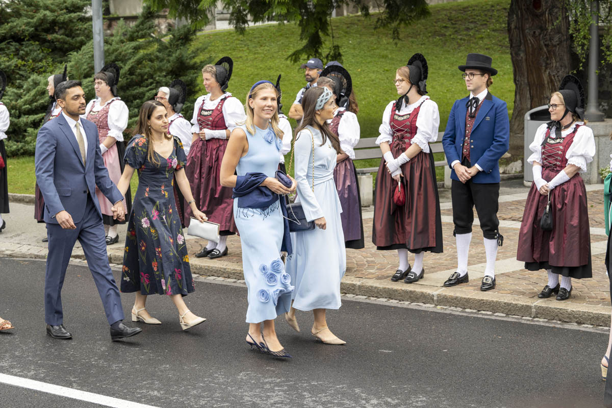 30. August 2025 – Die Hochzeitsfeierlichkeiten begannen am Vormittag mit der feierlichen Ankunft der Gäste an der Kathedrale St. Florin in Vaduz. Pfadfinderinnen und Pfadfinder unterstützten die Gäste beim Eintreffen, während Trachtenfrauen, -mädchen und -jungen Spalier standen.