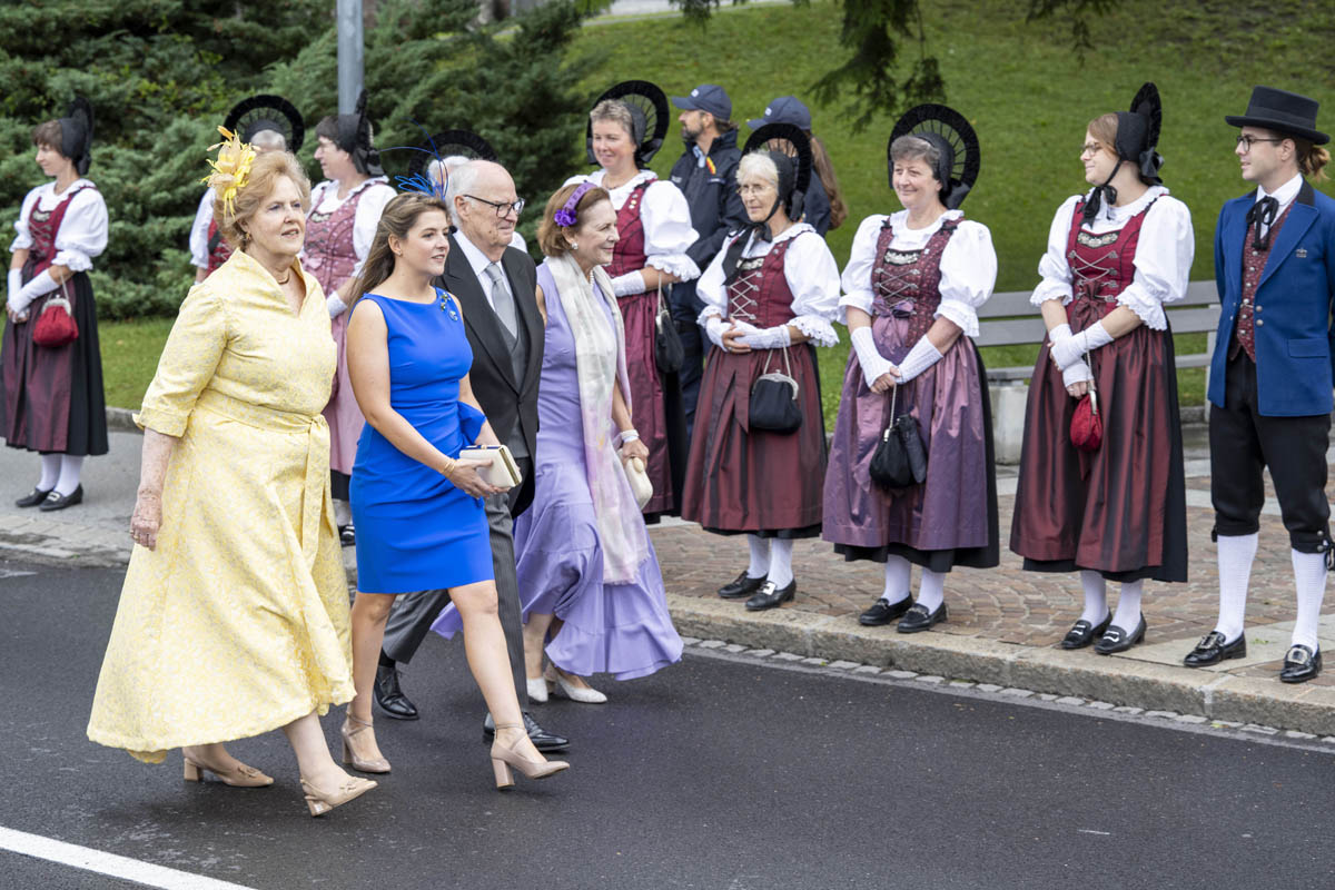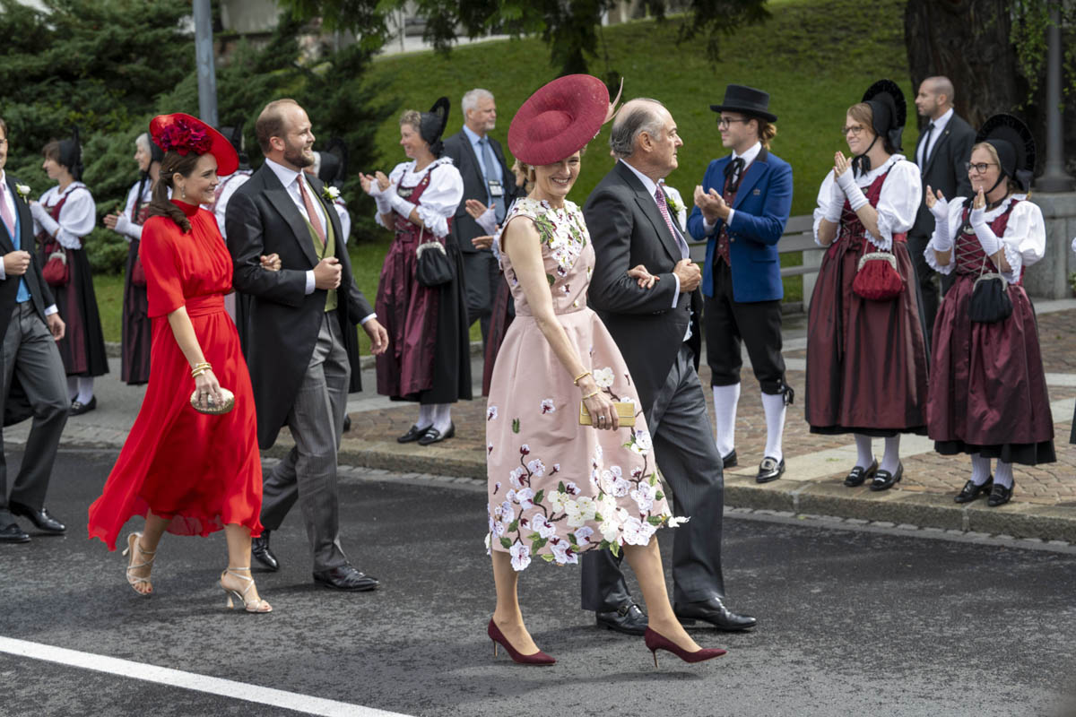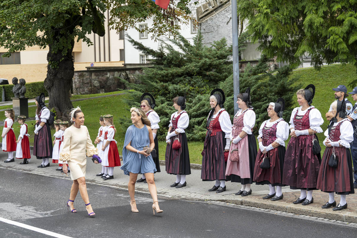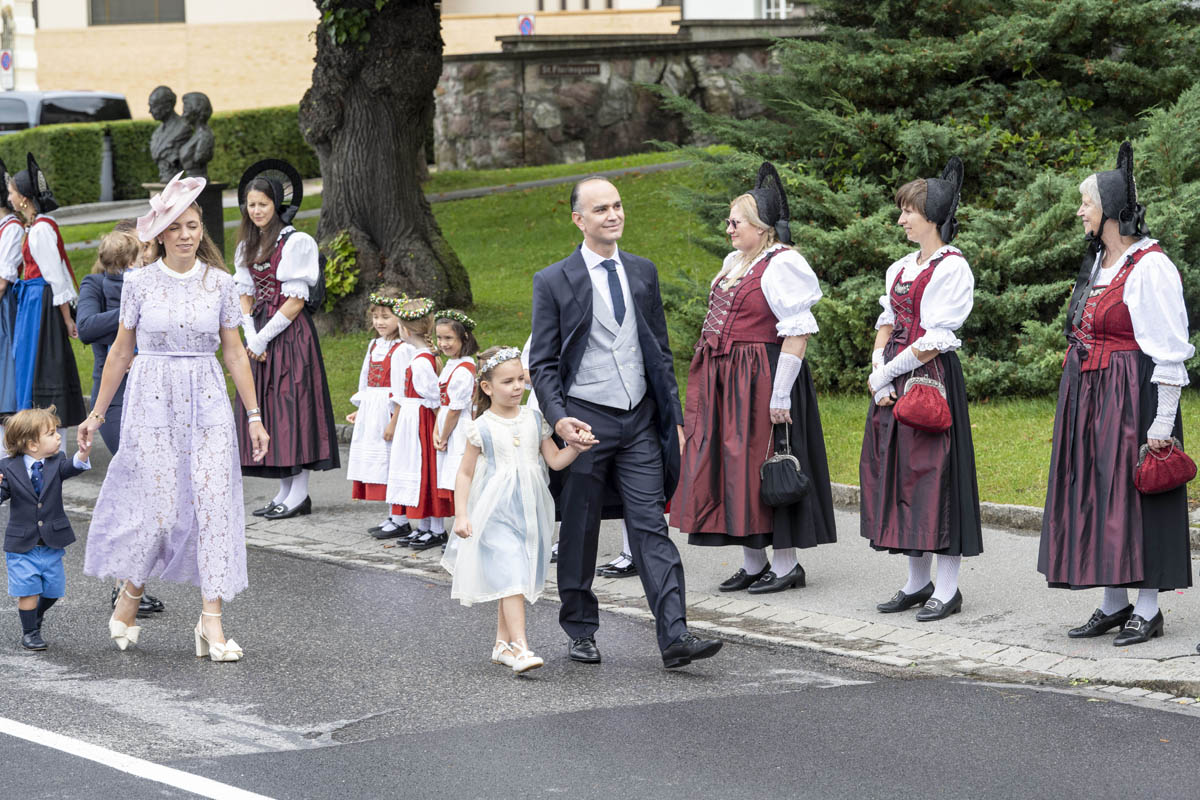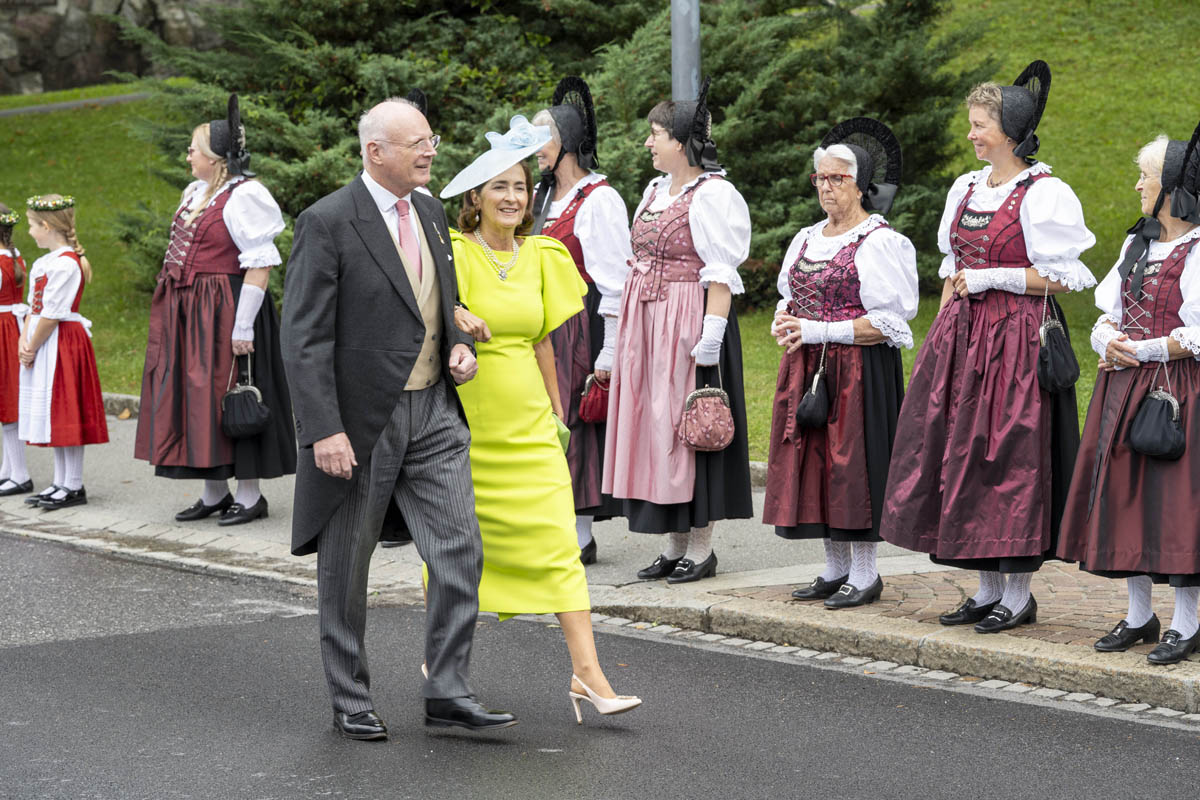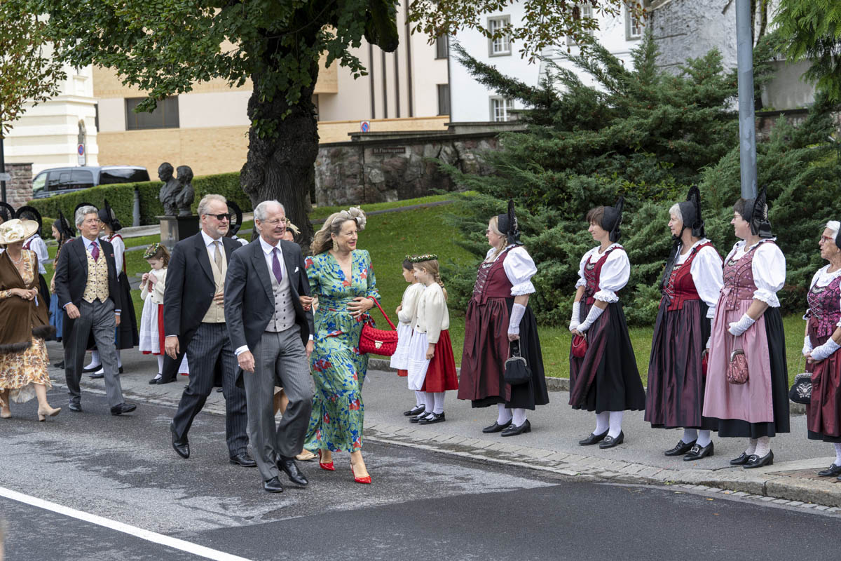 30. August 2025 – Die Hochzeitsfeierlichkeiten begannen am Vormittag mit der feierlichen Ankunft der Gäste an der Kathedrale St. Florin in Vaduz. Pfadfinderinnen und Pfadfinder unterstützten die Gäste beim Eintreffen, während Trachtenfrauen, -mädchen und -jungen Spalier standen.