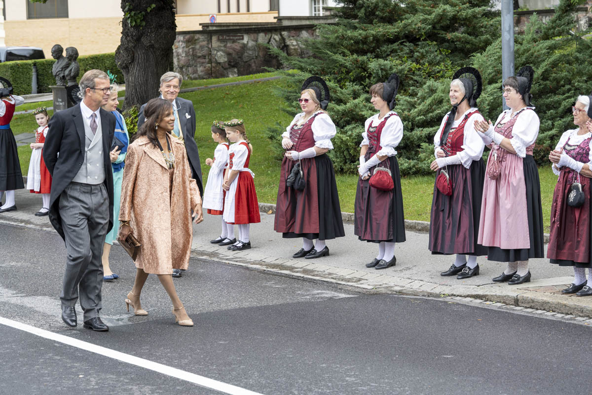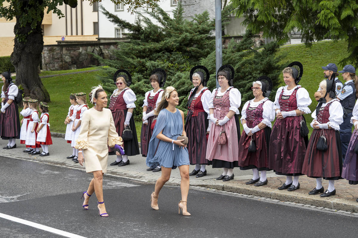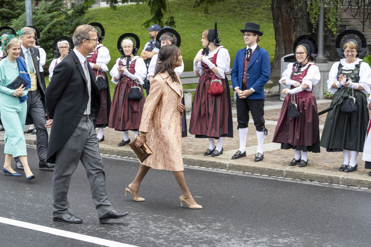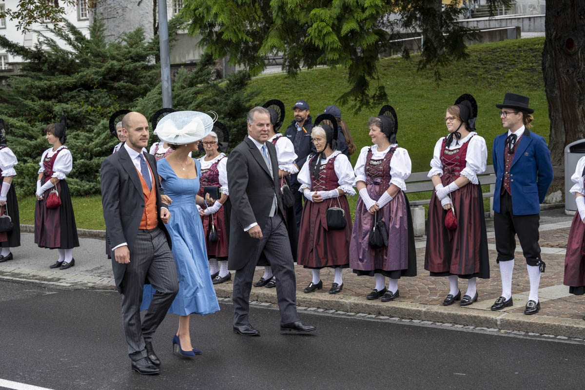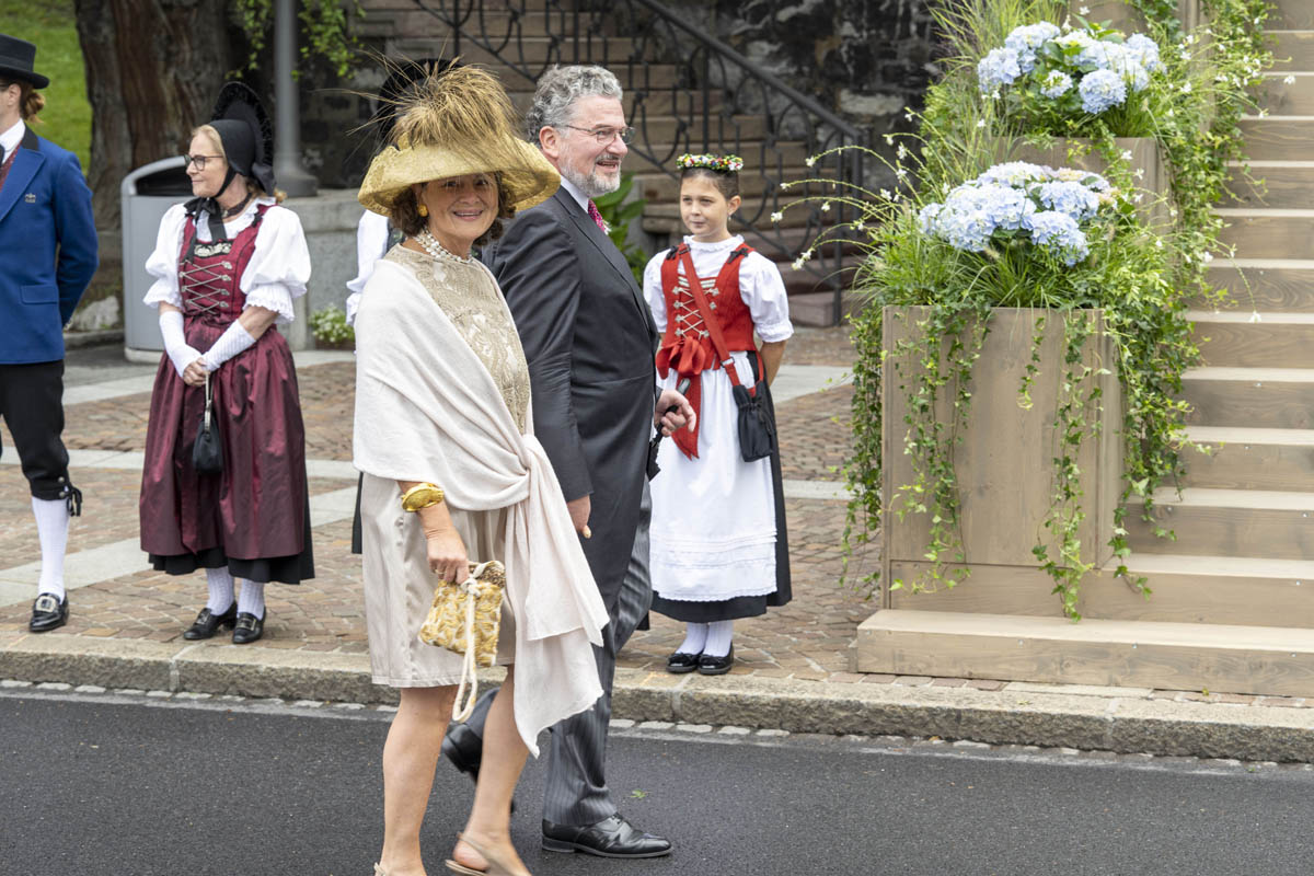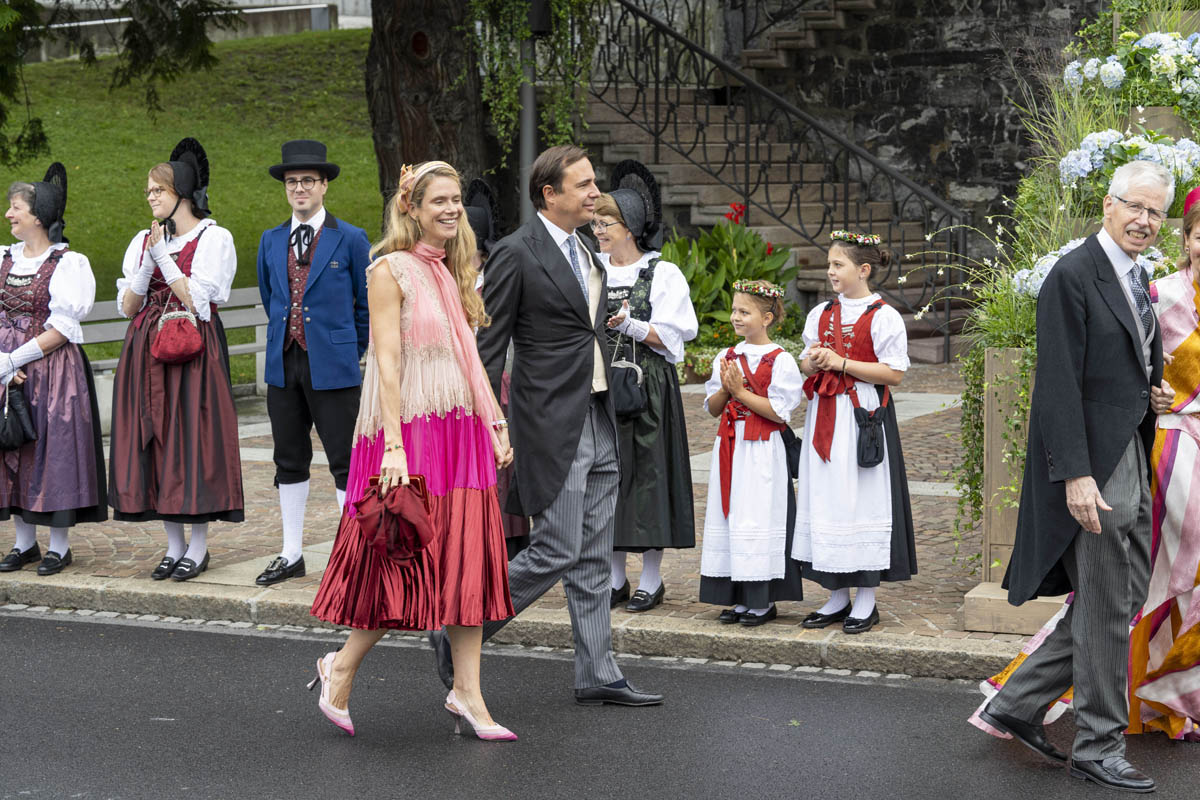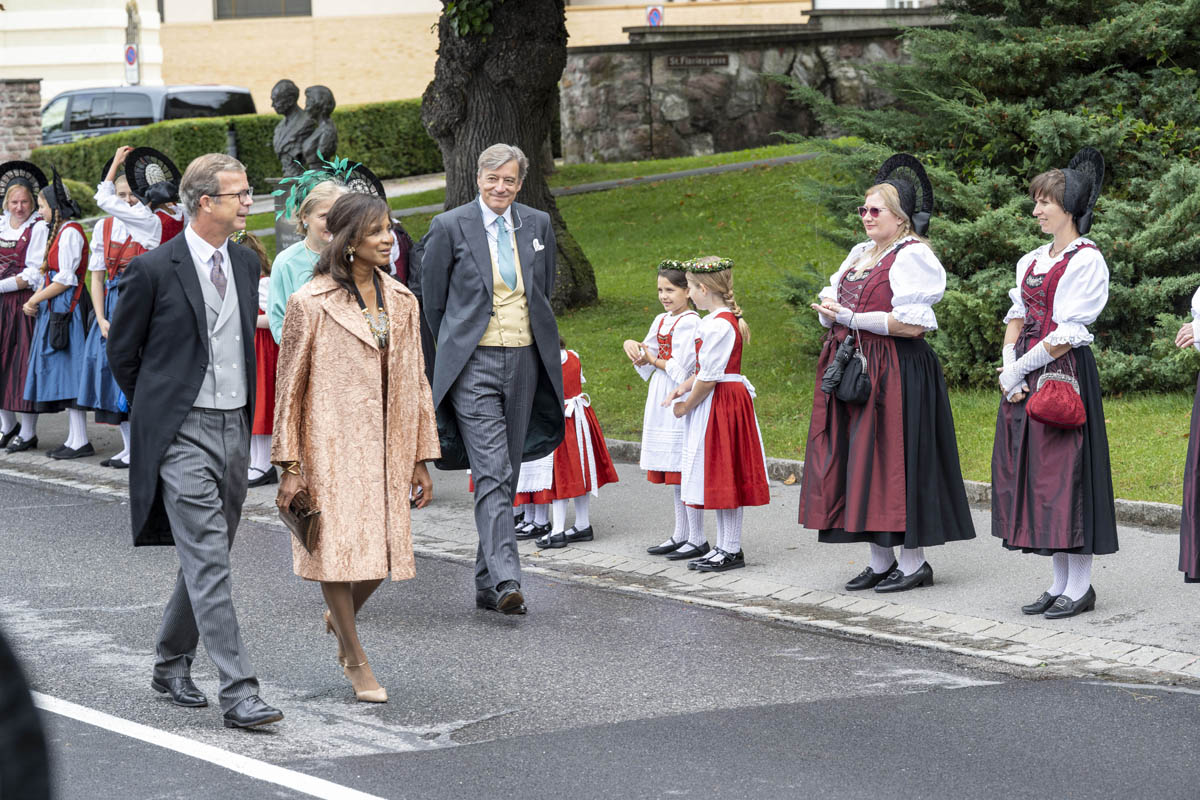 30. August 2025 – Die Hochzeitsfeierlichkeiten begannen am Vormittag mit der feierlichen Ankunft der Gäste an der Kathedrale St. Florin in Vaduz. Pfadfinderinnen und Pfadfinder unterstützten die Gäste beim Eintreffen, während Trachtenfrauen, -mädchen und -jungen Spalier standen.