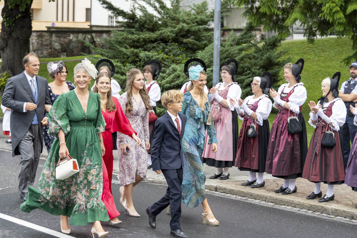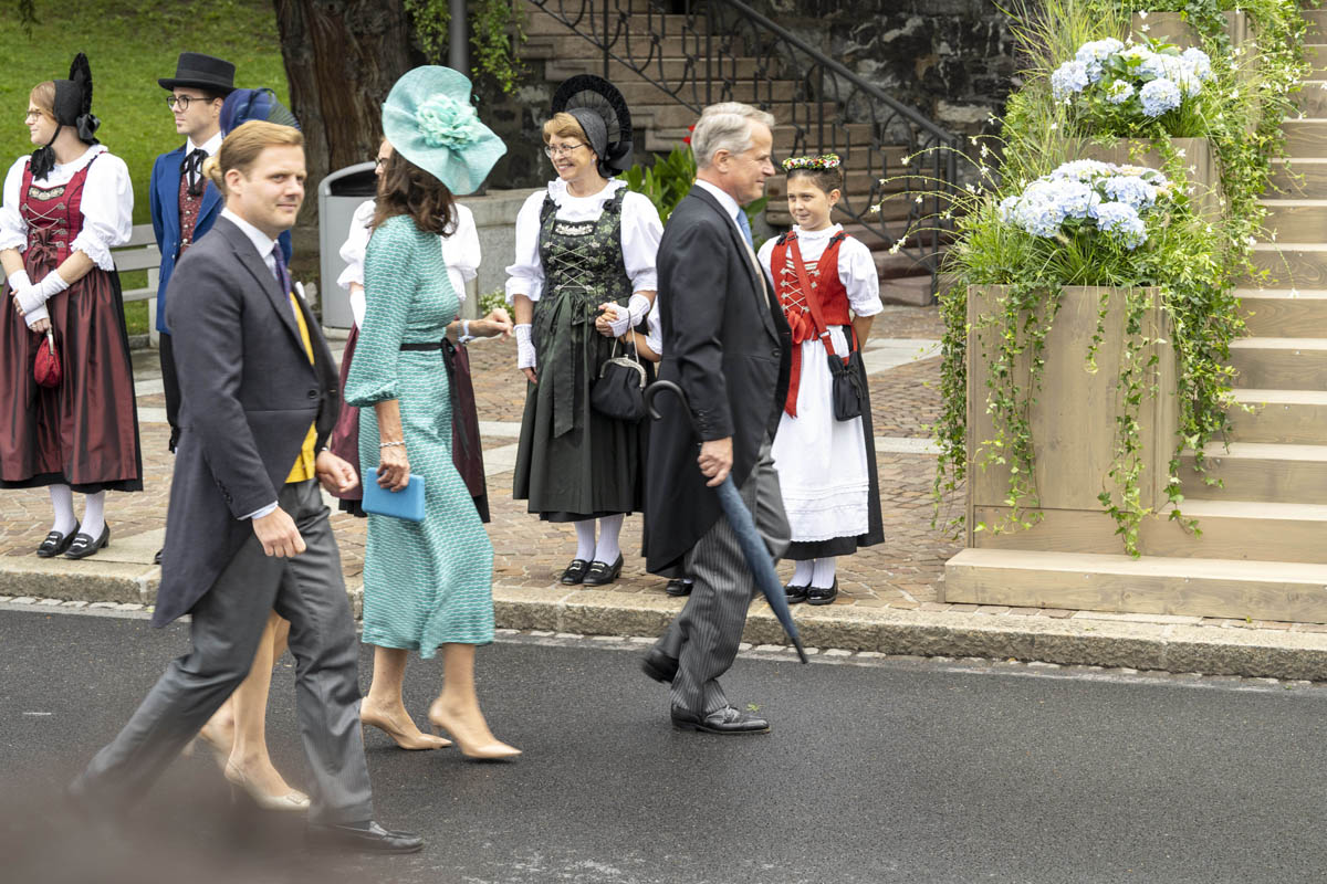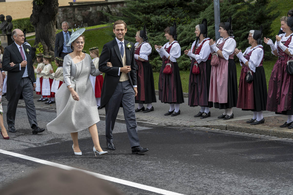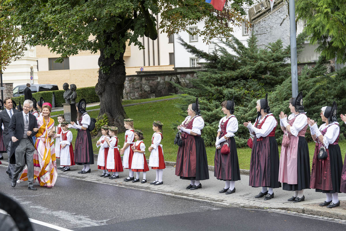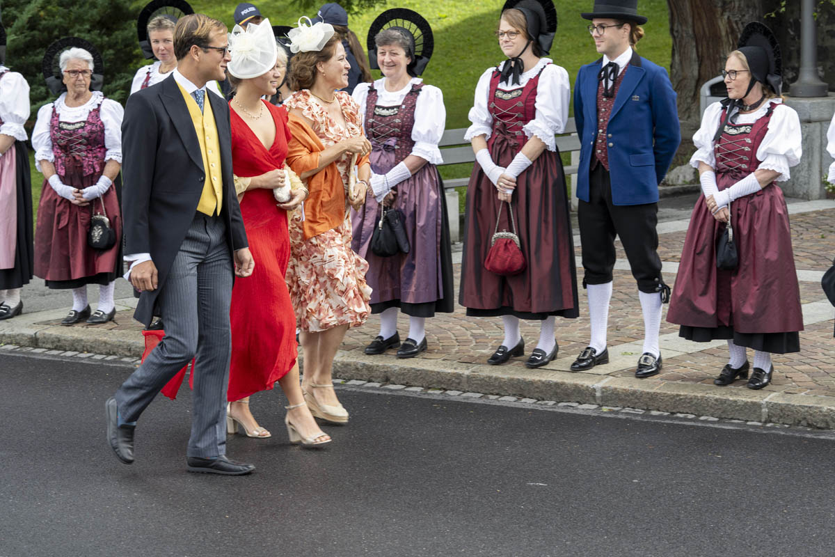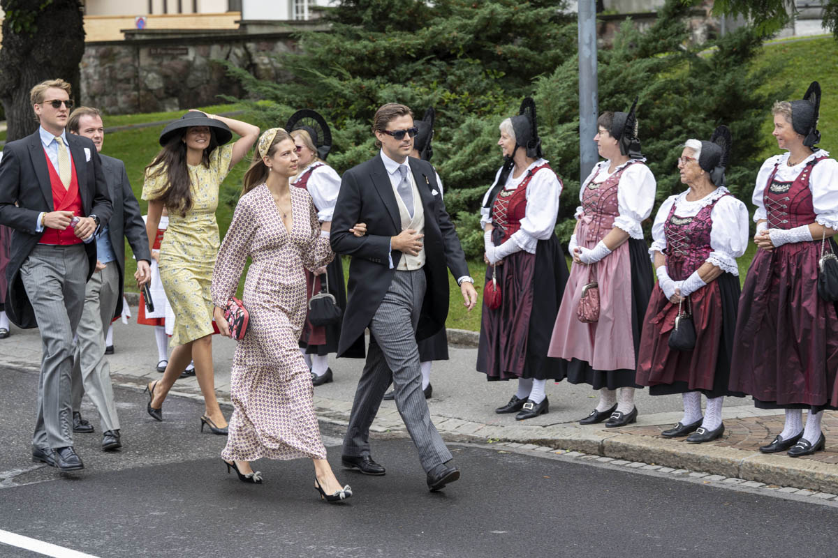 30. August 2025 – Die Hochzeitsfeierlichkeiten begannen am Vormittag mit der feierlichen Ankunft der Gäste an der Kathedrale St. Florin in Vaduz. Pfadfinderinnen und Pfadfinder unterstützten die Gäste beim Eintreffen, während Trachtenfrauen, -mädchen und -jungen Spalier standen.