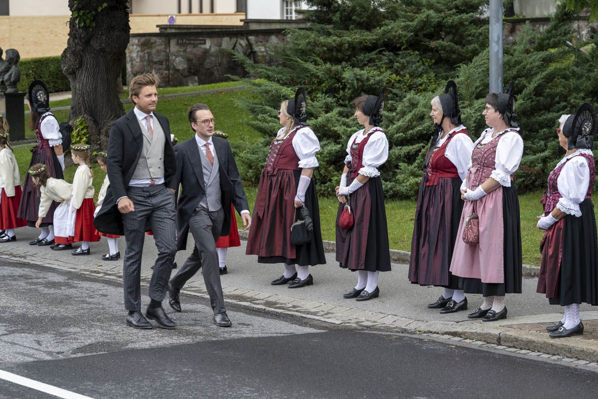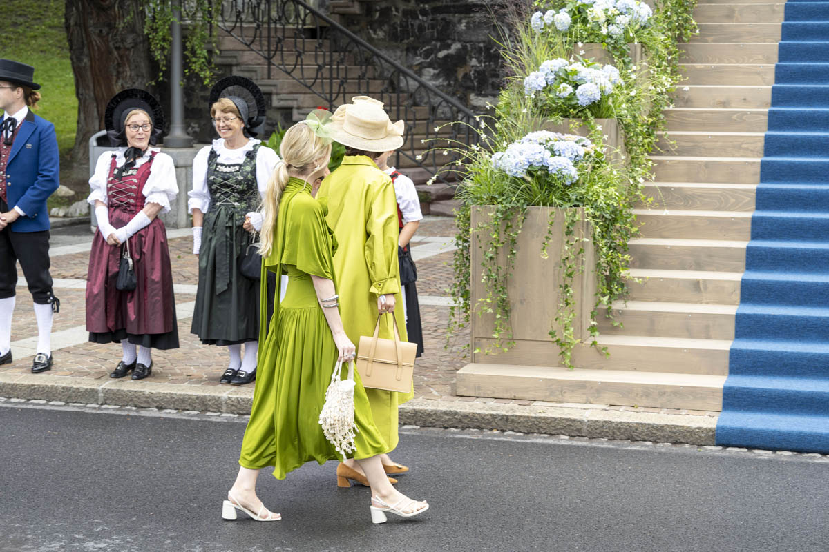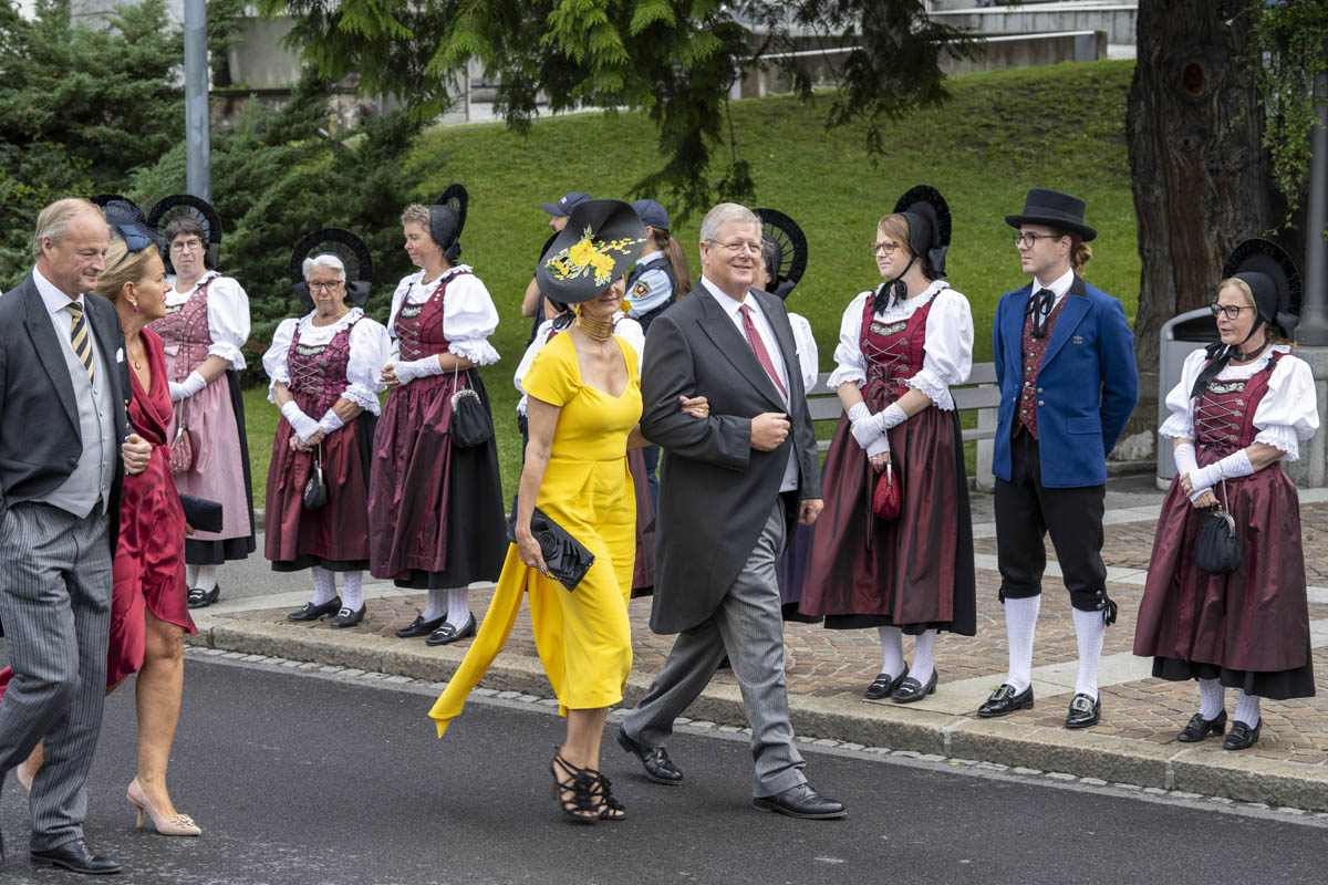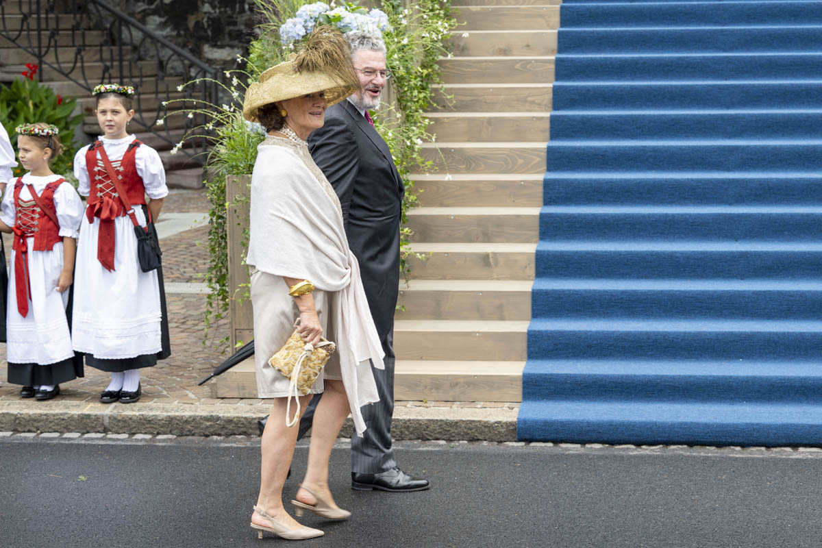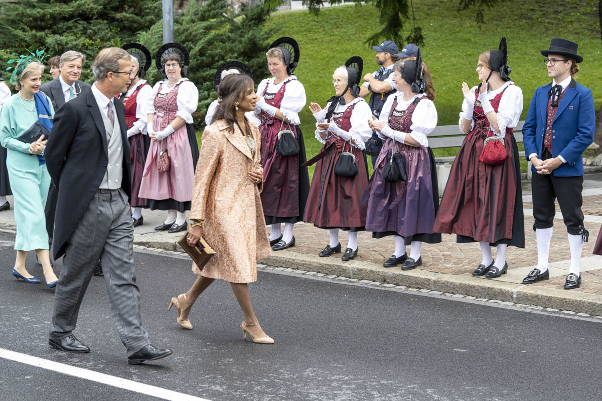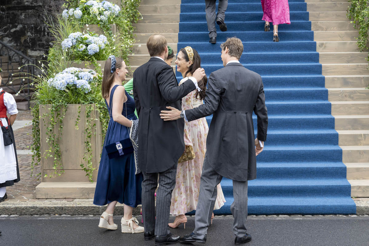 30. August 2025 – Die Hochzeitsfeierlichkeiten begannen am Vormittag mit der feierlichen Ankunft der Gäste an der Kathedrale St. Florin in Vaduz. Pfadfinderinnen und Pfadfinder unterstützten die Gäste beim Eintreffen, während Trachtenfrauen, -mädchen und -jungen Spalier standen.