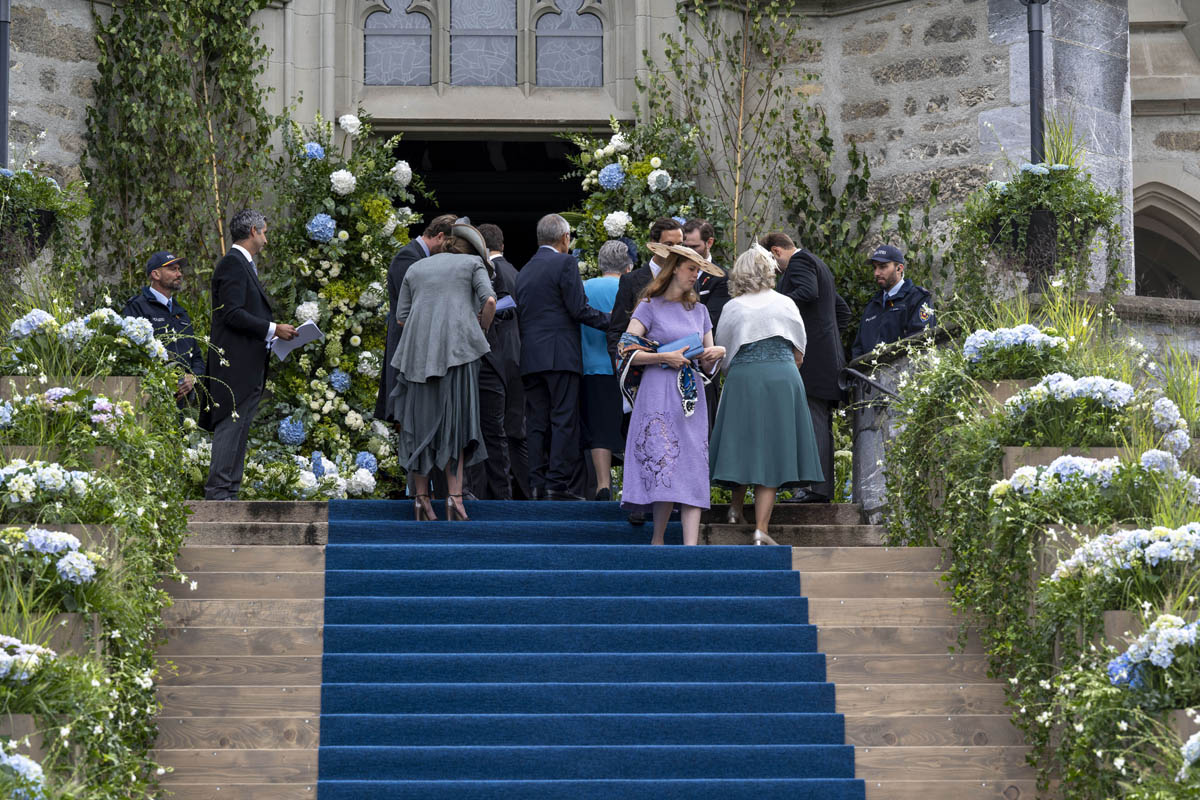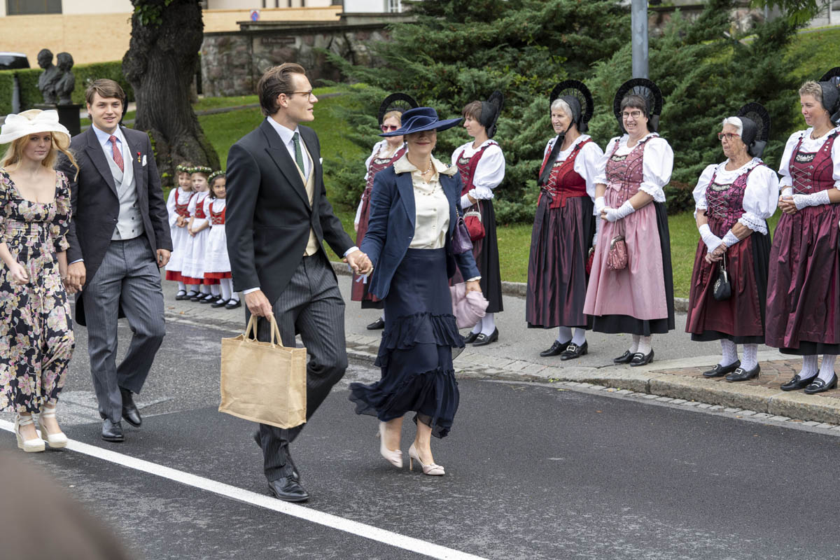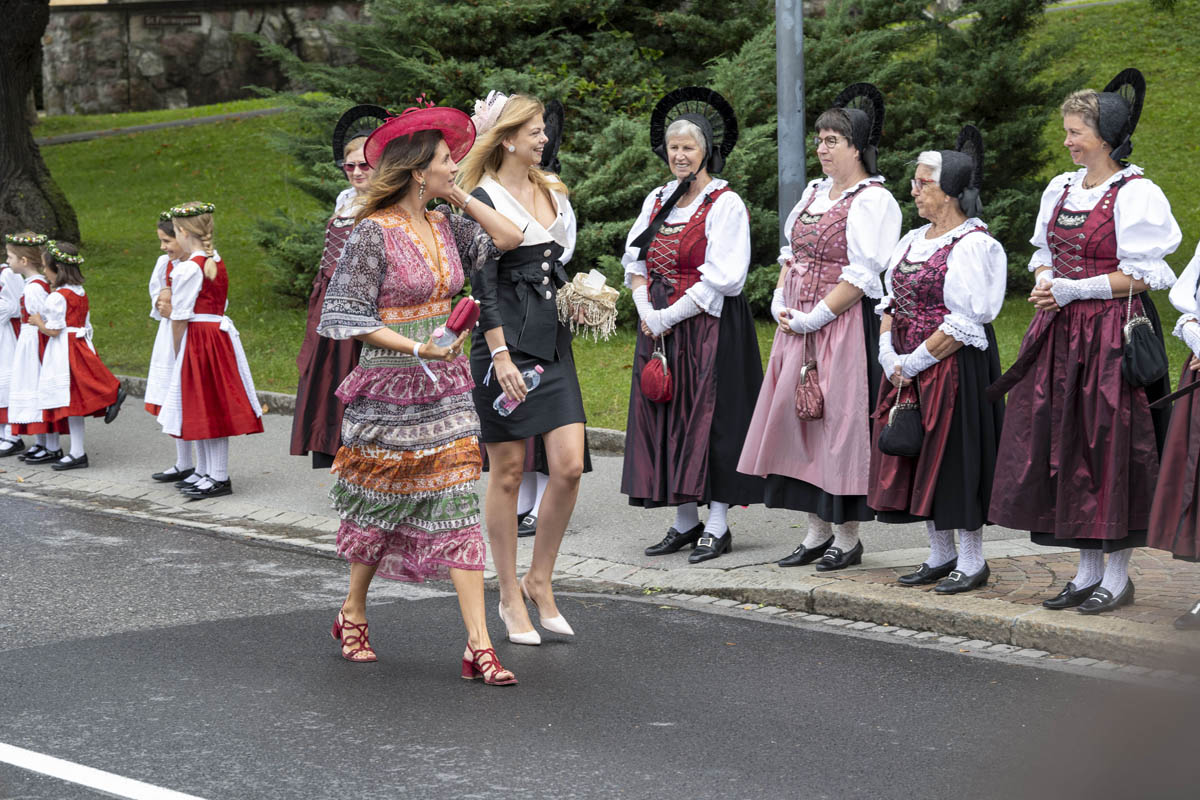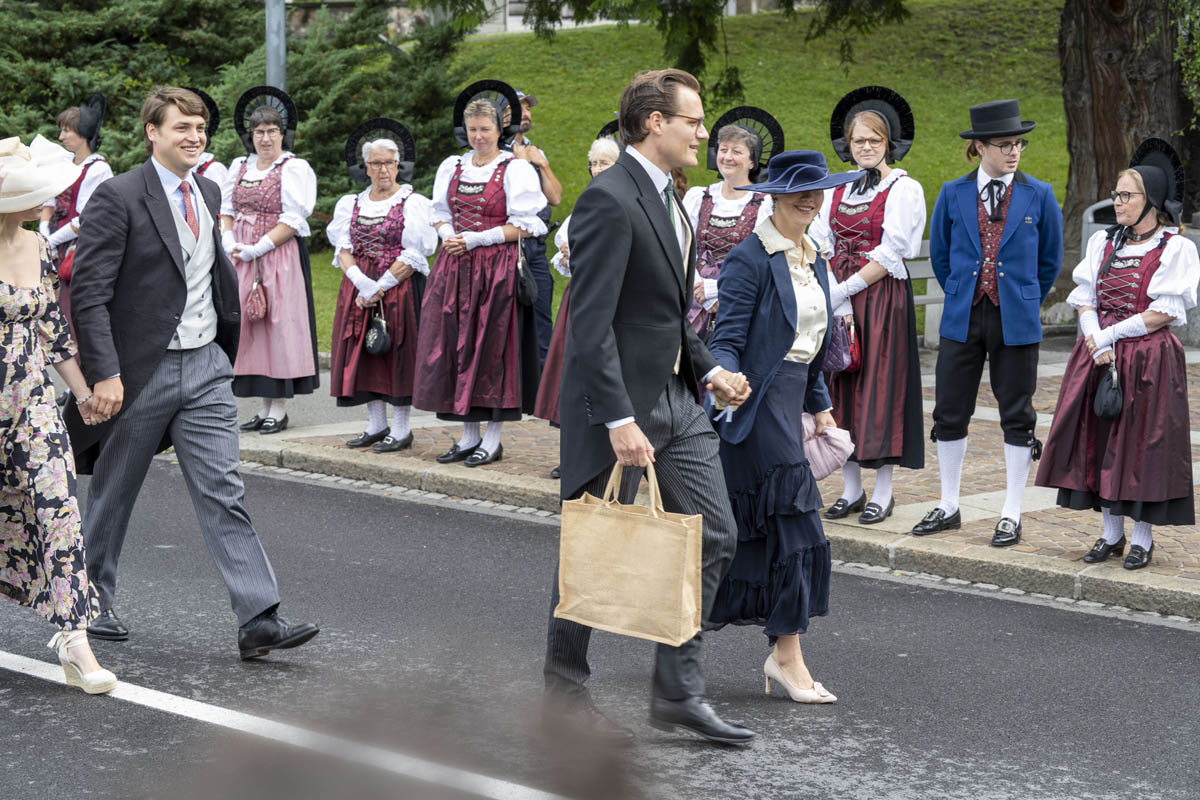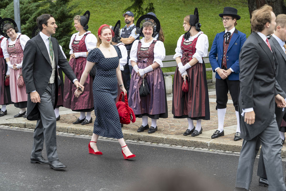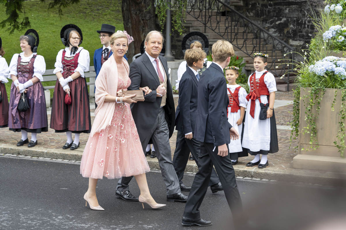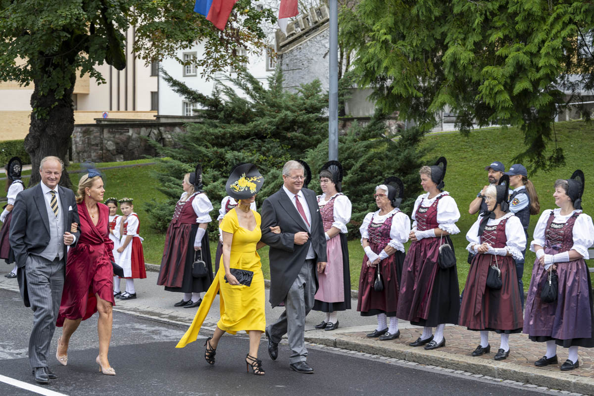 30. August 2025 – Die Hochzeitsfeierlichkeiten begannen am Vormittag mit der feierlichen Ankunft der Gäste an der Kathedrale St. Florin in Vaduz. Pfadfinderinnen und Pfadfinder unterstützten die Gäste beim Eintreffen, während Trachtenfrauen, -mädchen und -jungen Spalier standen.