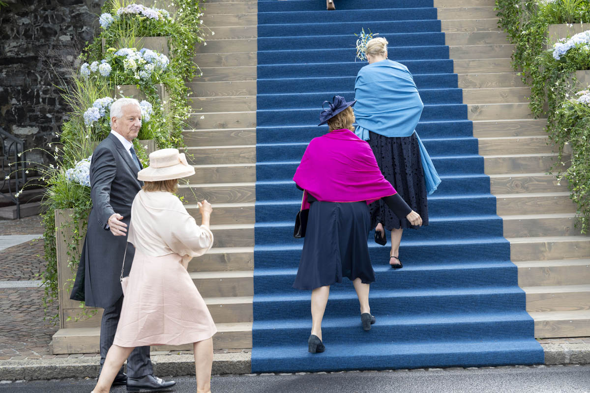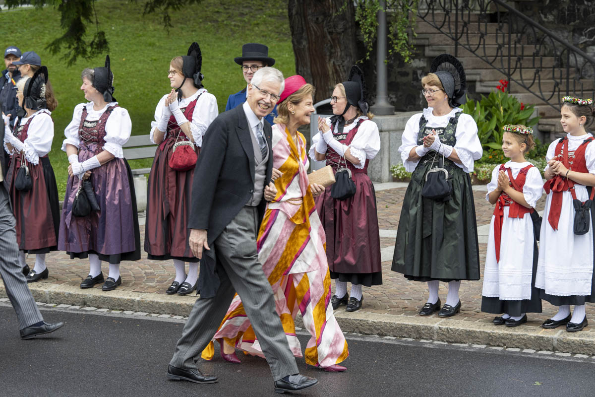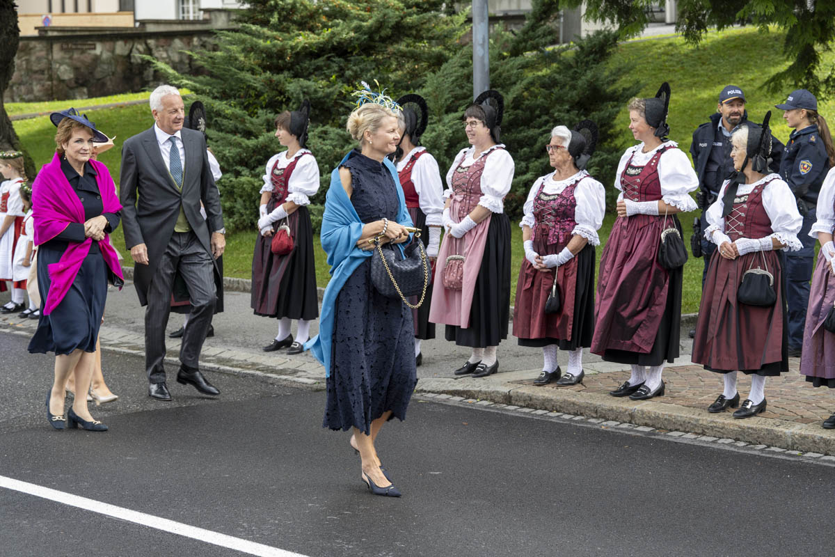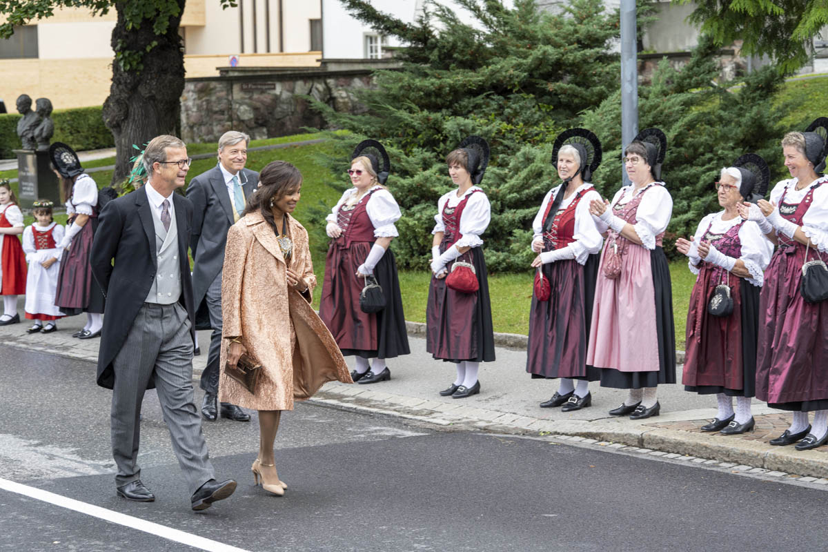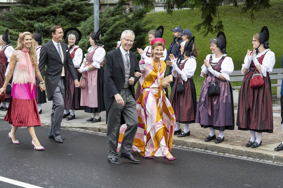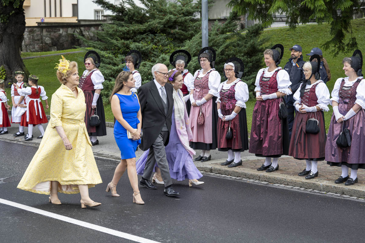 30. August 2025 – Die Hochzeitsfeierlichkeiten begannen am Vormittag mit der feierlichen Ankunft der Gäste an der Kathedrale St. Florin in Vaduz. Pfadfinderinnen und Pfadfinder unterstützten die Gäste beim Eintreffen, während Trachtenfrauen, -mädchen und -jungen Spalier standen.