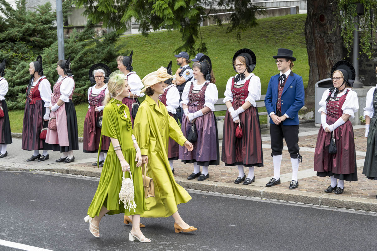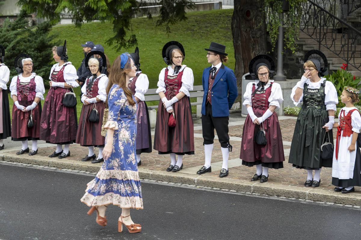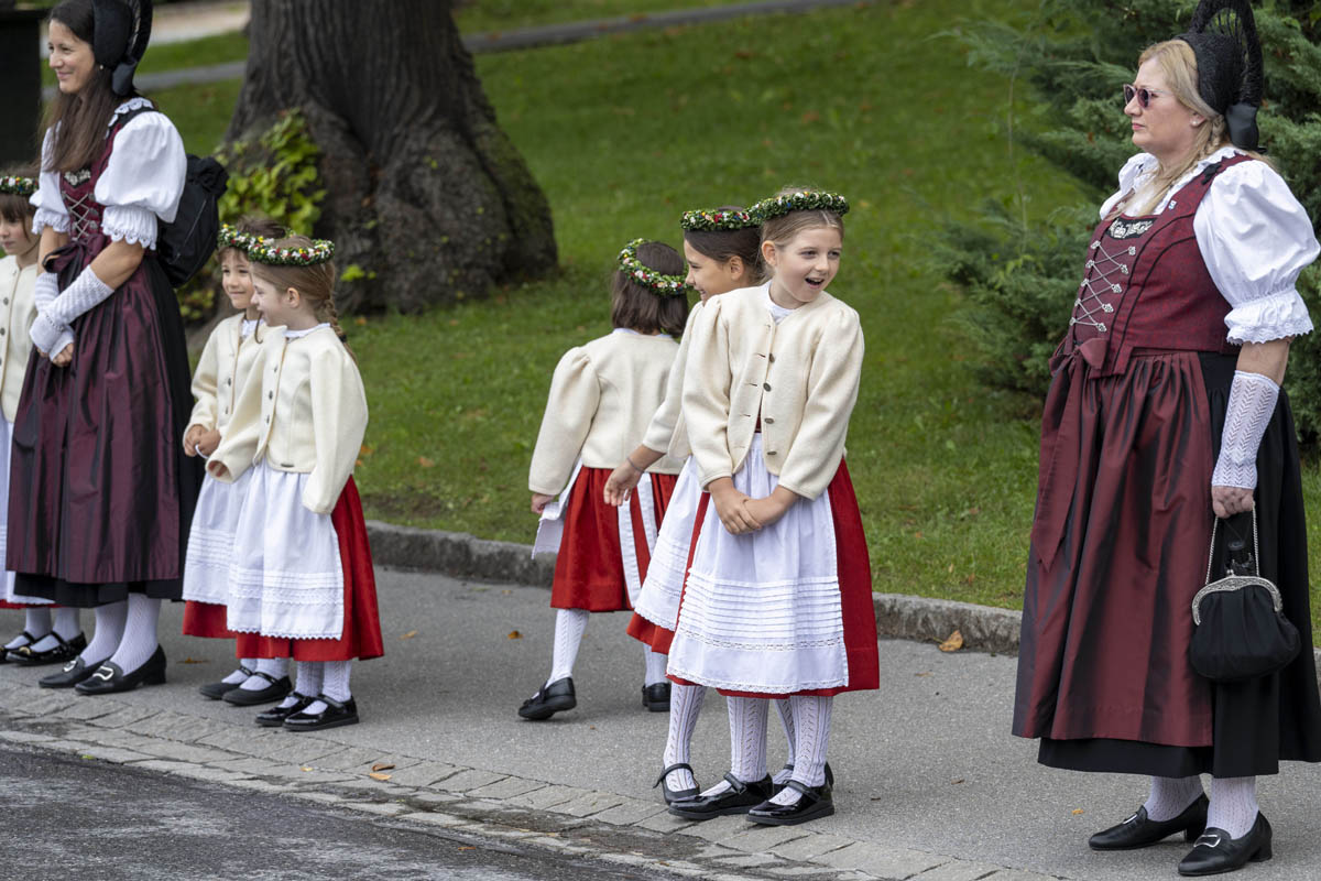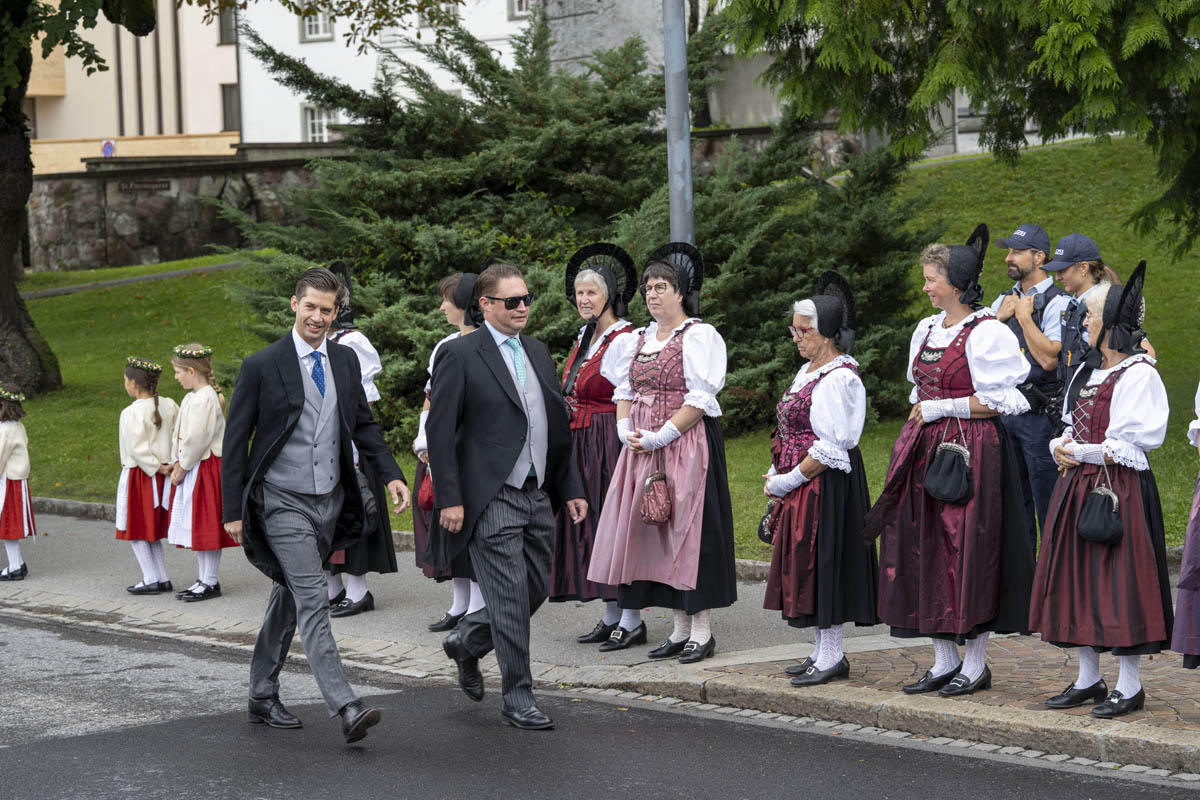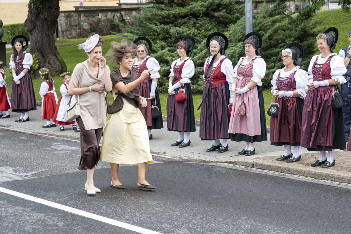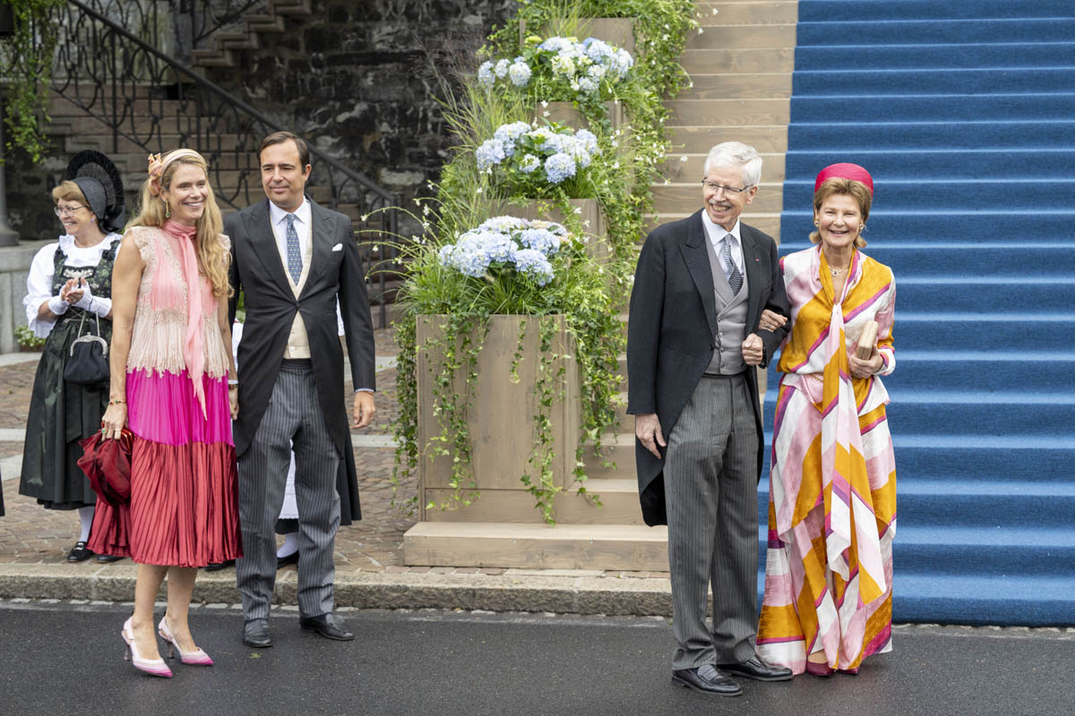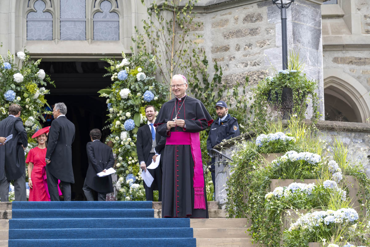 30. August 2025 – Die Hochzeitsfeierlichkeiten begannen am Vormittag mit der feierlichen Ankunft der Gäste an der Kathedrale St. Florin in Vaduz. Pfadfinderinnen und Pfadfinder unterstützten die Gäste beim Eintreffen, während Trachtenfrauen, -mädchen und -jungen Spalier standen.