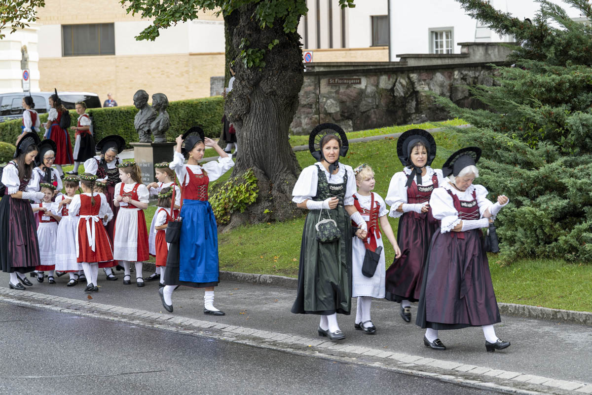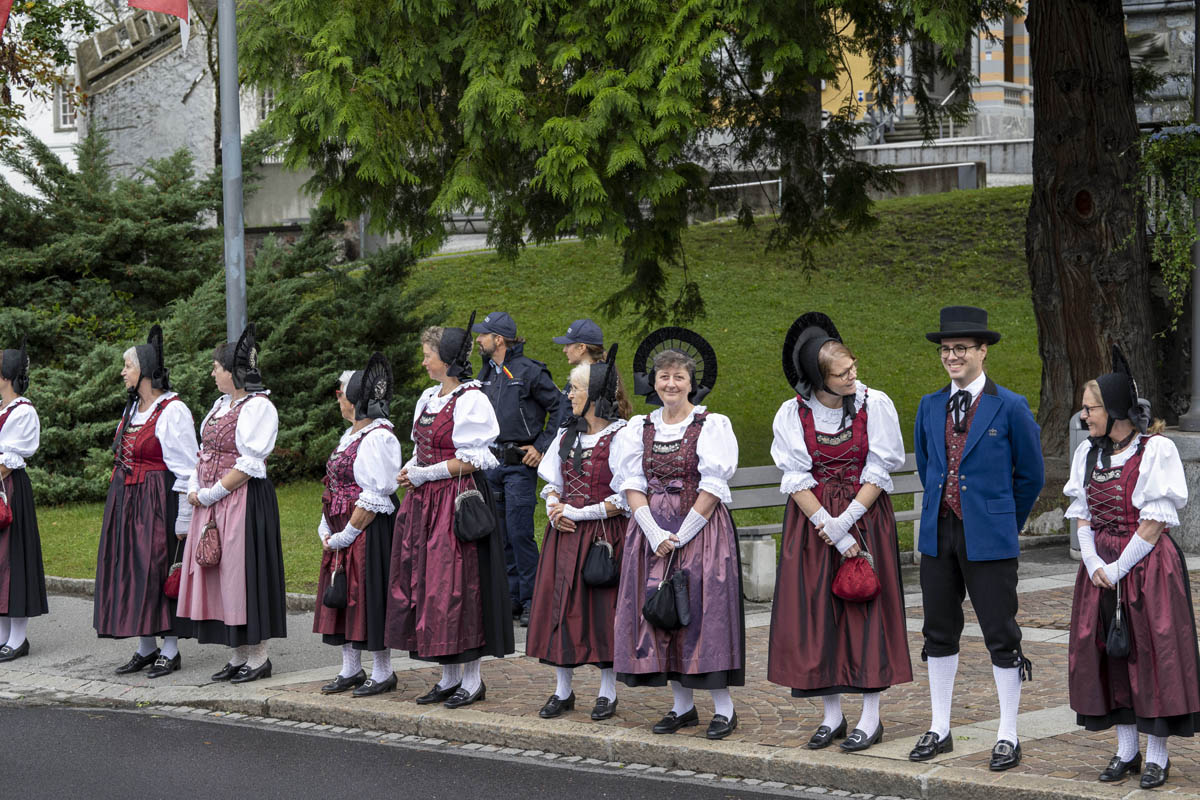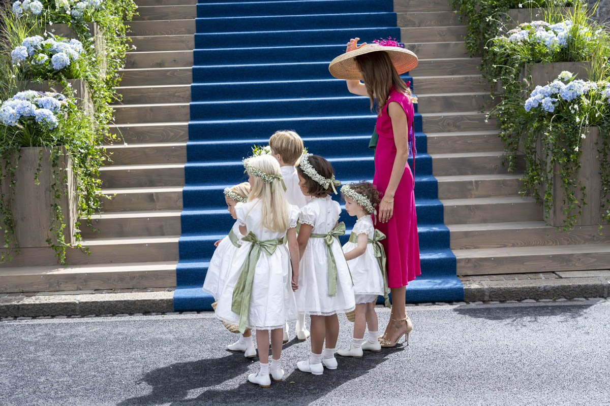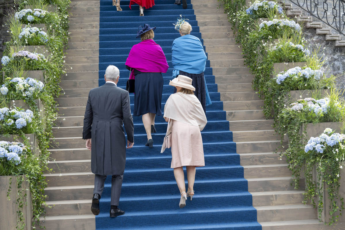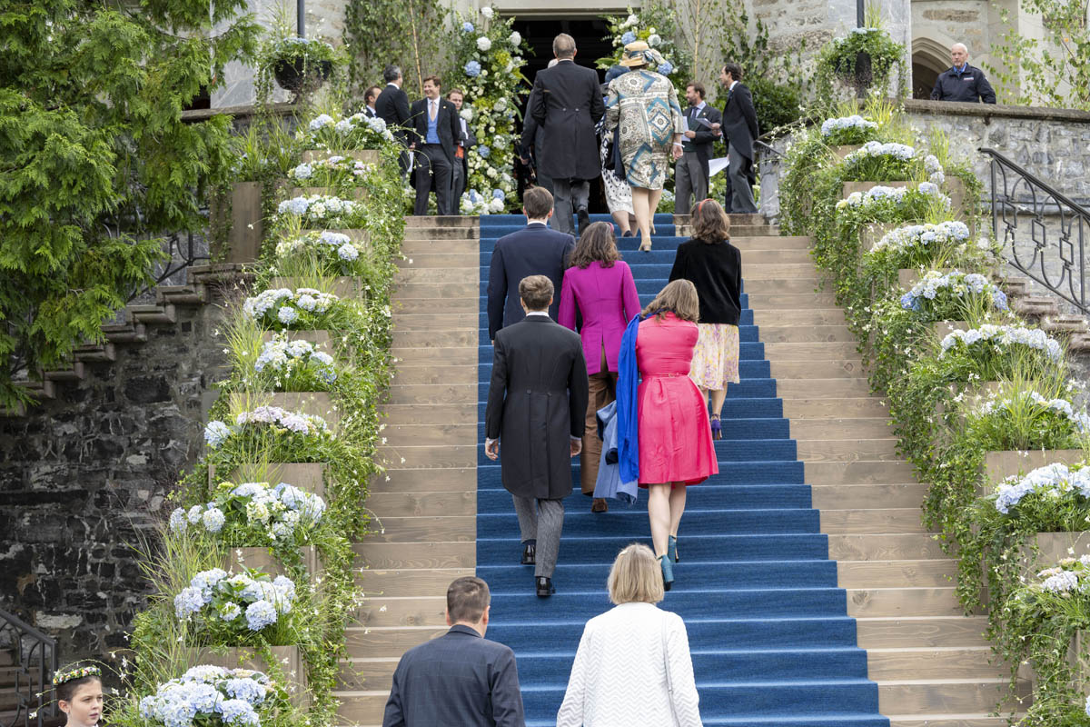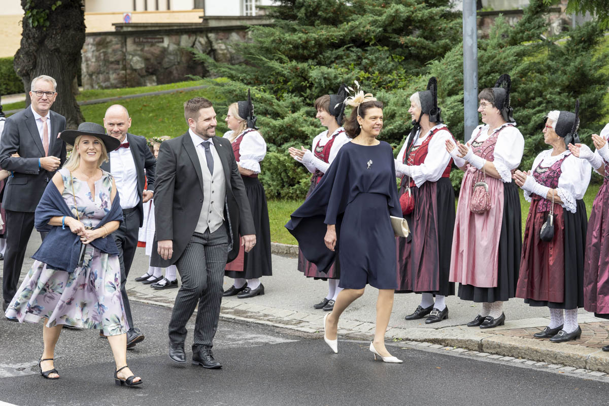 30. August 2025 – Die Hochzeitsfeierlichkeiten begannen am Vormittag mit der feierlichen Ankunft der Gäste an der Kathedrale St. Florin in Vaduz. Pfadfinderinnen und Pfadfinder unterstützten die Gäste beim Eintreffen, während Trachtenfrauen, -mädchen und -jungen Spalier standen.