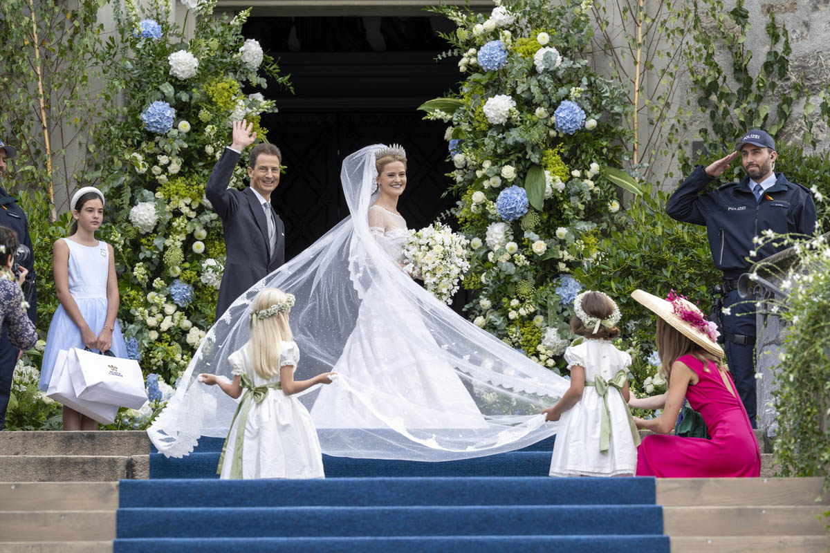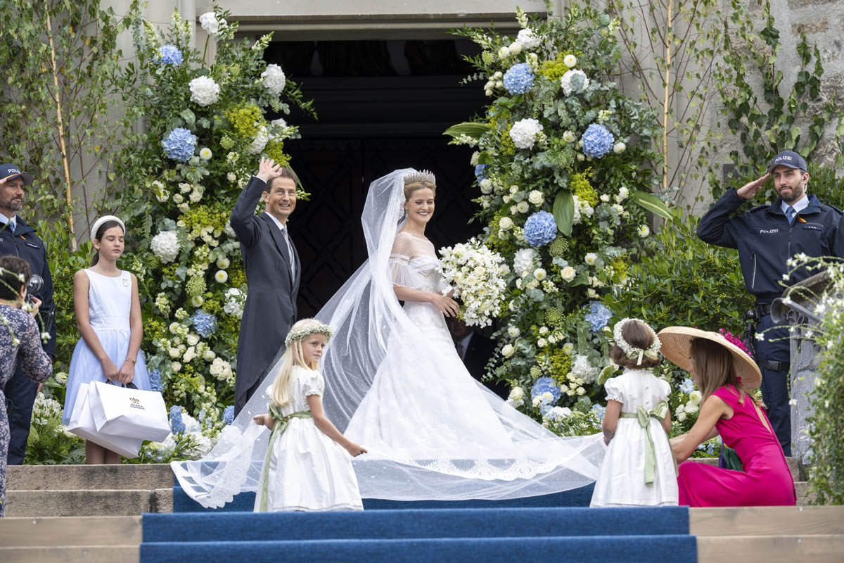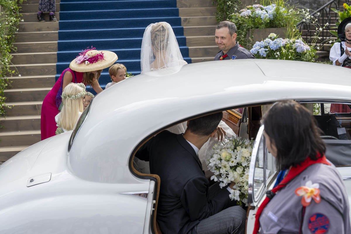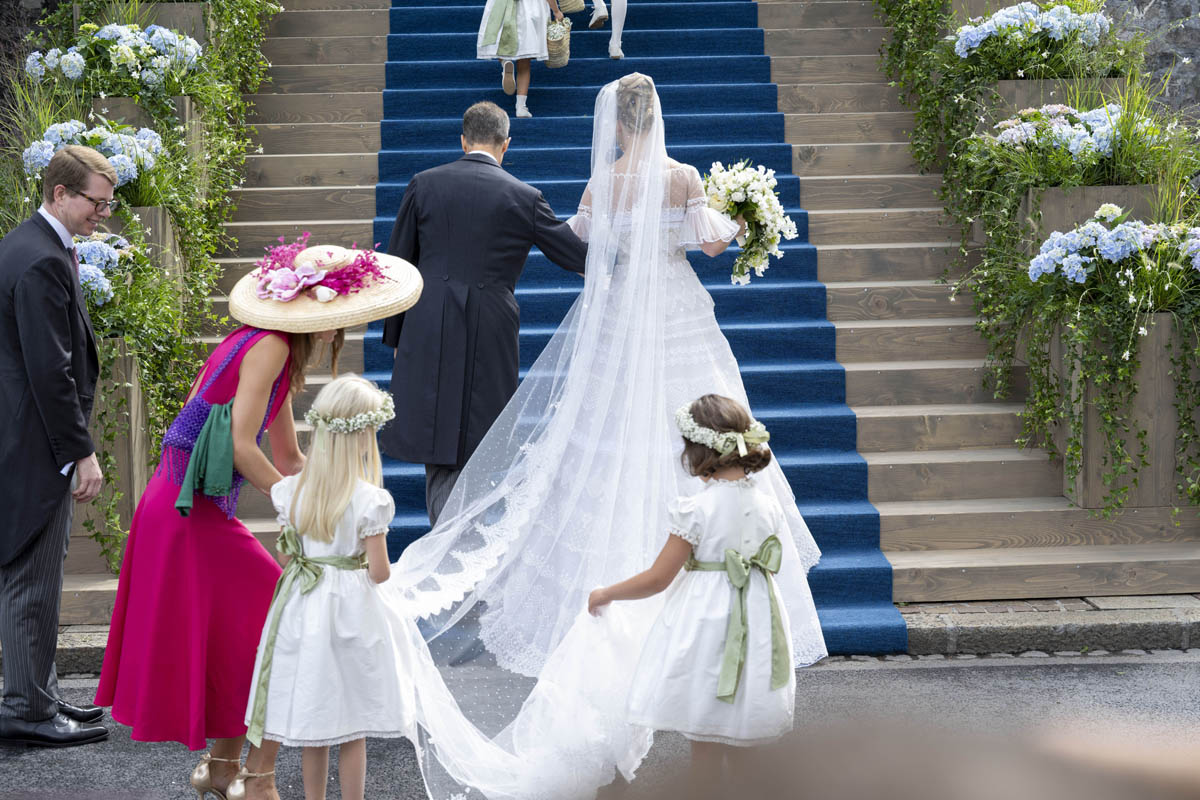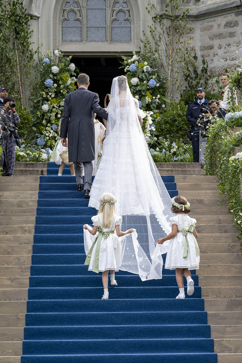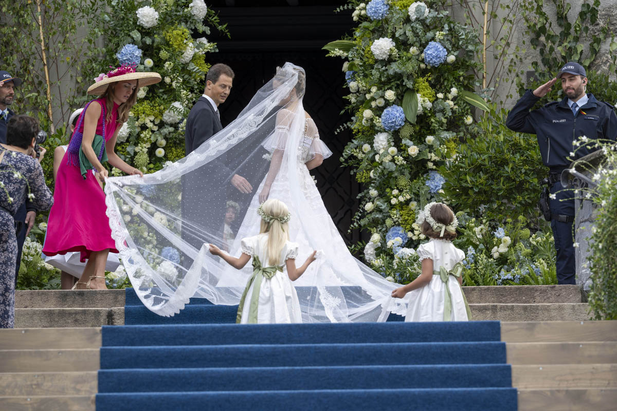 Die Braut I.D. Prinzessin Marie Caroline von und zu Liechtenstein traf feierlich mit einem Oldtimer an der Kathedrale St. Florin in Vaduz ein. Begleitet von ihrem Vater, S.D. Erbprinz Alois von und zu Liechtenstein, führte ihr Weg zum Altar – ein berührender Moment für Familie, Freunde und Gäste.