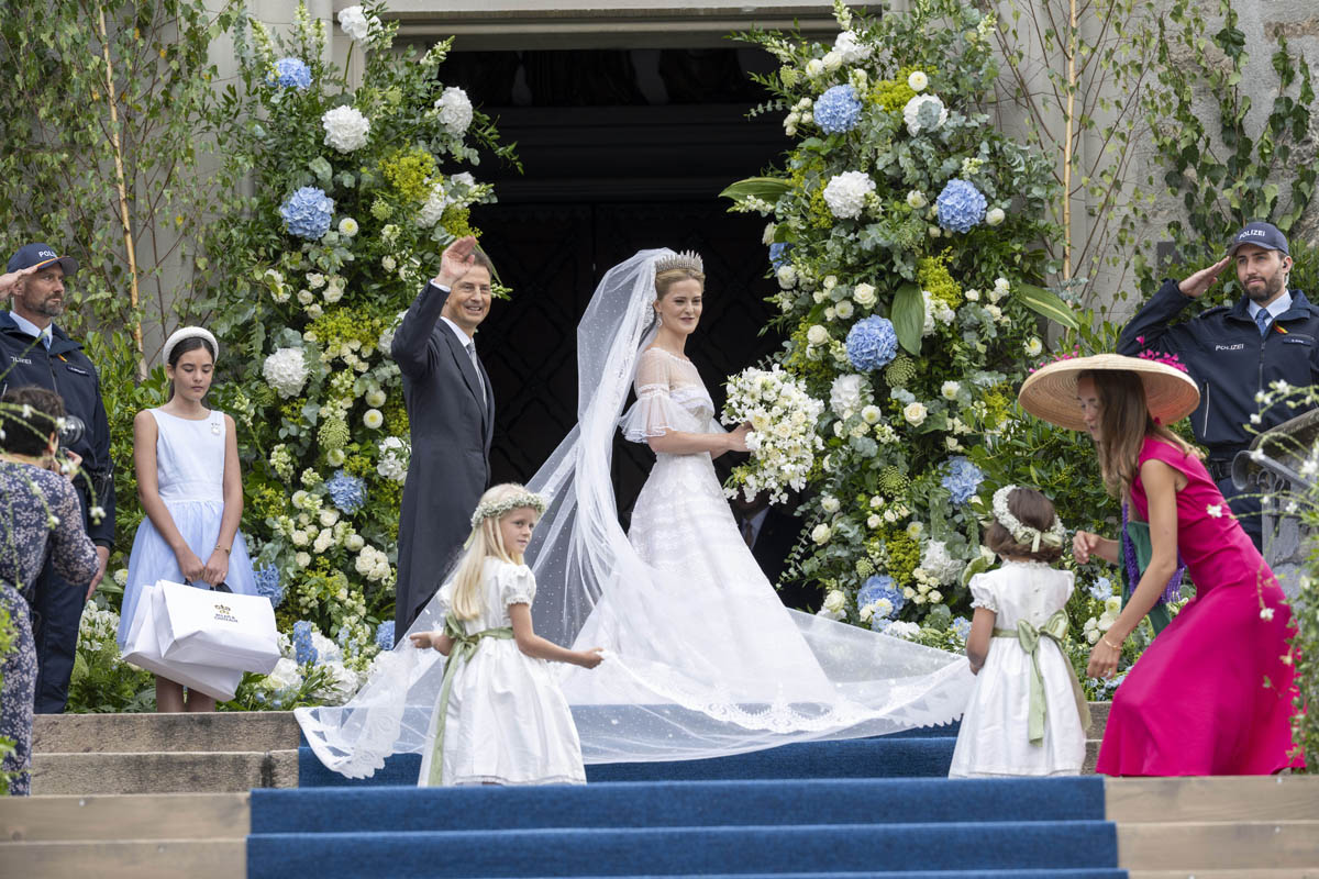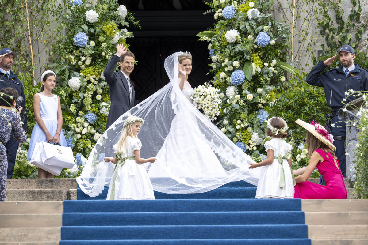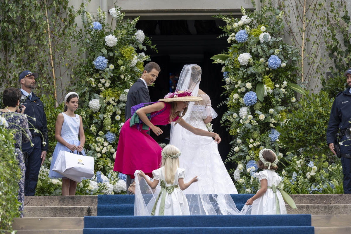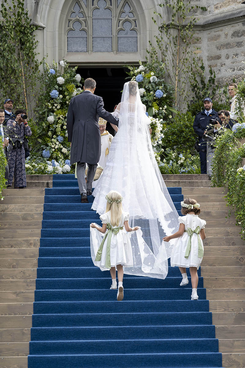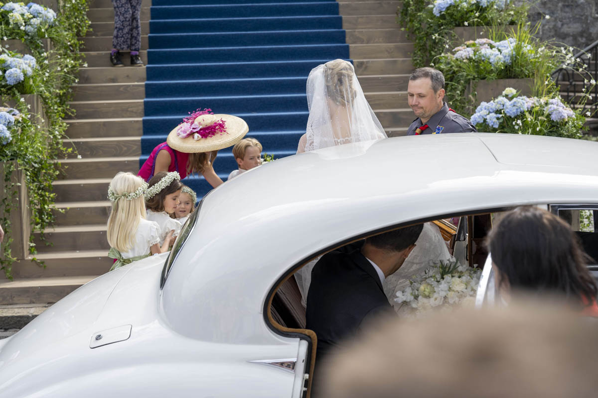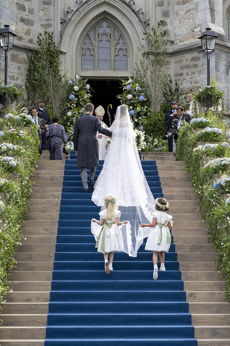 Die Braut I.D. Prinzessin Marie Caroline von und zu Liechtenstein traf feierlich mit einem Oldtimer an der Kathedrale St. Florin in Vaduz ein. Begleitet von ihrem Vater, S.D. Erbprinz Alois von und zu Liechtenstein, führte ihr Weg zum Altar – ein berührender Moment für Familie, Freunde und Gäste.