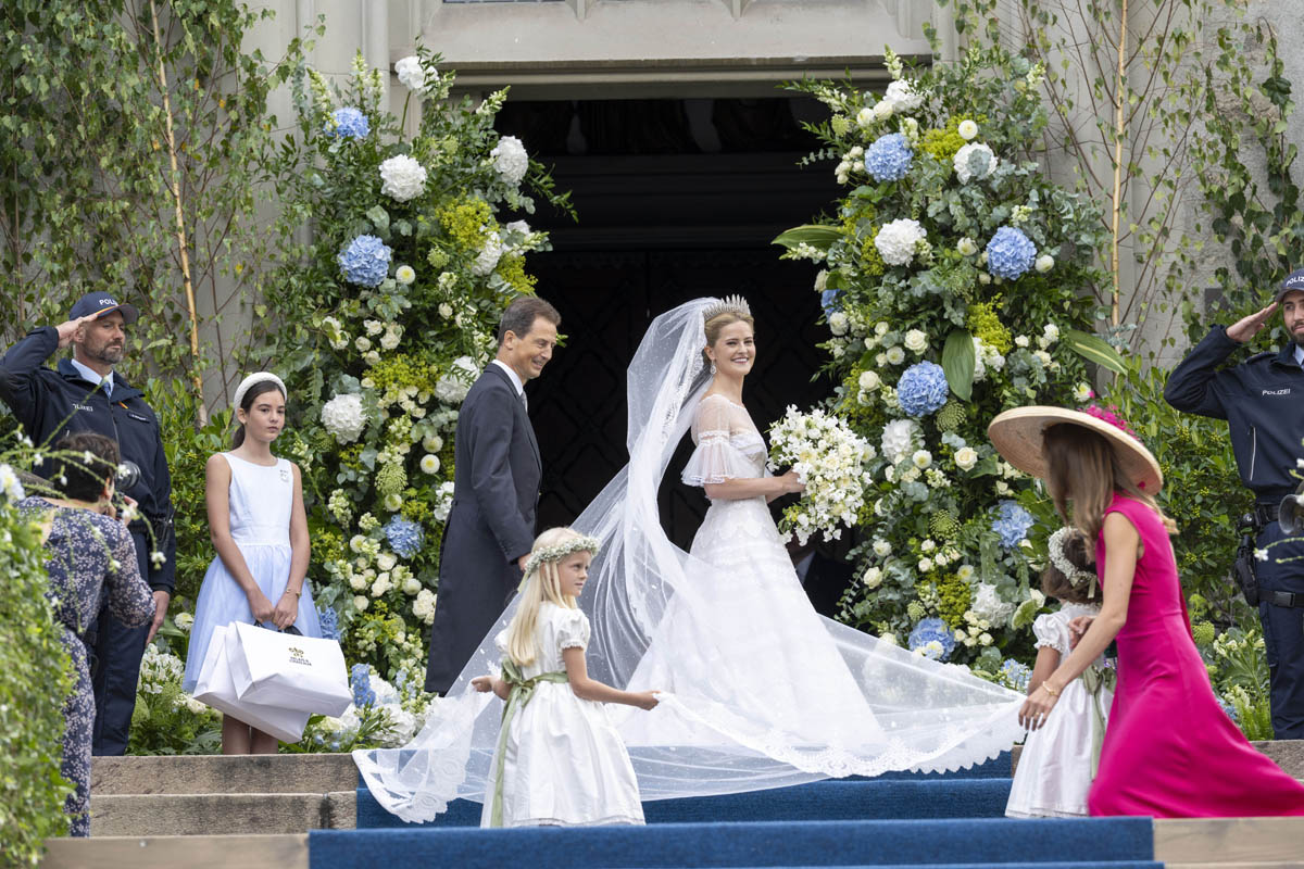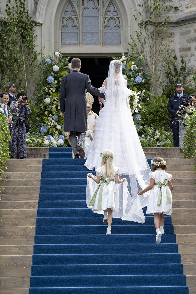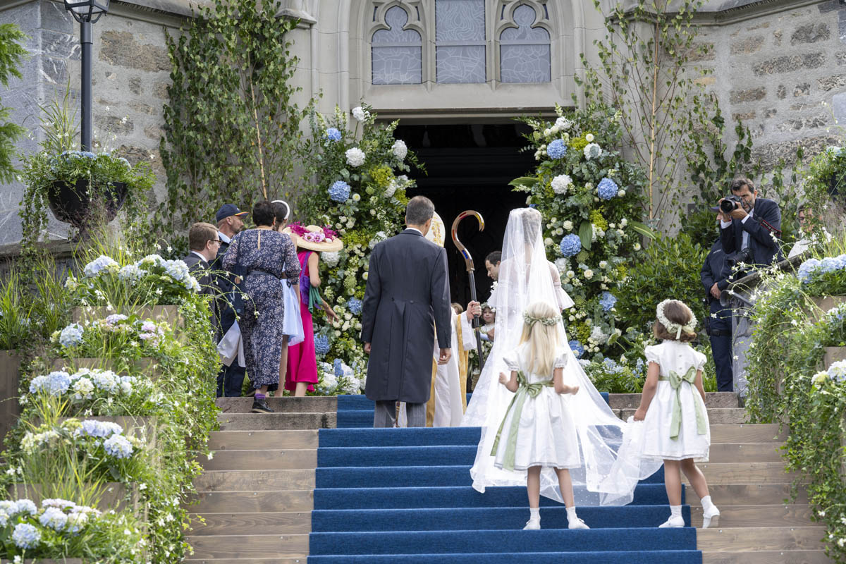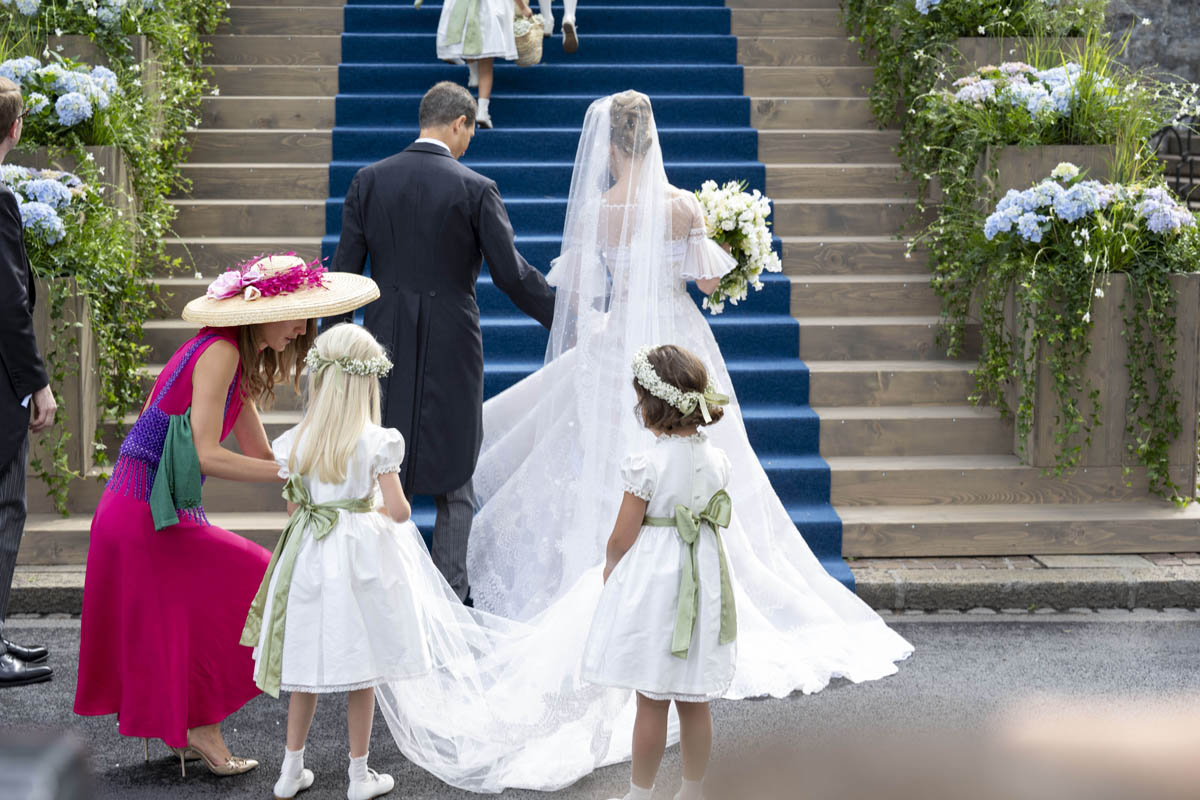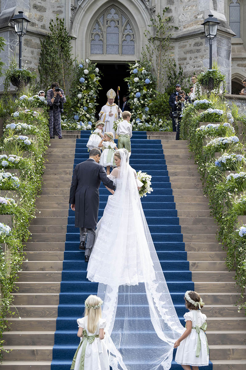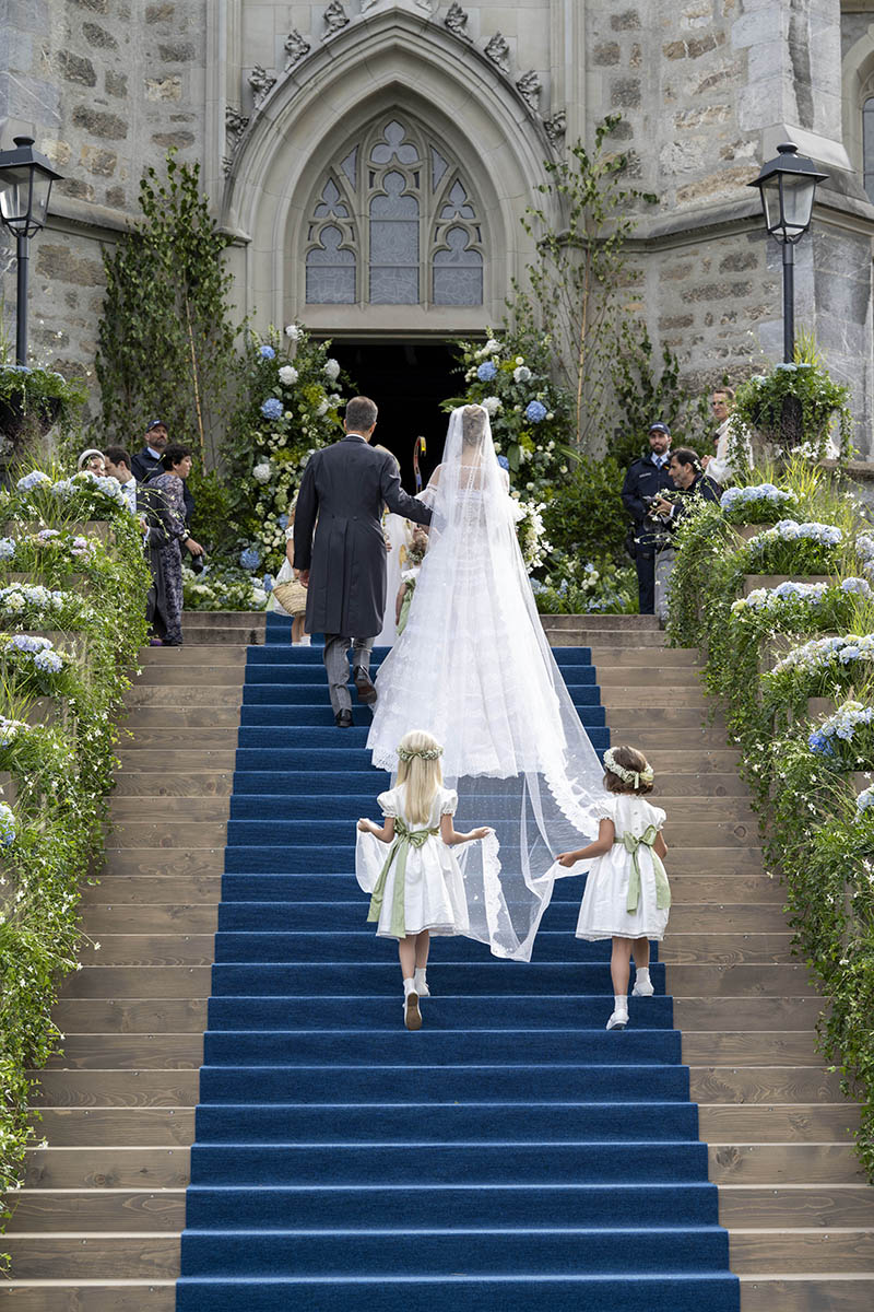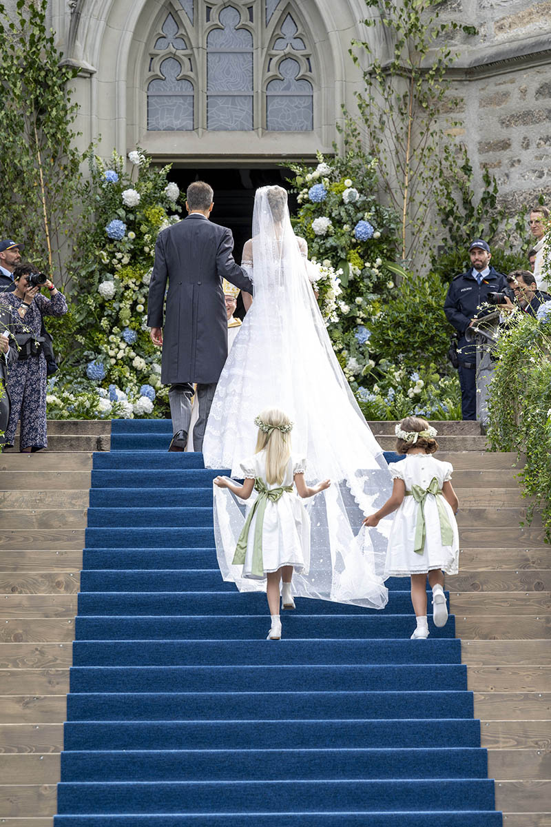 Die Braut I.D. Prinzessin Marie Caroline von und zu Liechtenstein traf feierlich mit einem Oldtimer an der Kathedrale St. Florin in Vaduz ein. Begleitet von ihrem Vater, S.D. Erbprinz Alois von und zu Liechtenstein, führte ihr Weg zum Altar – ein berührender Moment für Familie, Freunde und Gäste.