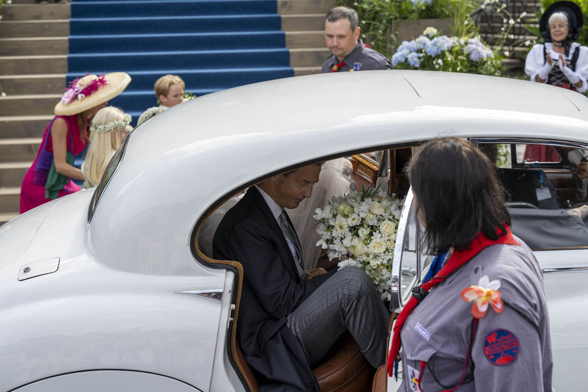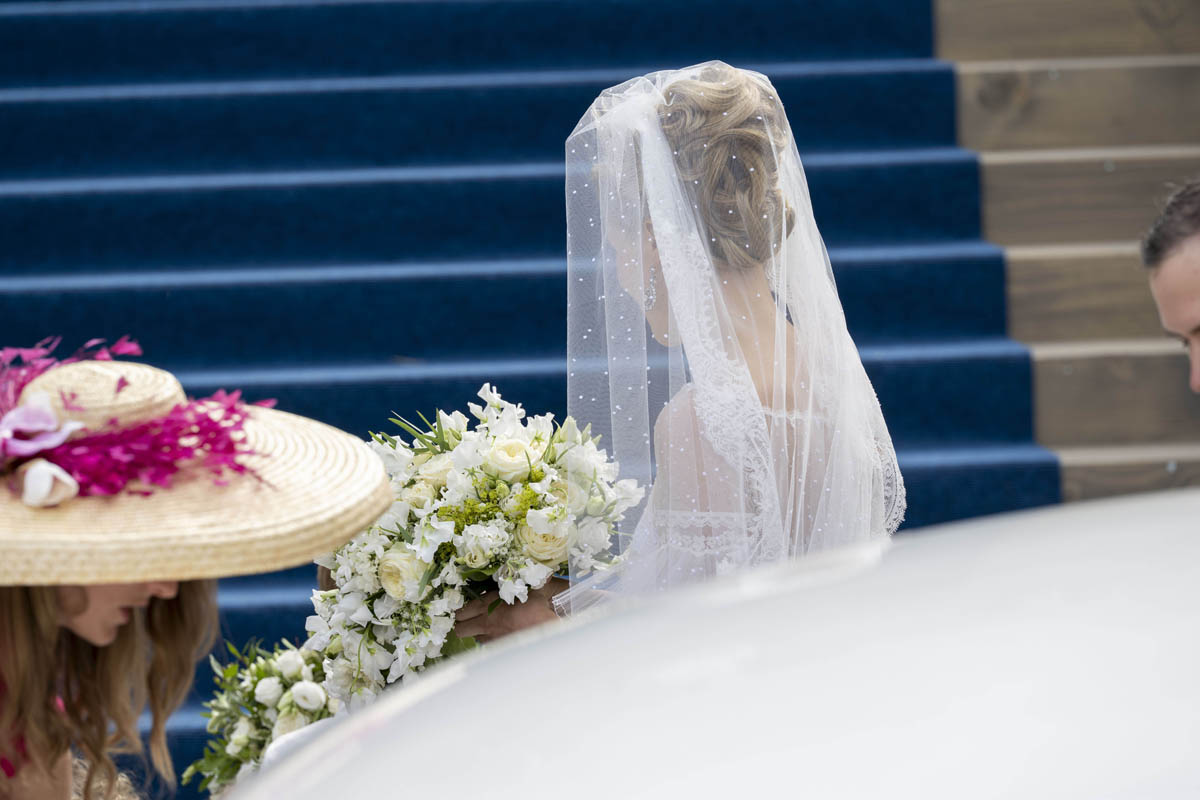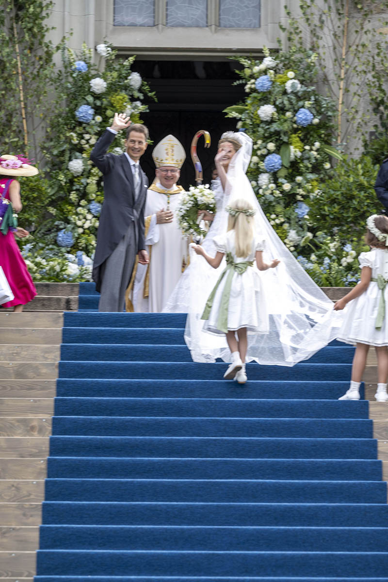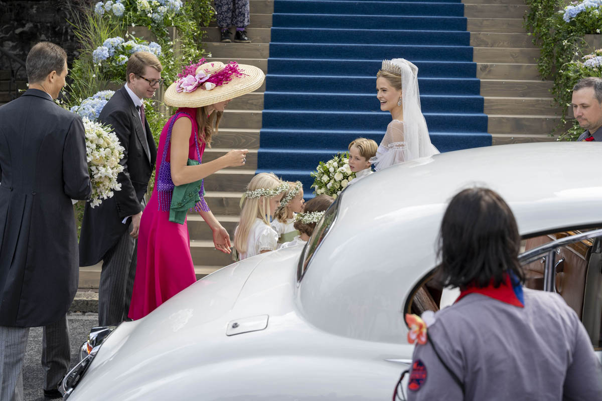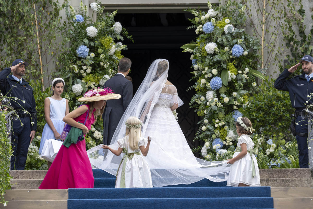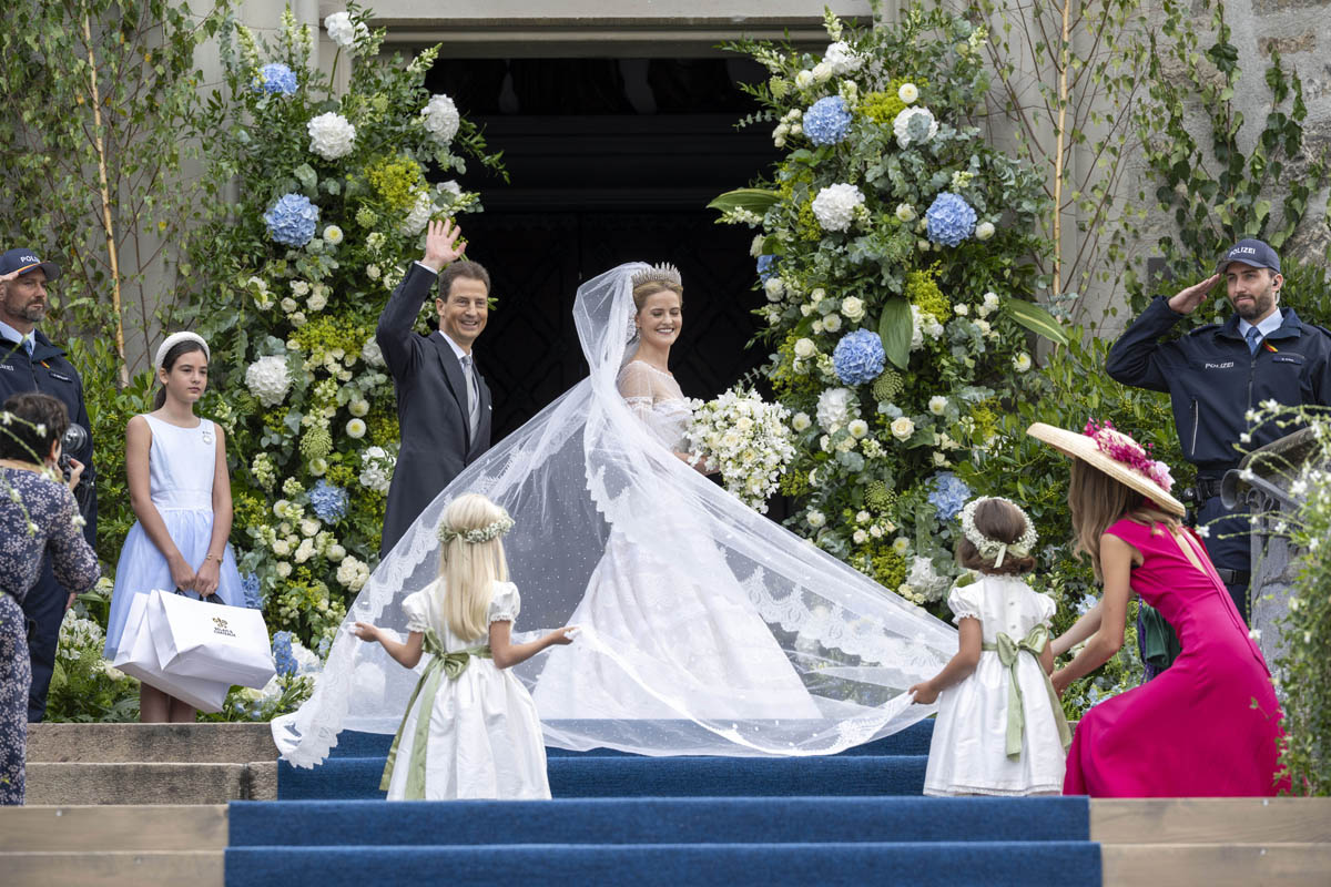 Die Braut I.D. Prinzessin Marie Caroline von und zu Liechtenstein traf feierlich mit einem Oldtimer an der Kathedrale St. Florin in Vaduz ein. Begleitet von ihrem Vater, S.D. Erbprinz Alois von und zu Liechtenstein, führte ihr Weg zum Altar – ein berührender Moment für Familie, Freunde und Gäste.