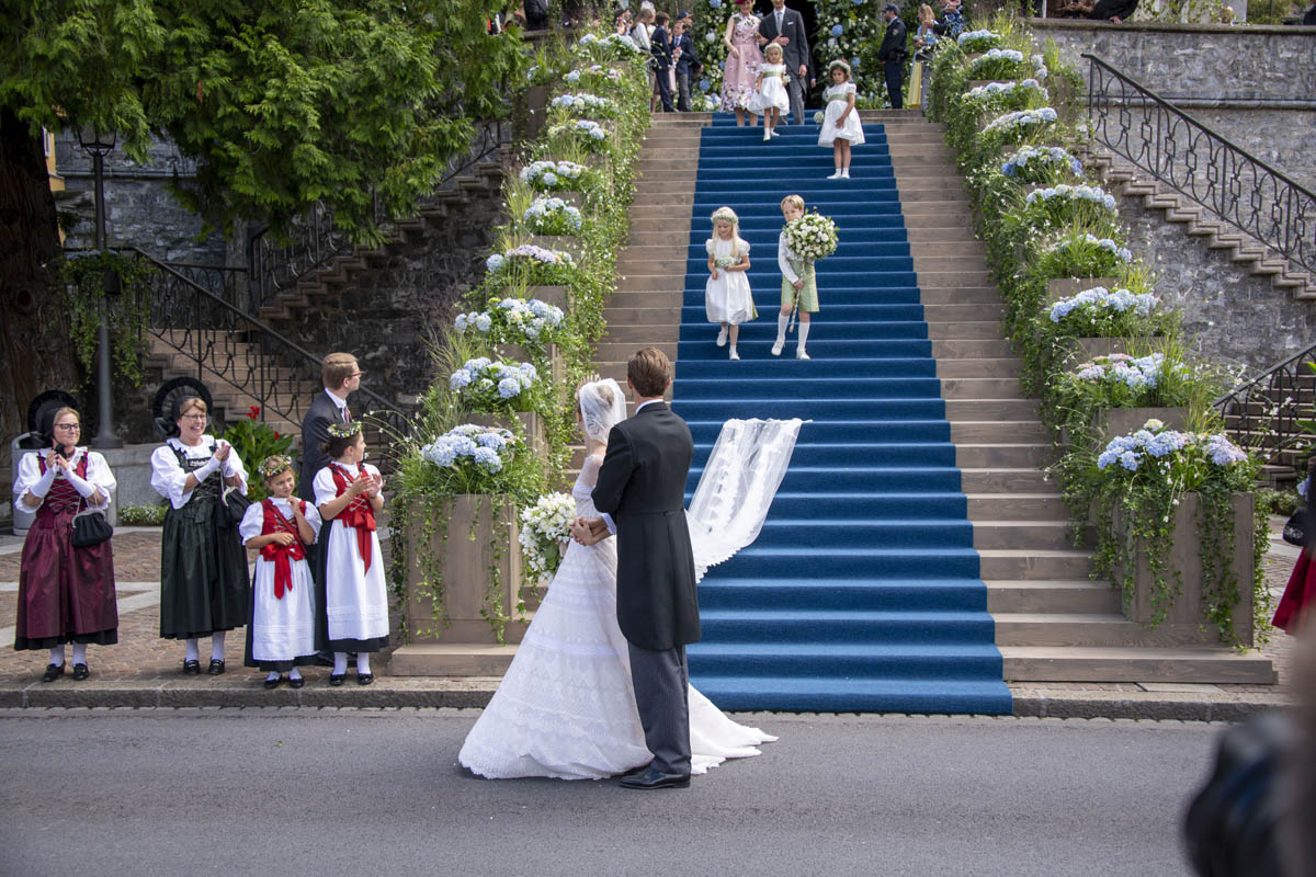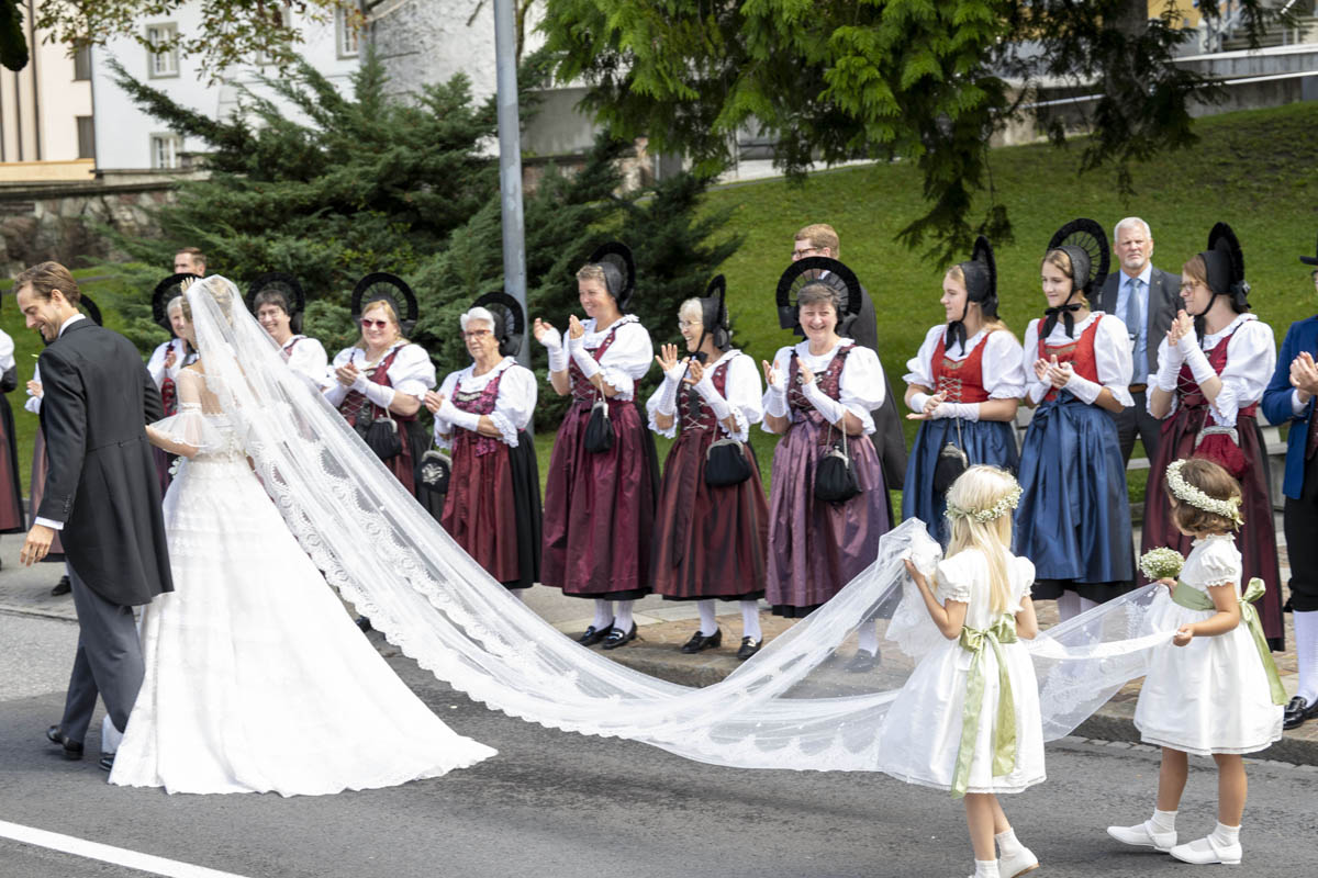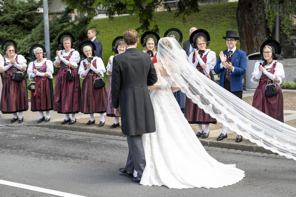 Galerie 4: Das Brautpaar und die Hochzeitsgäste verlassen die Kathedrale St. Florin, Vaduz