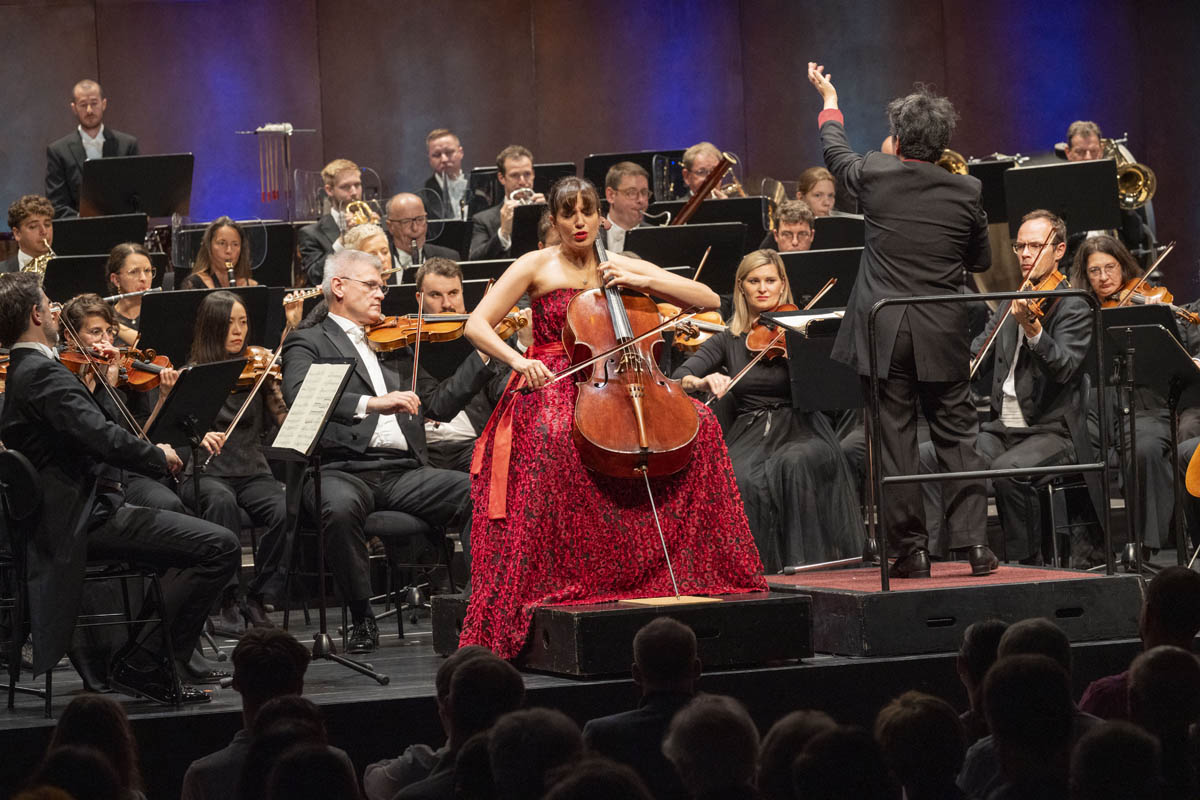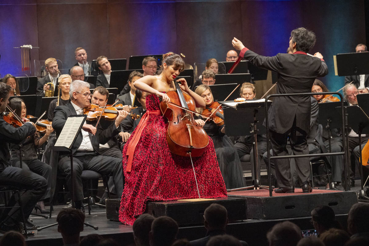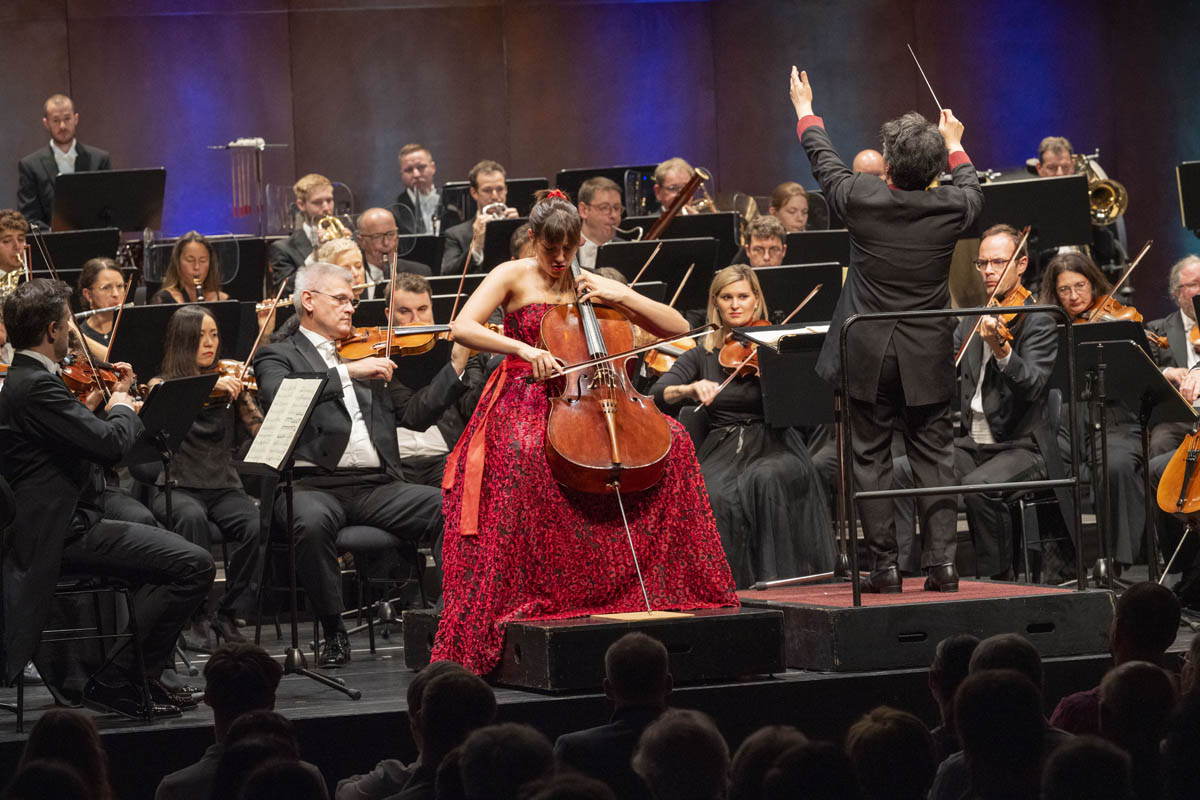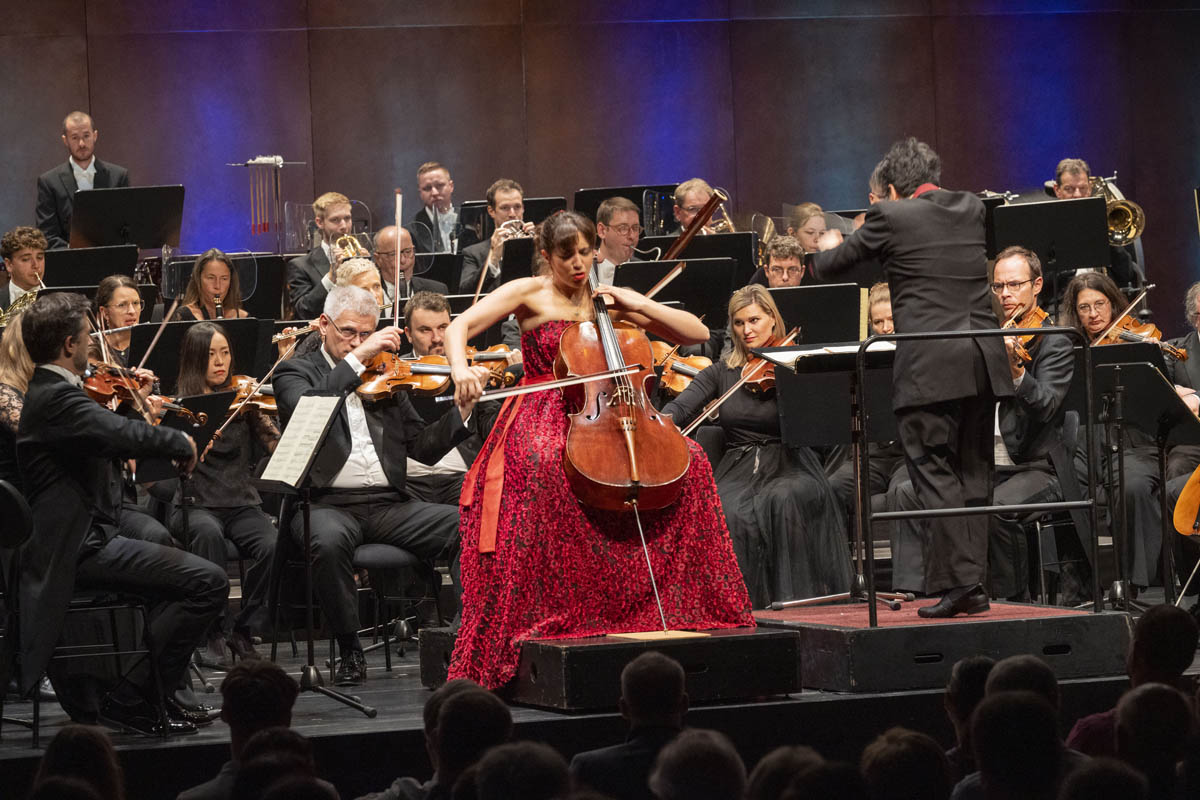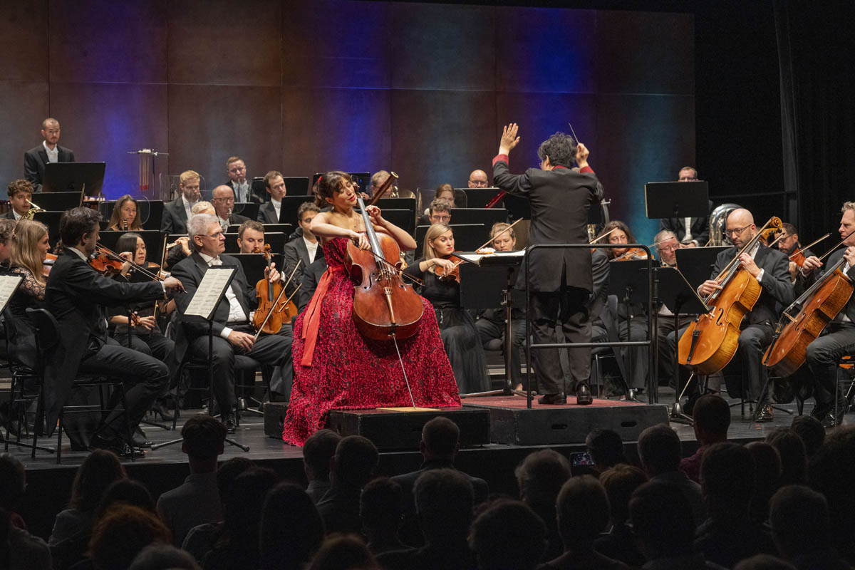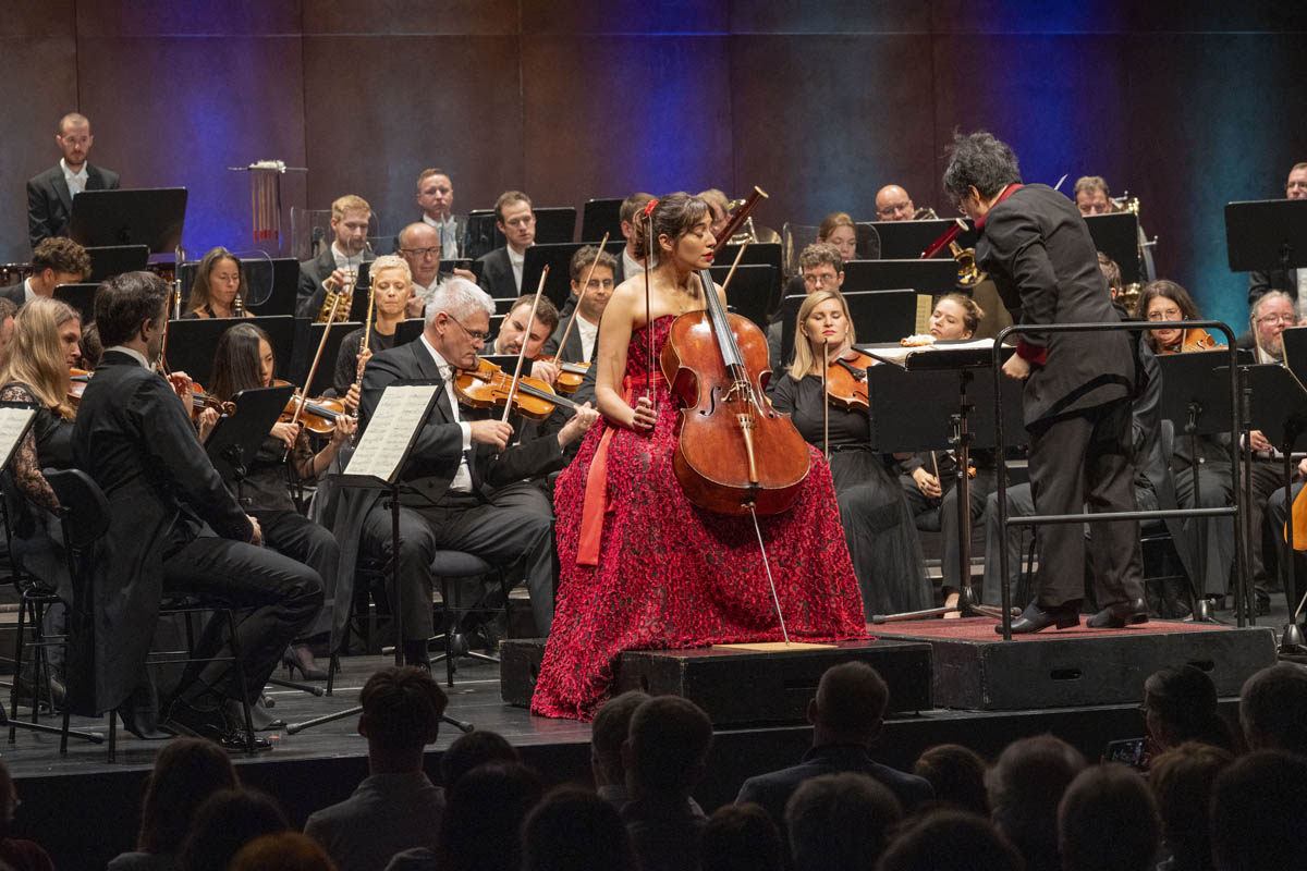 Nach der Pause trat mit Camille Thomas eine der faszinierendsten Cellistinnen ihrer Generation auf. Die junge Franco-Belgierin füllte den Saal mit einer Strahlkraft, die zwischen Virtuosität und tiefster Emotionalität balancierte. Mit Dvořáks Cellokonzert, einem der meistgeliebten Werke der Literatur, entfaltete sie eine ergreifende Klangwelt, getragen vom sensiblen Zusammenspiel mit dem SOL.