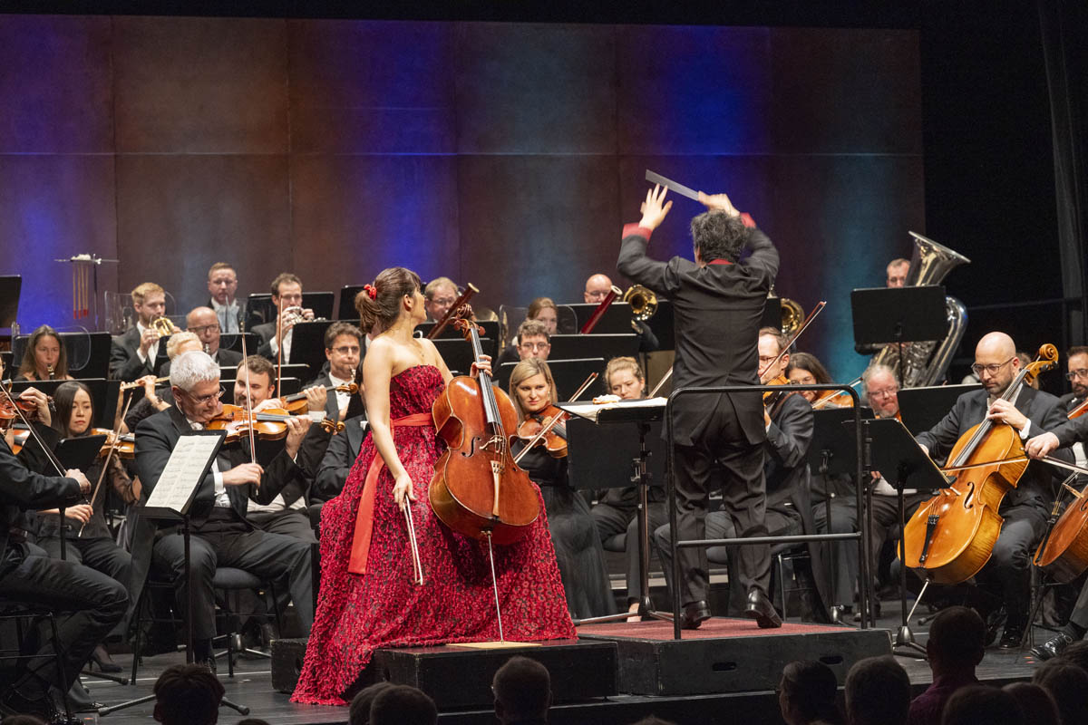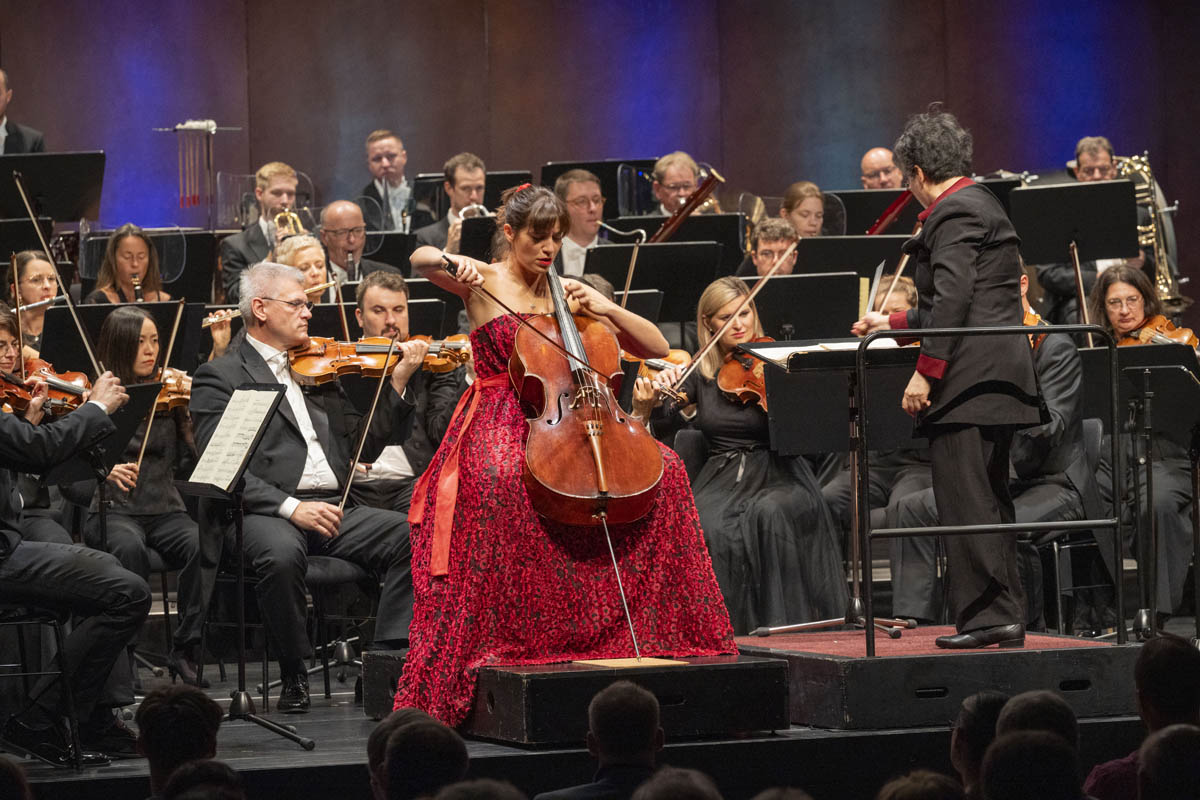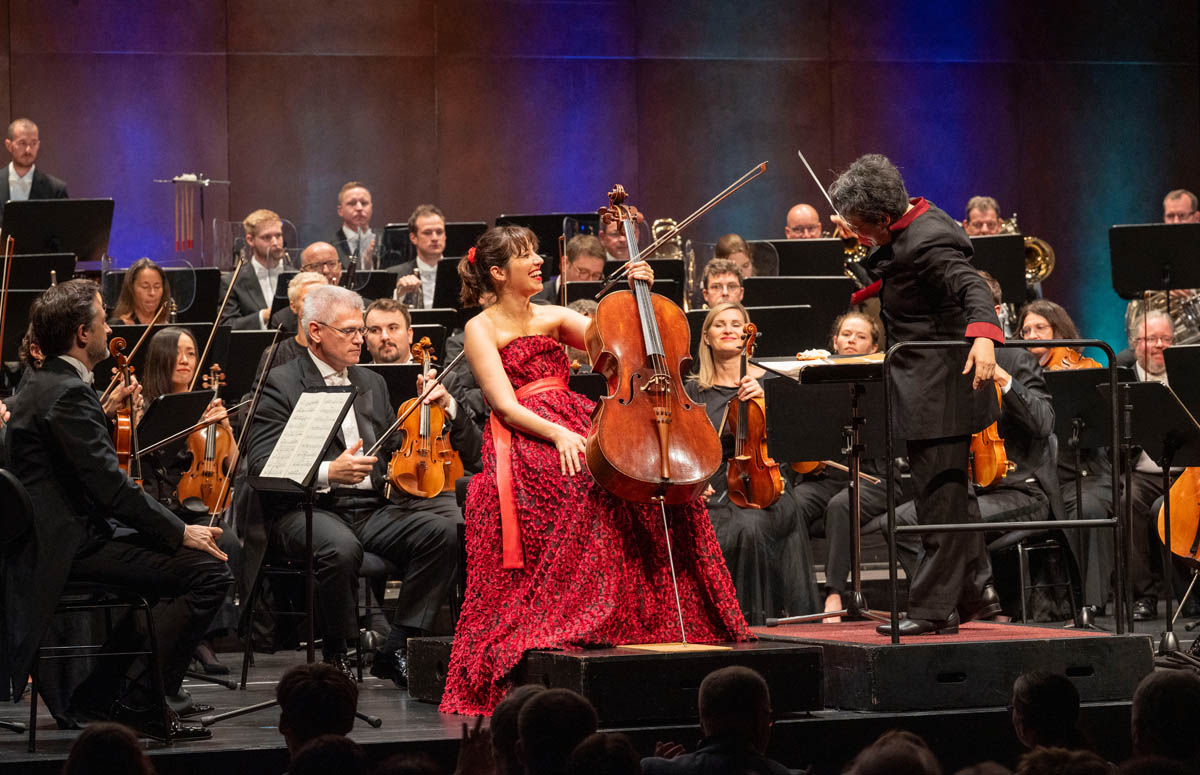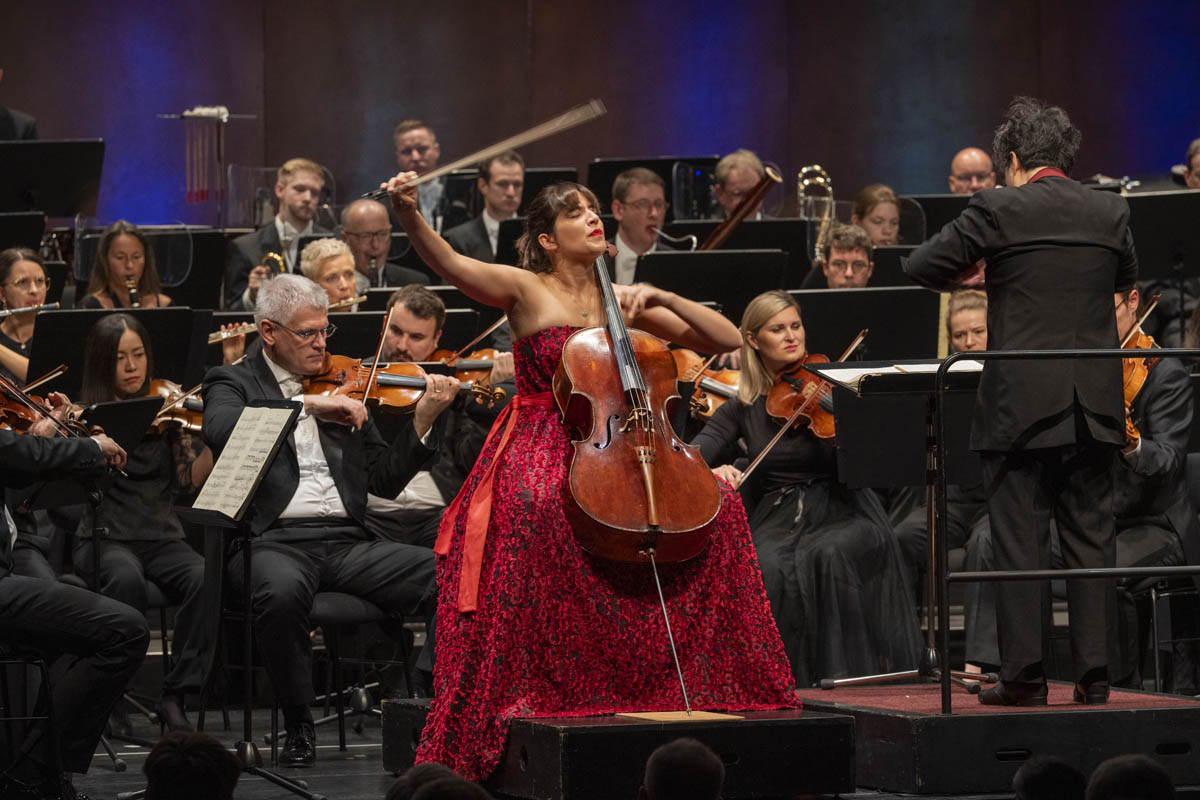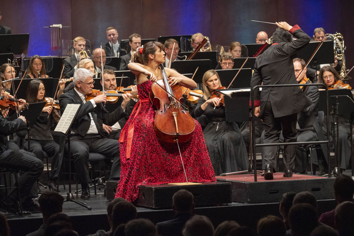 Nach der Pause trat mit Camille Thomas eine der faszinierendsten Cellistinnen ihrer Generation auf. Die junge Franco-Belgierin füllte den Saal mit einer Strahlkraft, die zwischen Virtuosität und tiefster Emotionalität balancierte. Mit Dvořáks Cellokonzert, einem der meistgeliebten Werke der Literatur, entfaltete sie eine ergreifende Klangwelt, getragen vom sensiblen Zusammenspiel mit dem SOL.