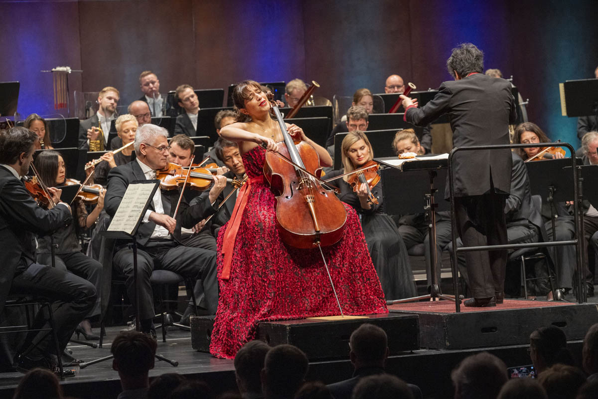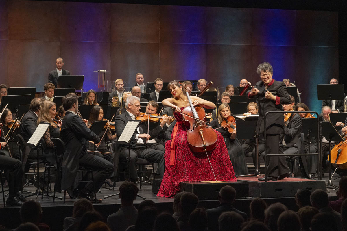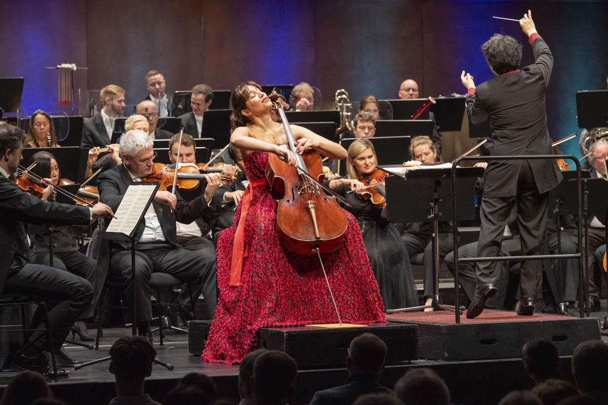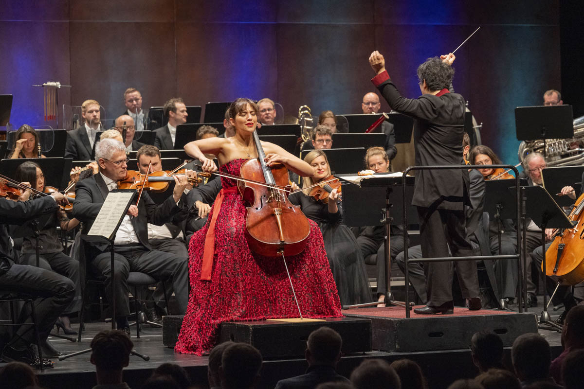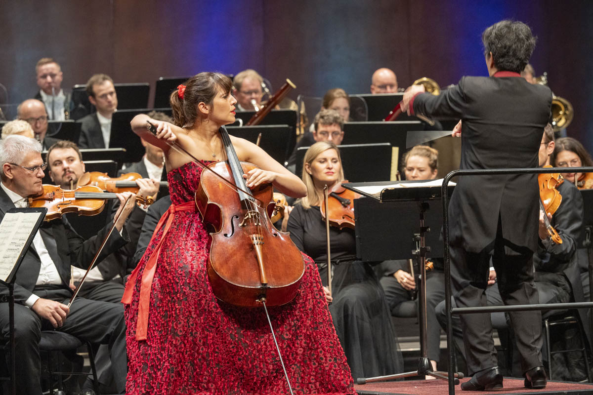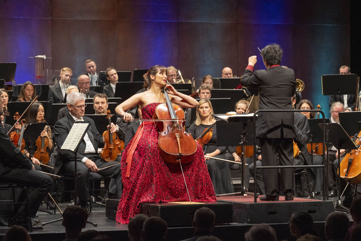 Nach der Pause trat mit Camille Thomas eine der faszinierendsten Cellistinnen ihrer Generation auf. Die junge Franco-Belgierin füllte den Saal mit einer Strahlkraft, die zwischen Virtuosität und tiefster Emotionalität balancierte. Mit Dvořáks Cellokonzert, einem der meistgeliebten Werke der Literatur, entfaltete sie eine ergreifende Klangwelt, getragen vom sensiblen Zusammenspiel mit dem SOL.