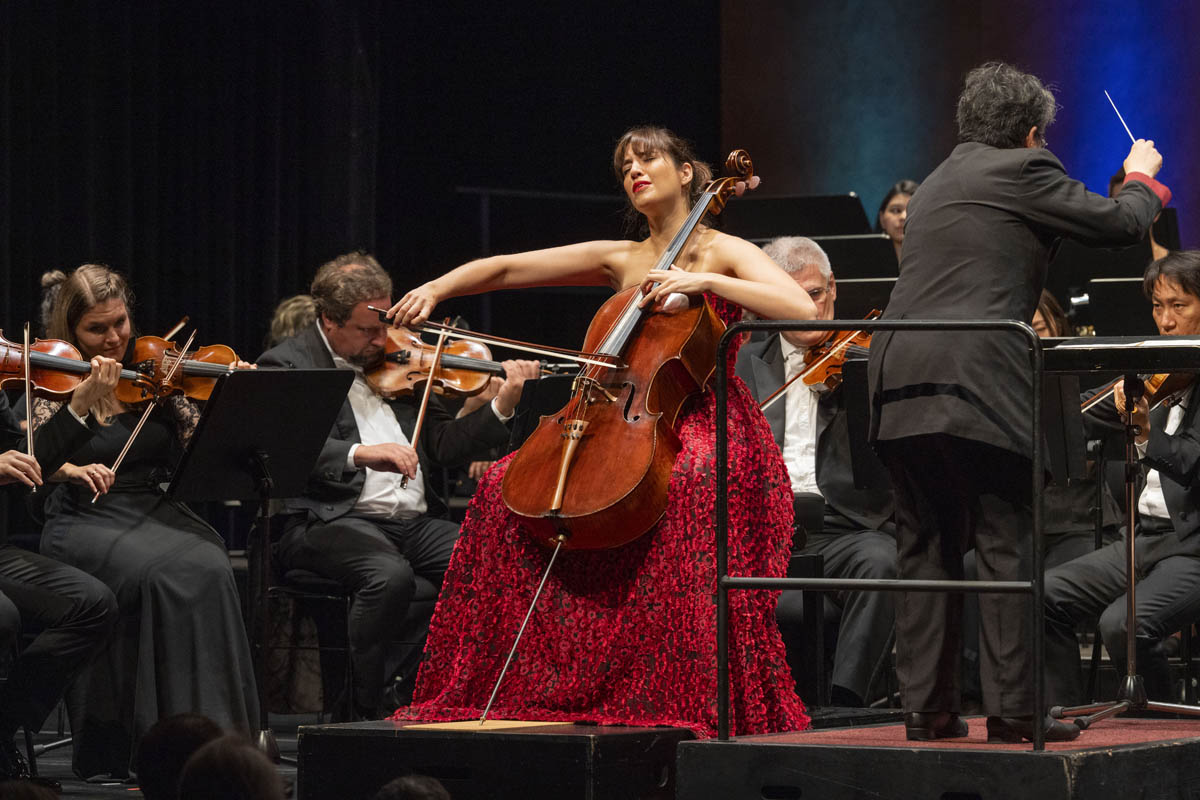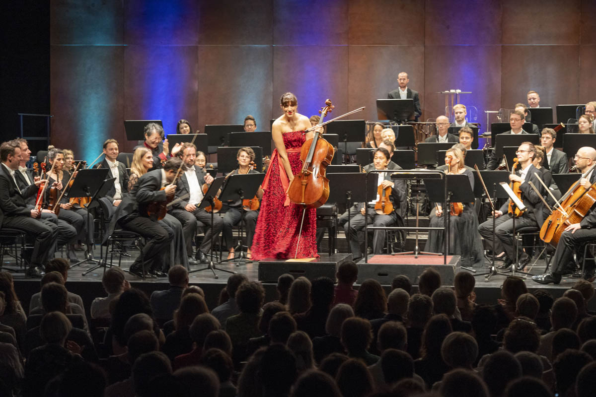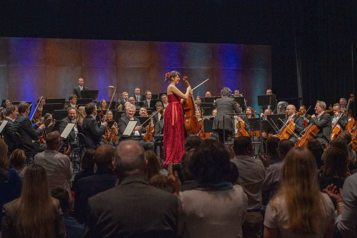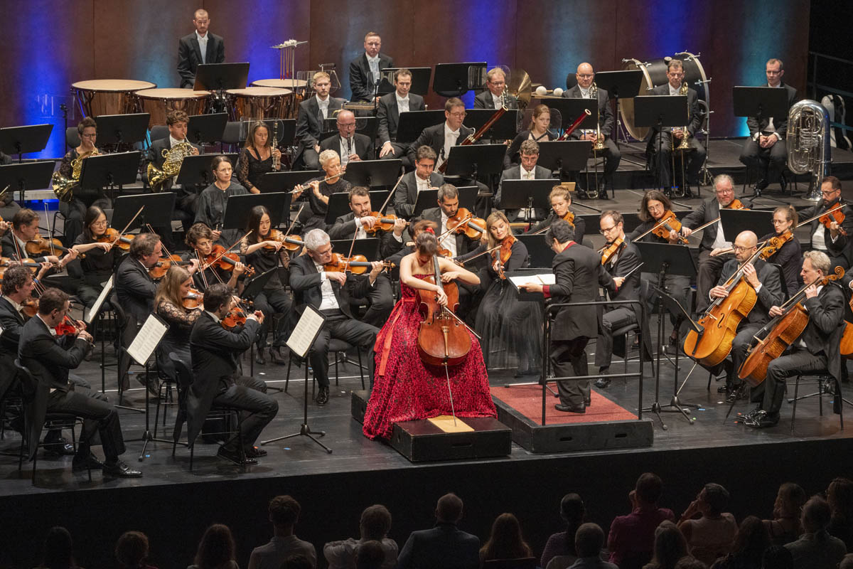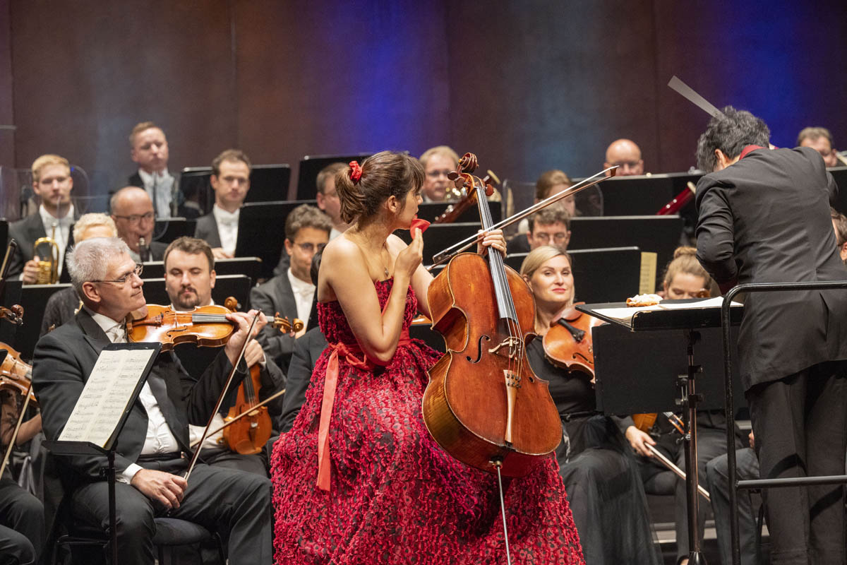 Nach der Pause trat mit Camille Thomas eine der faszinierendsten Cellistinnen ihrer Generation auf. Die junge Franco-Belgierin füllte den Saal mit einer Strahlkraft, die zwischen Virtuosität und tiefster Emotionalität balancierte. Mit Dvořáks Cellokonzert, einem der meistgeliebten Werke der Literatur, entfaltete sie eine ergreifende Klangwelt, getragen vom sensiblen Zusammenspiel mit dem SOL.