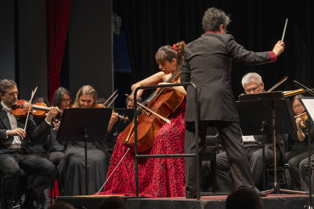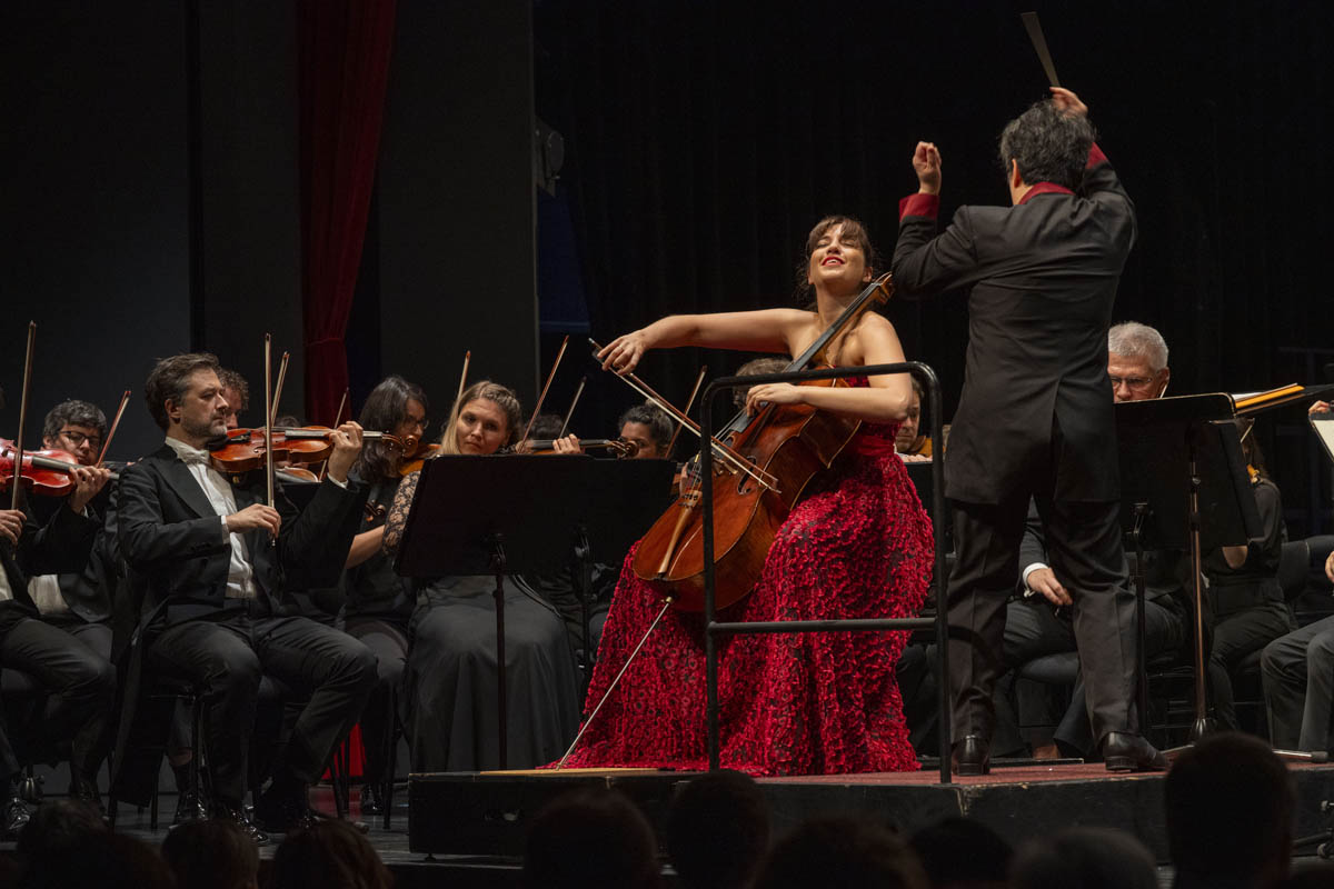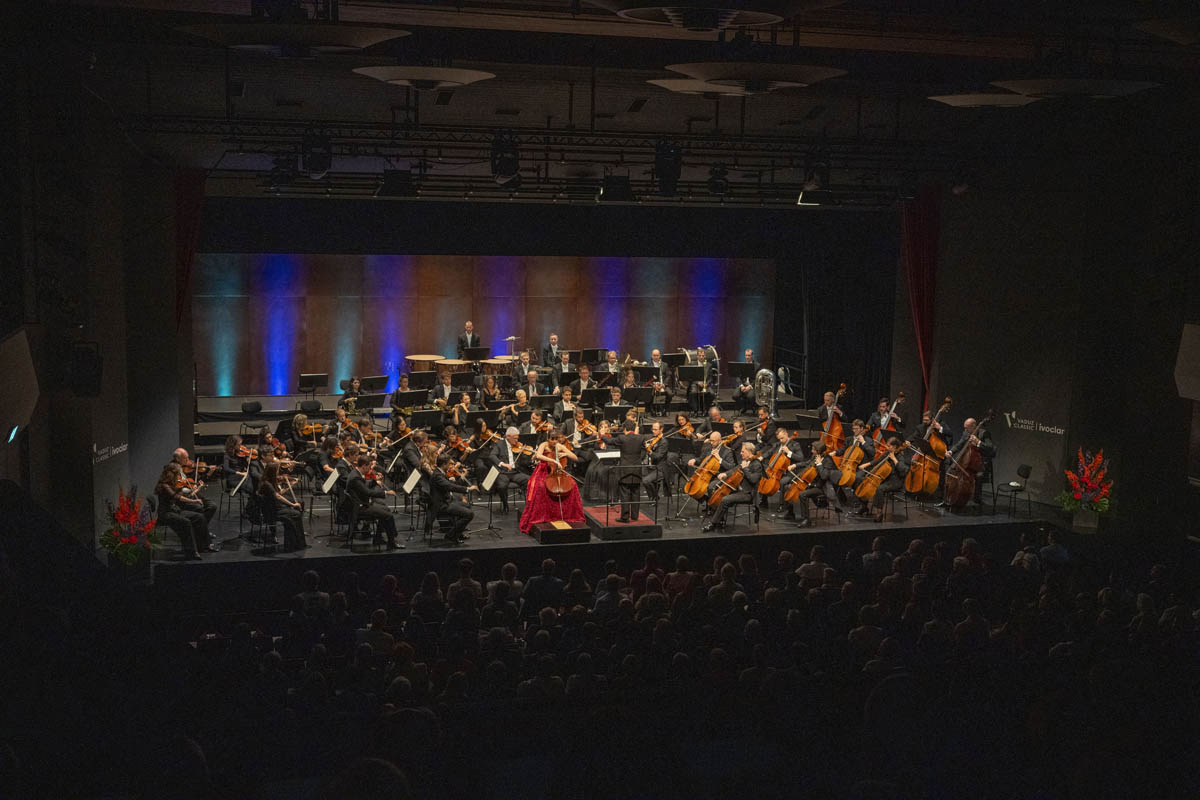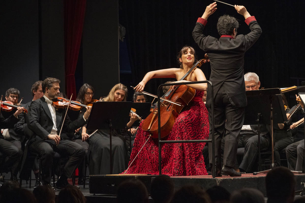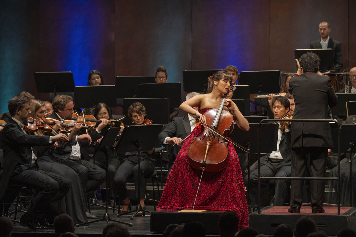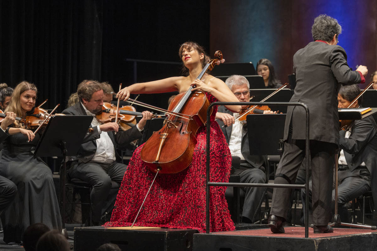 Nach der Pause trat mit Camille Thomas eine der faszinierendsten Cellistinnen ihrer Generation auf. Die junge Franco-Belgierin füllte den Saal mit einer Strahlkraft, die zwischen Virtuosität und tiefster Emotionalität balancierte. Mit Dvořáks Cellokonzert, einem der meistgeliebten Werke der Literatur, entfaltete sie eine ergreifende Klangwelt, getragen vom sensiblen Zusammenspiel mit dem SOL.