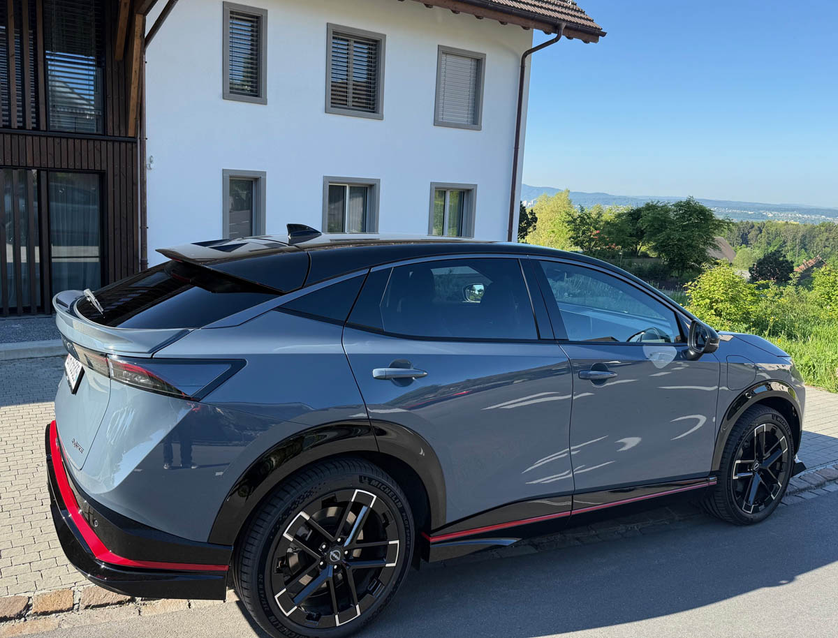 Profitiert hat Nissan bei der Entwicklung des Ariya von der gemeinsam mit Renault erarbeiteten Common-Module-Family-Plattform für Elektrofahrzeuge. Mit der eleganten, aerodynamischen Silhouette leisteten auch die Designer einen wesentlichen Beitrag, um den Stromverbrauch zu senken und somit für Mehrkilometer zu sorgen. Wer sich vorwiegend im Eco-Modus bewegt, profitiert zusätzlich vom neuen Konzept der Schwungnutzung statt der bisherigen Rekuperation und erreicht in der Praxis mehr Reichweite. Wer den Ariya dynamisch durch Kurven steuert stellt fest, dass das Fahrwerk, die Bremsen und die Lenkung den sportlichen Attributen gerecht werden. Im Fahrmodus «Nismo» lässt sich der Ariya noch rassiger vorwärtsbewegen. Auf schwierigem Untergrund trägt der modifizierte Allrad zur noch besseren Traktion bei. Zusammengefasst erfüllt der Ariya «Nismo» die hohen Erwartungen an einen dynamischen Elektro-SUV.