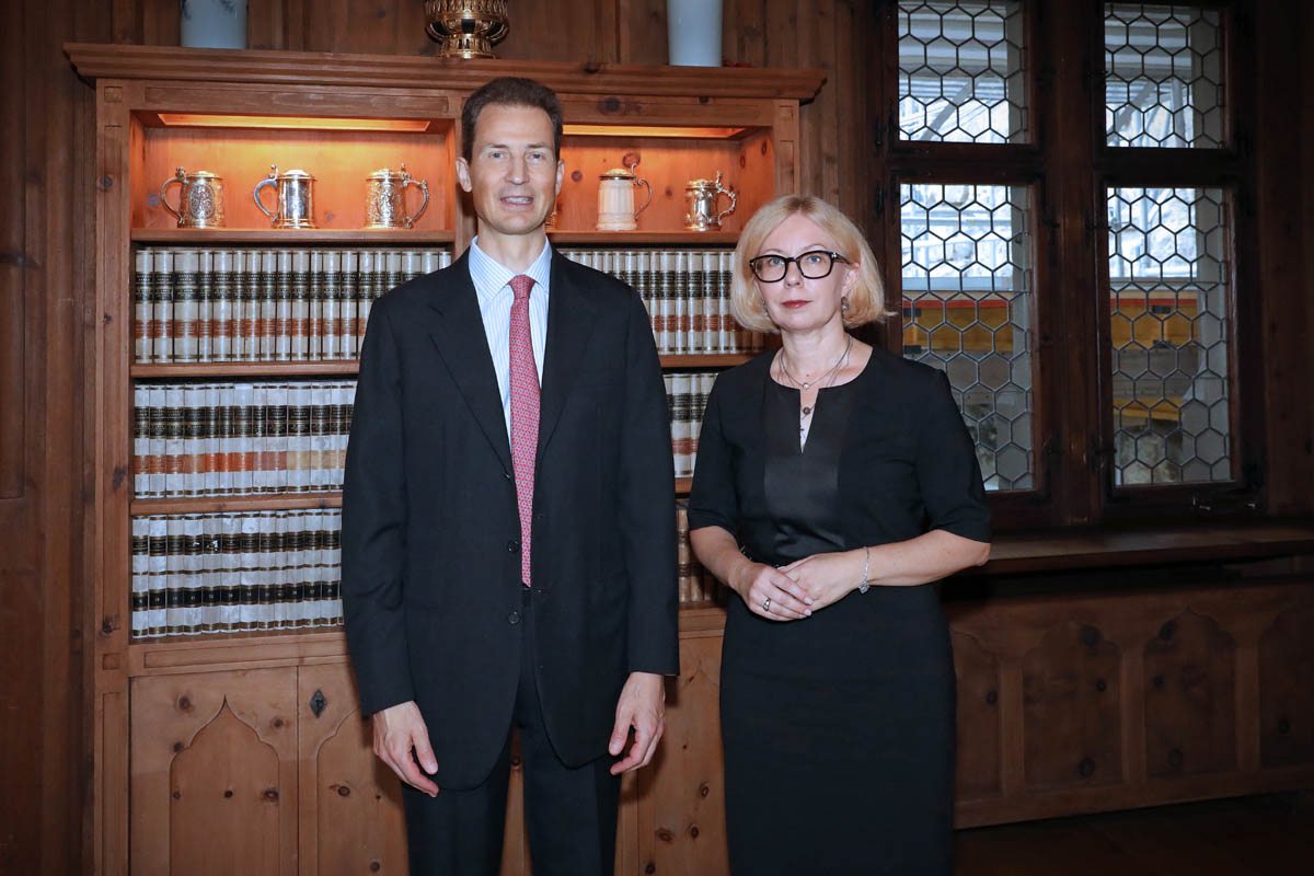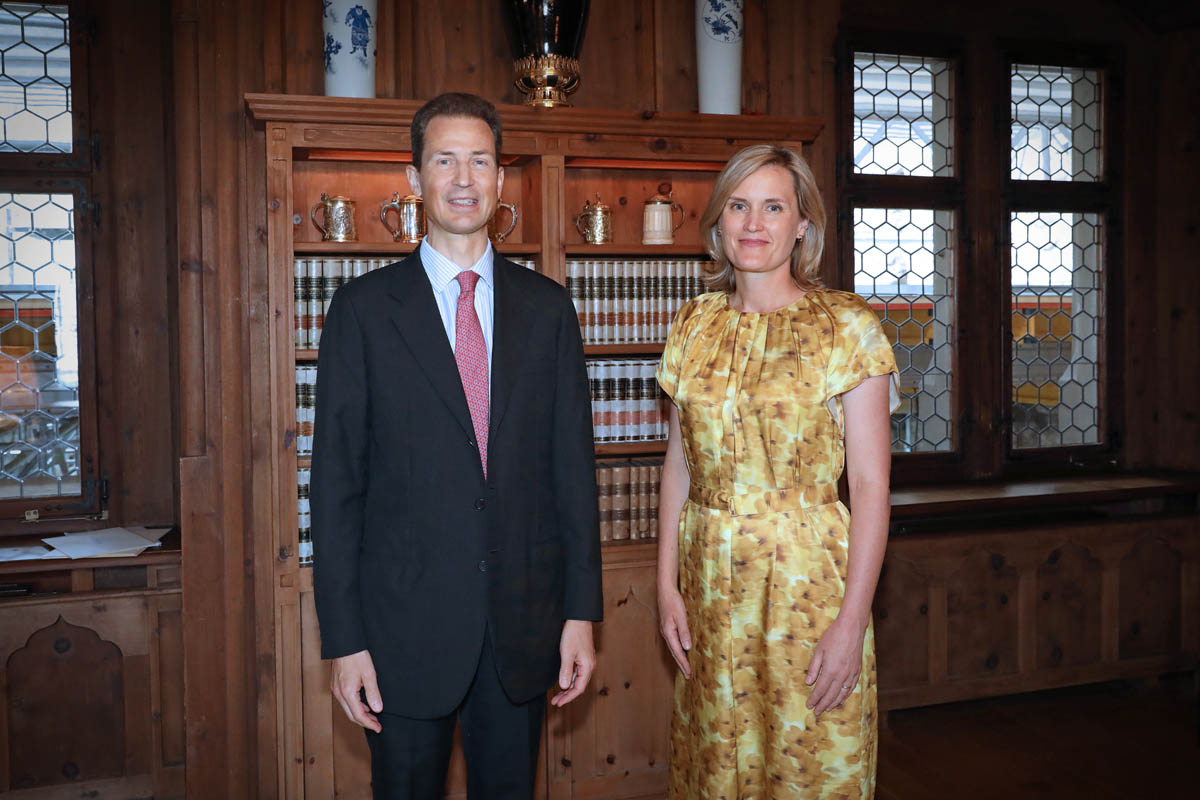 Vor der Überreichung des Beglaubigungsschreibens statteten die Botschafter Regierungsrätin Dominique Hasler einen Höflichkeitsbesuch im Regierungsgebäude ab.
