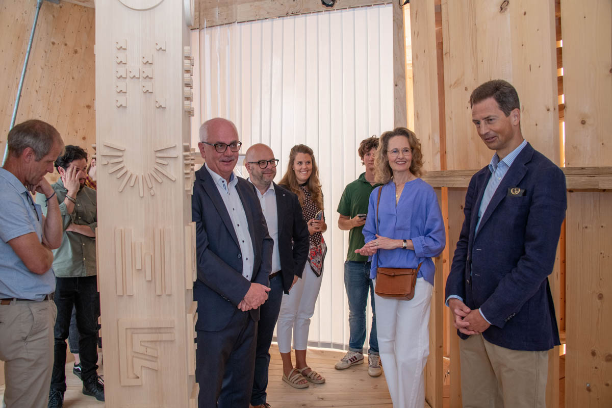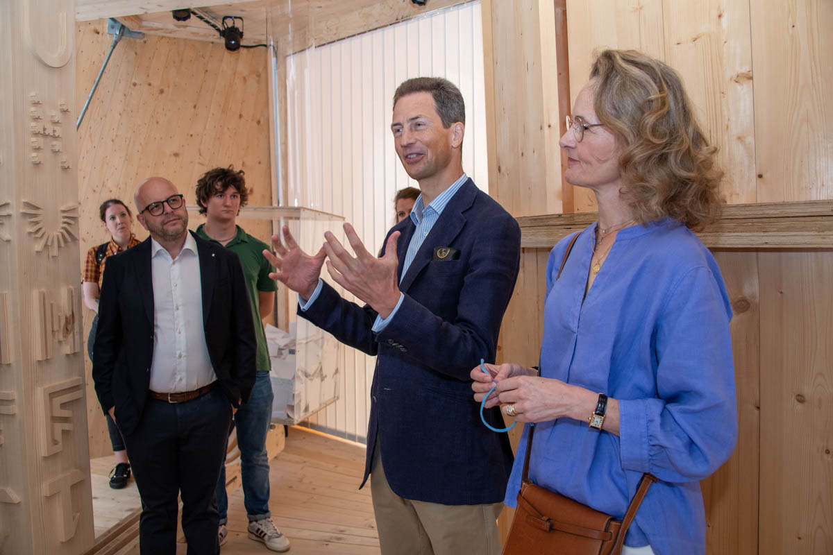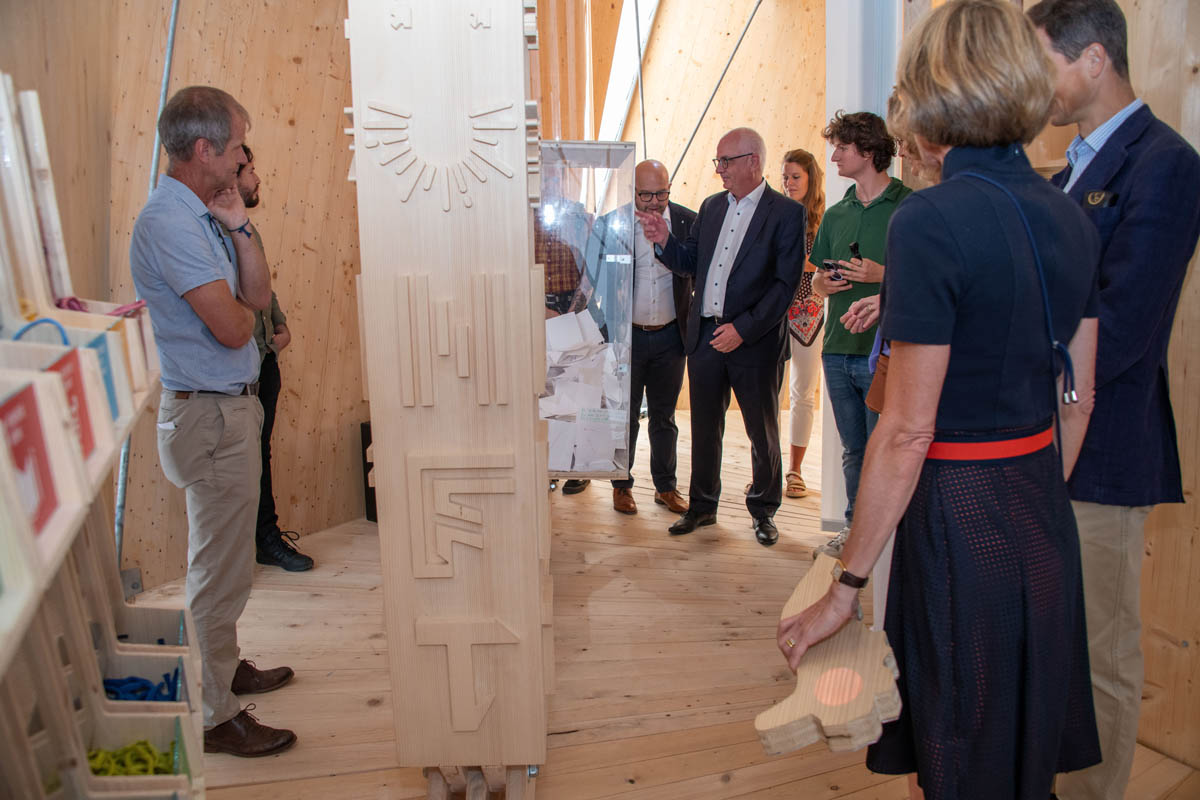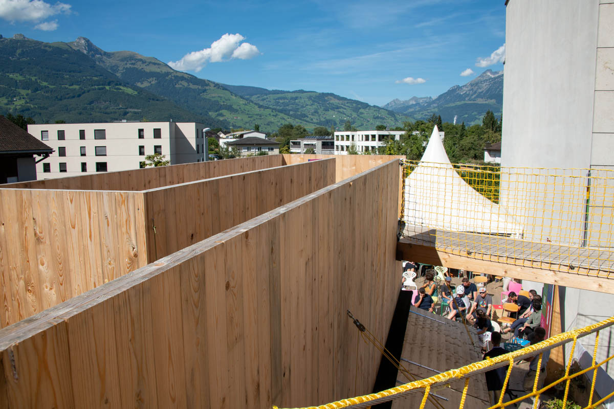 Als Zwischennutzung werden wir den auf Dux entstehenden Turm für 17 Wochen auf dem Lindaplatz in Schaan aufstellen. Dieser 35 Meter hohe eindrückliche Ausstellungsträger hilft uns, das Interesse für die Ausstellung für breite Bevölkerung zu wecken. So erhoffen wir uns, dass wir Menschen in eine Themenwelt integrieren können, welche eher schwer vermittelbar wäre.
