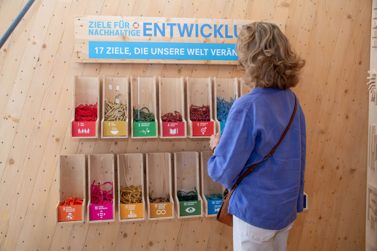 Deshalb ist unsere Botschaft: Die Zukunft ist gut. Und die Zukunft passiert jetzt. Nachhaltig zu leben, heisst nicht auf Lebensqualität zu verzichten. Wer sich bewusst entscheidet, kein eigenes Auto mehr zu besitzen, lebt gemäss Studien genauso glücklich, wie derjenige der eines besitzt. Wird man aber zu einem Verzicht auf ein Auto gezwungen, fühlt man sich an Lebensqualität beraubt. Deshalb ist unser Ansatz, dass wir den Besucher*innen aufzeigen wollen, dass Nachhaltigkeit durchaus die Lebensqualität steigern kann.