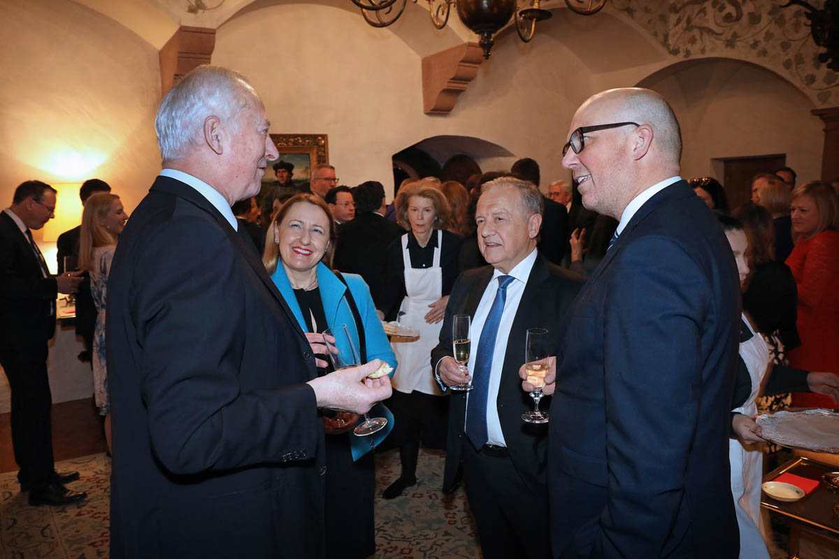 Landtagspräsident Albert Frick und Regierungschef Daniel Risch überbrachten dem Landesfürsten die Glück- und Segenswünsche der Behörden und der Bevölkerung. Zum Gratulationsempfang waren die Mitglieder der Regierung und des Landtages mit ihren Stellvertretern, die Gerichtspräsidenten und Senatsvorsitzenden, die Gemeindevorsteher, der Pfarrer von Vaduz sowie die Präsidenten der im Landtag vertretenen Parteien geladen.