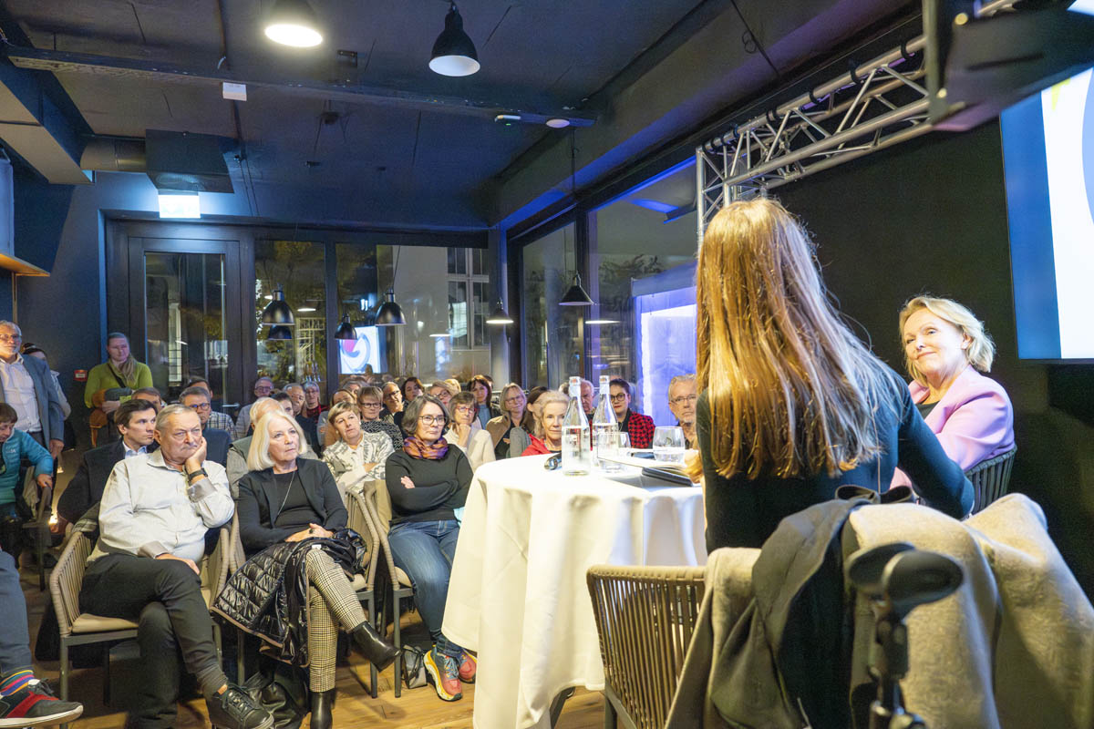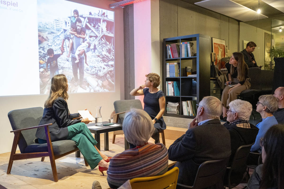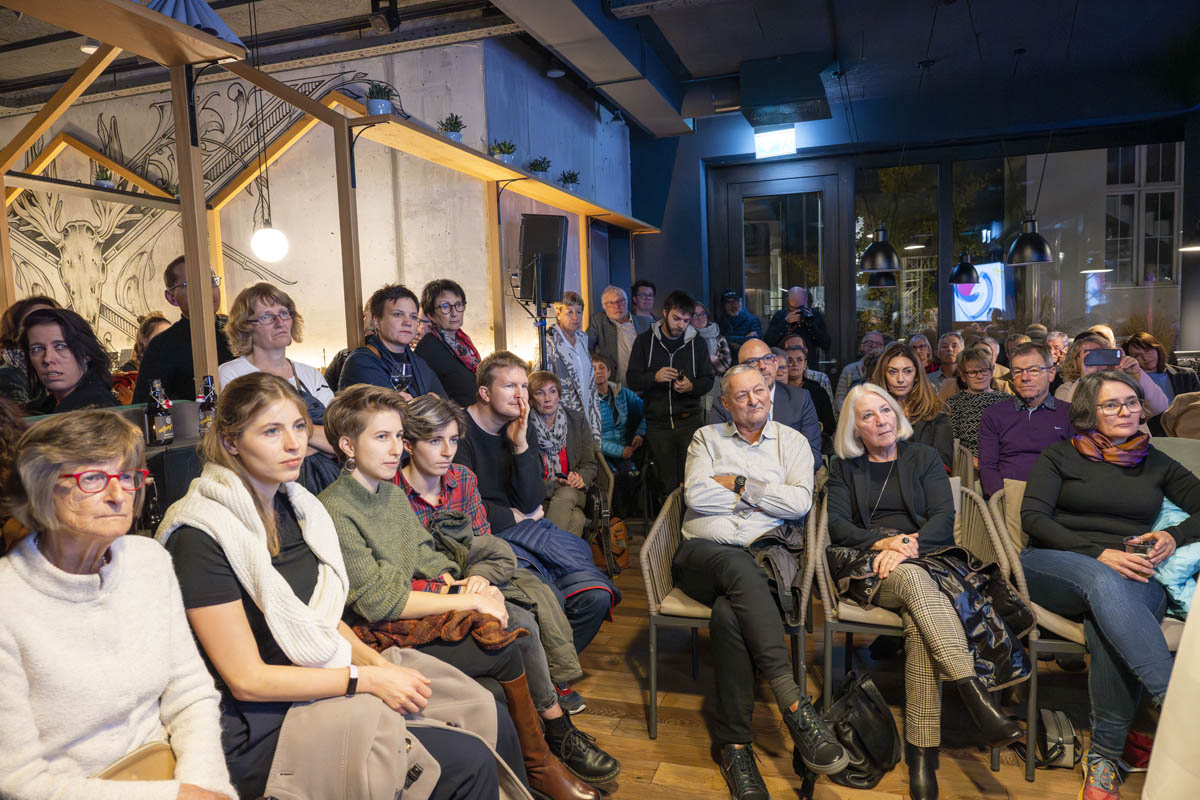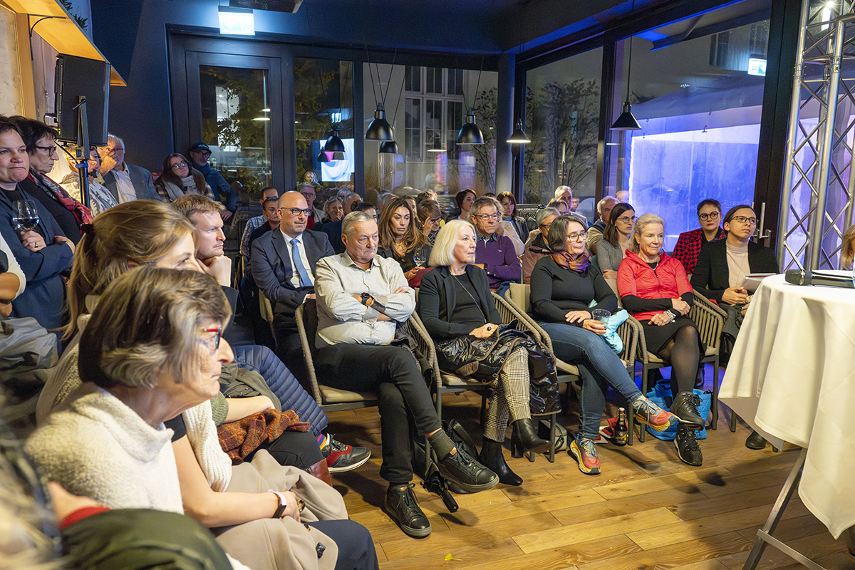 Moderiert wurde der Abend von Bettina Walch und Hannelore Veit (ORF). Sie unterhielten sich mit Sandra Wachter vom Internet Institute der Universität Oxford, eine der führenden Forscherinnen rund um Künstliche Intelligenz und Datenethik. Sandra Wachter veranschaulichte, dass Algorithmen ständig Entscheidungen treffen, die uns als Personen direkt betreffen und mitunter unfair sind. Digitalexpertin und Autorin Ingrid Broding wiederum ging im Gespräch auf die gezielte Manipulation durch Falschinformationen ein. Sie zeigte auf, dass Fakten Checks nur teilweise wirken. Die bisherige SRF-Korrespondentin für die Ukraine und Russland, Luzia Tschirky, erzählte schliesslich von ihren persönlichen Eindrücken vom Krieg in der Ukraine. Sie griff auch das Thema der Kriegsberichterstattung auf.