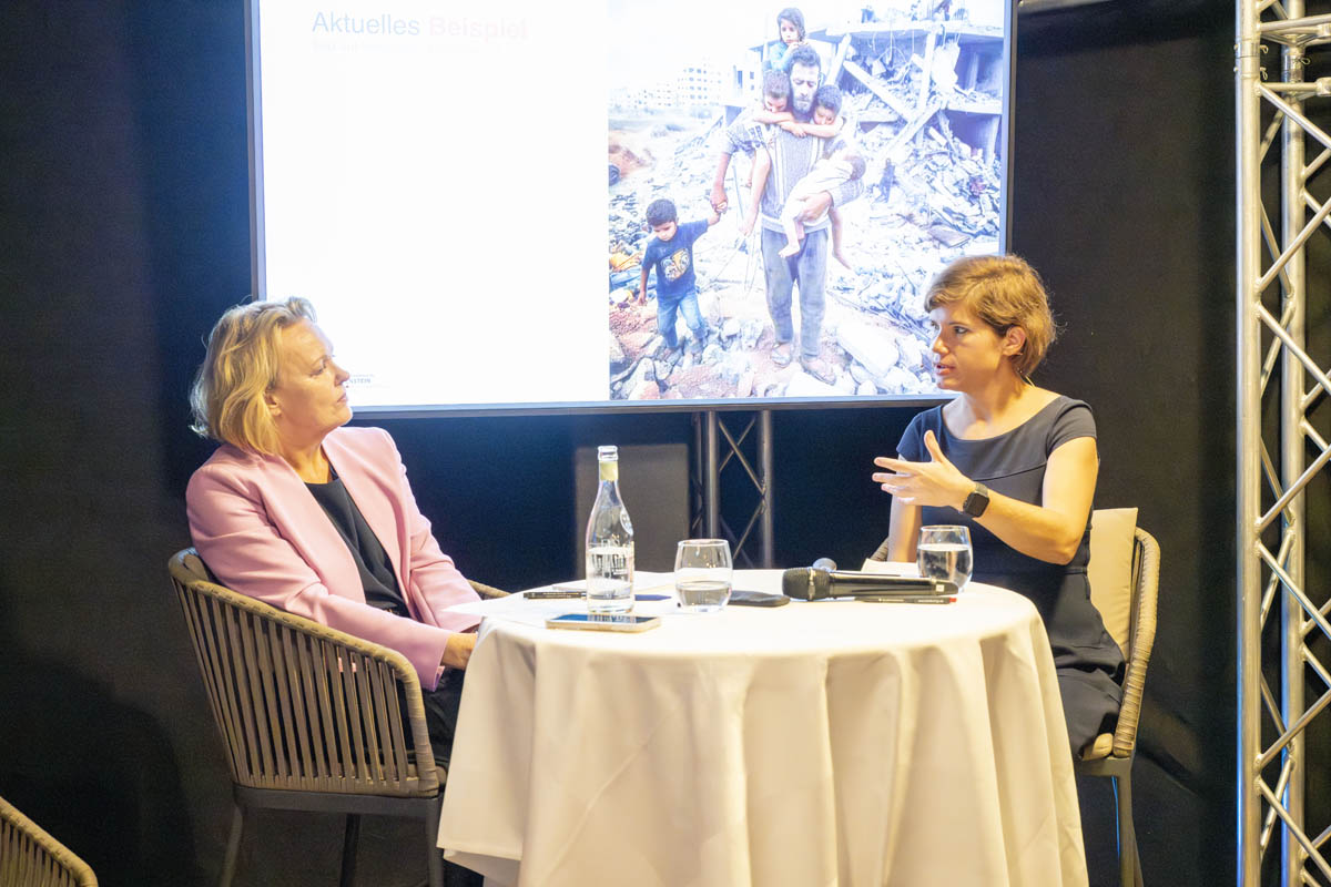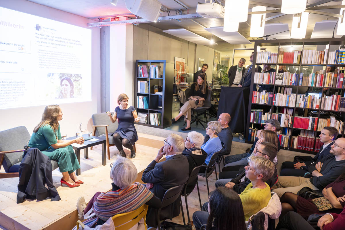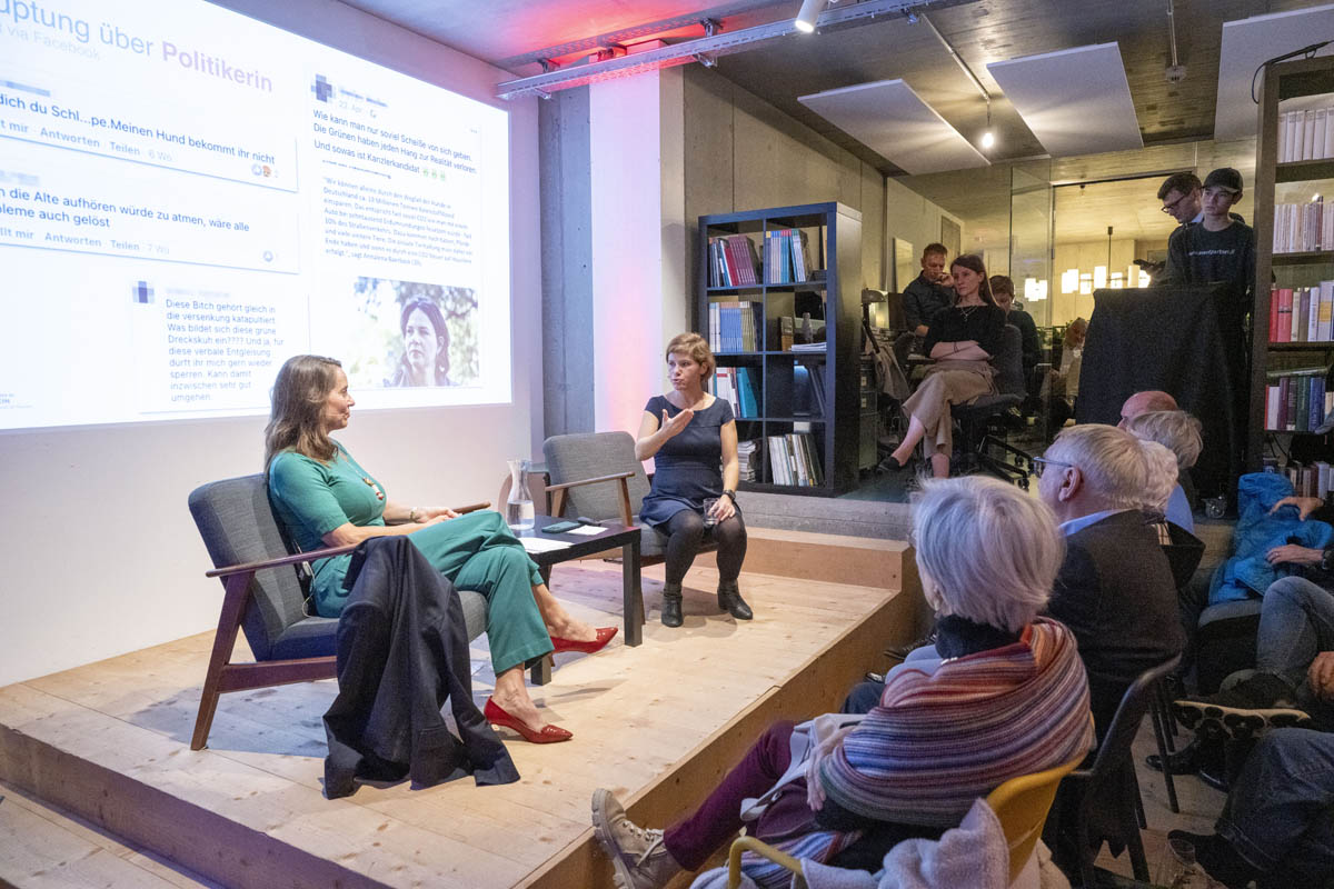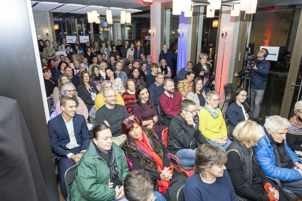 Moderiert wurde der Abend von Bettina Walch und Hannelore Veit (ORF). Sie unterhielten sich mit Sandra Wachter vom Internet Institute der Universität Oxford, eine der führenden Forscherinnen rund um Künstliche Intelligenz und Datenethik. Sandra Wachter veranschaulichte, dass Algorithmen ständig Entscheidungen treffen, die uns als Personen direkt betreffen und mitunter unfair sind. Digitalexpertin und Autorin Ingrid Broding wiederum ging im Gespräch auf die gezielte Manipulation durch Falschinformationen ein. Sie zeigte auf, dass Fakten Checks nur teilweise wirken. Die bisherige SRF-Korrespondentin für die Ukraine und Russland, Luzia Tschirky, erzählte schliesslich von ihren persönlichen Eindrücken vom Krieg in der Ukraine. Sie griff auch das Thema der Kriegsberichterstattung auf.