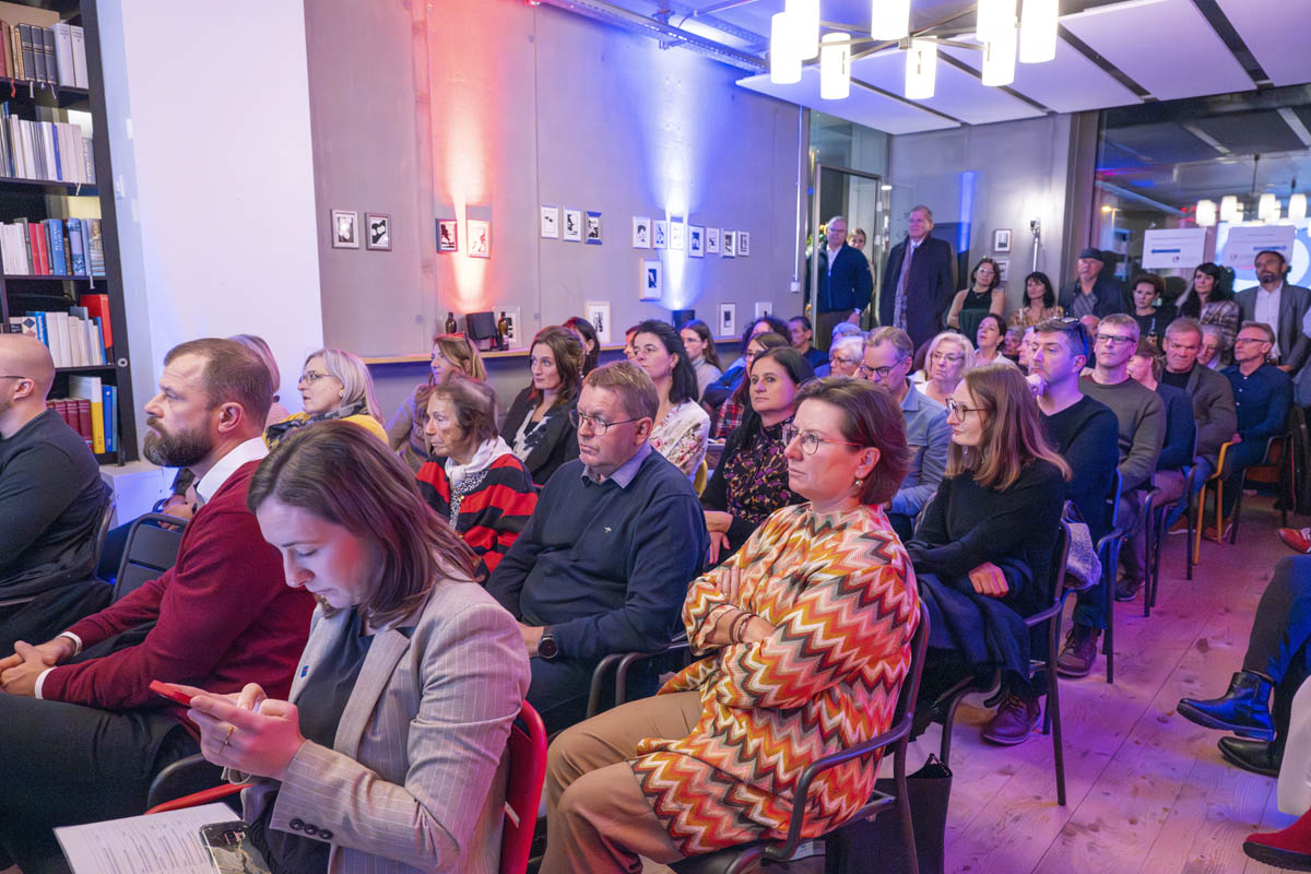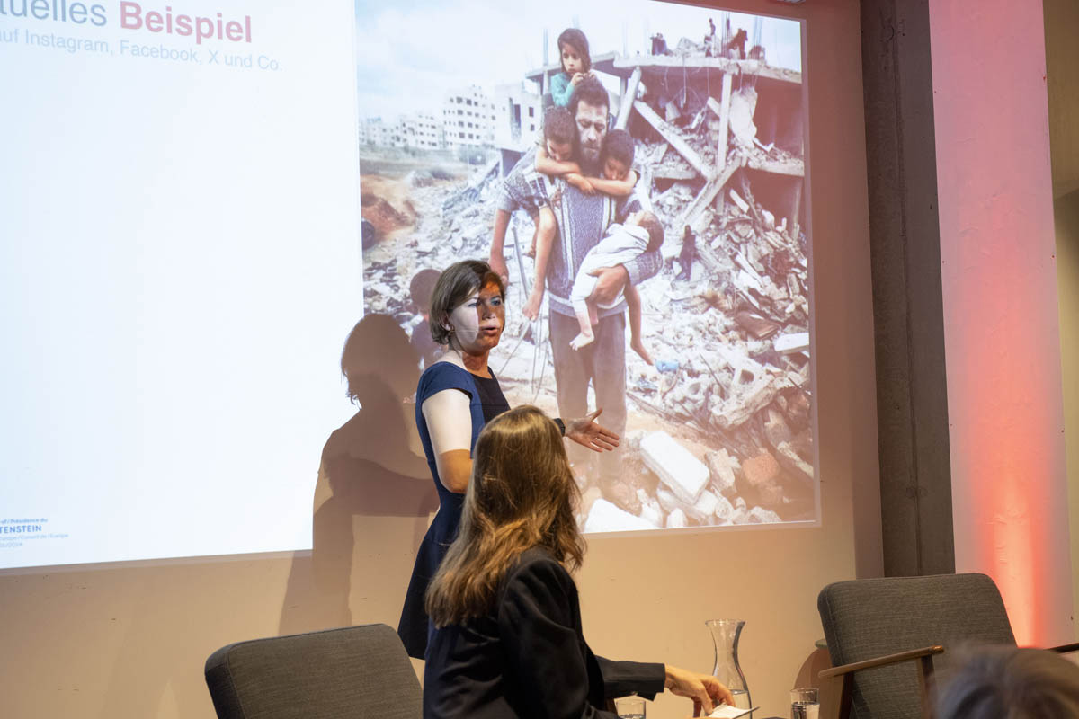Die Auftaktveranstaltung zum Europaratsvorsitz wurde in einem nicht alltäglichen Format abgehalten: In drei Lokalitäten in Schaan - Literaturhaus, Skino und Scanaua - hatten die interessierten Besucherinnen und Besucher die Möglichkeit, moderierten Gesprächen zu den Themen Künstliche Intelligenz, Fake News und russischer Aggressionskrieg beizuwohnen und sich Kurzfilme zu menschenrechtlichen Aspekten anzusehen. Die Nähe zu den Moderatorinnen und ihren Gesprächspartnerinnen erlaubte es dem Publikum, sich zu den einzelnen Themen einzubringen und Fragen zu stellen.