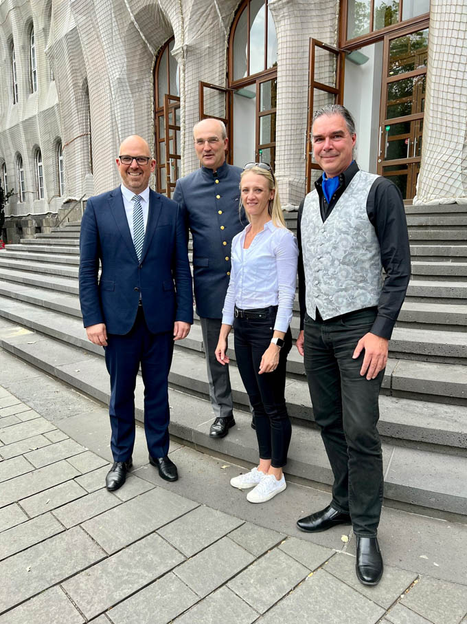 Anlass für den Besuch des Regierungschefs in Aachen und Düsseldorf war die Einladung der Veranstalter des renommierten deutschen Neuland-Kongresses. Daniel Risch ging auf den Beitrag von kleinen Ländern in der globalen Staatengemeinschaft und die Vorteile eines nach unternehmerischen Prinzipien geführten Staates ein. Zu Beginn seines Besuchs in Aachen traf sich Regierungschef Daniel Risch am Dienstag, 27. Juni zu einem Arbeitsgespräch mit Aachens Oberbürgermeisterin, Sybille Keupen. Dabei wurden die Schwerpunktthemen Wirtschaft, gesellschaftliche Transformation und der Karlspreis, der jährlich in Aachen für Verdienste um die Europäische Einigung verliehen wird, besprochen. Nach dem Neuland-Kongress wurde Regierungschef Daniel Risch von Rektor Ulrich Rüdiger empfangen und durch die Rheinisch-Westfälische Technische Hochschule Aachen – kurz RWTH Aachen –, geführt. Die RWTH Aachen ist eine der führenden technischen Universitäten weltweit und zählt rund 47‘000 Studierende, 10'000 Mitarbeitende und über 550 Professoren. Als besonderen Fokus informierte das Forschungsteam für Künstliche Intelligenz den Regierungschef über ihre Forschungsschwerpunkte. Gleichentags fand in Aachen das traditionsreiche CHIO-Pferdeturnier mit umfassendem Rahmenprogramm statt, bei dem der Regierungschef an den Ehrentisch mit der CHIO-Präsidentin Stefanie Peters, I.K.H Prinzessin Anne, Ministerpräsident Hendrik Wüst und WDR-Intendant Tom Buhrow eingeladen war.