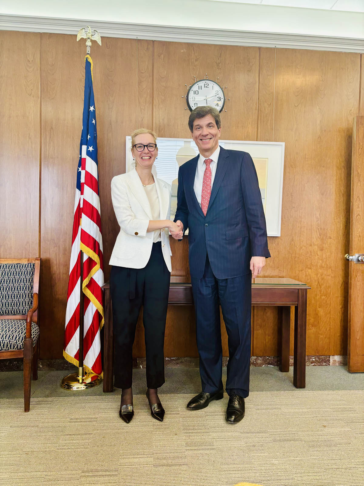 Der stellvertretende Wirtschaftsminister Don Graves hob im bilateralen Austausch die gute Partnerschaft auf der gemeinsamen Grundlage von Demokratie und Markwirtschaft hervor. Graves würdigte insbesondere die langjährigen, verlässlichen Beiträge liechtensteinischer Firmen an die US-Wirtschaft und lokale Lieferketten. Das Treffen bot auch Gelegenheit für eine offene Diskussion über mögliche Verbesserungen der wirtschaftlichen Rahmenbedingungen, zum Beispiel im Bereich der Investitionen. In der Berufsbildung besteht ebenfalls Potential für eine vertiefte Zusammenarbeit, nach der kürzlichen Unterzeichnung einer entsprechenden Absichtserklärung zwischen beiden Ländern.