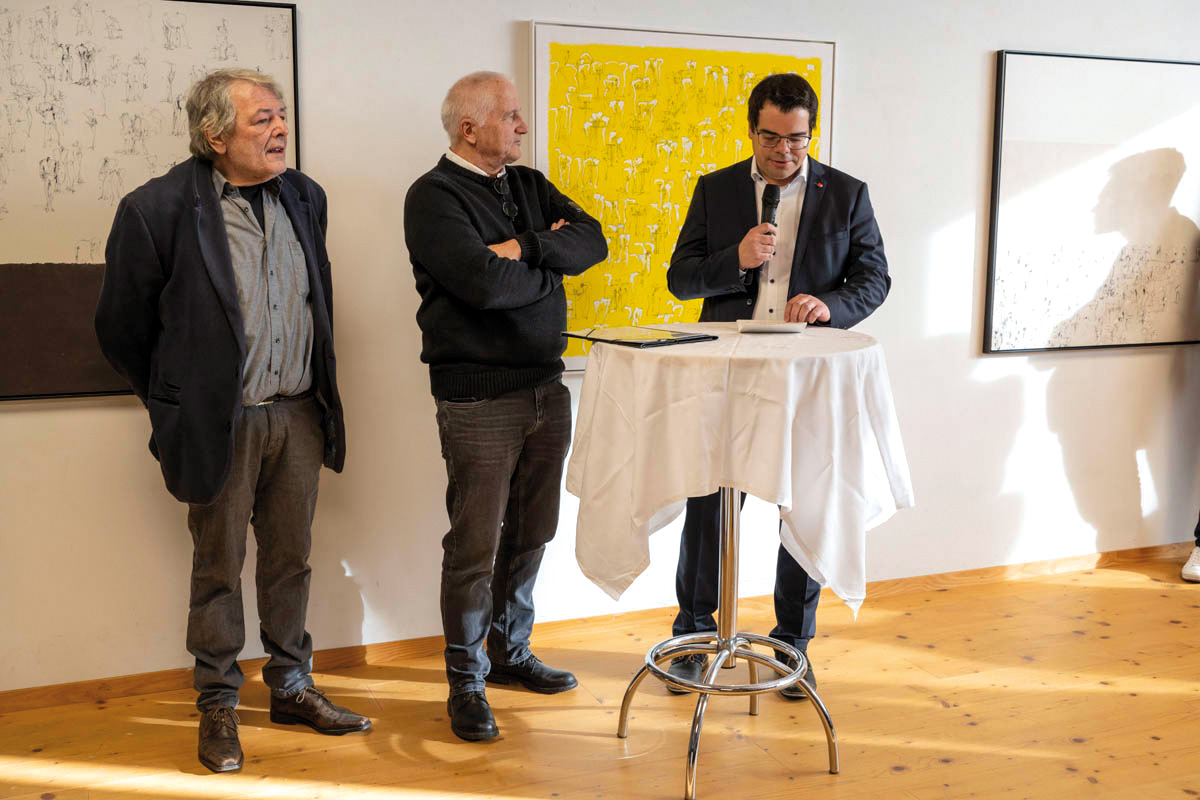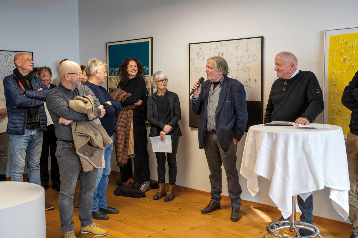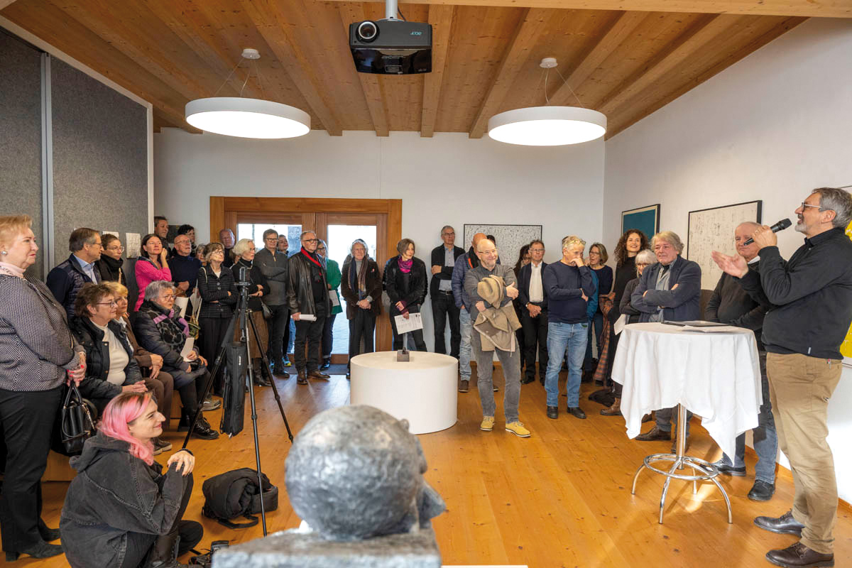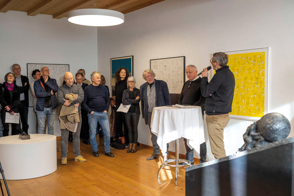 Am Sonntag, 14. Januar fand im Küefer-Martis-Huus in Ruggell die Ausstellungseröffnung «Mensch & Mythos» statt. Nach den Grussworten von Gemeindevorsteher Christian Öhri sprach Johannes Inama, der Leiter des Küefer-Martis-Huus, mit den beiden Künstlern Heinz P. Nitzsche und Günther Blenke über die Ausstellung, das Gemeinsame und die Gestaltungskraft.
