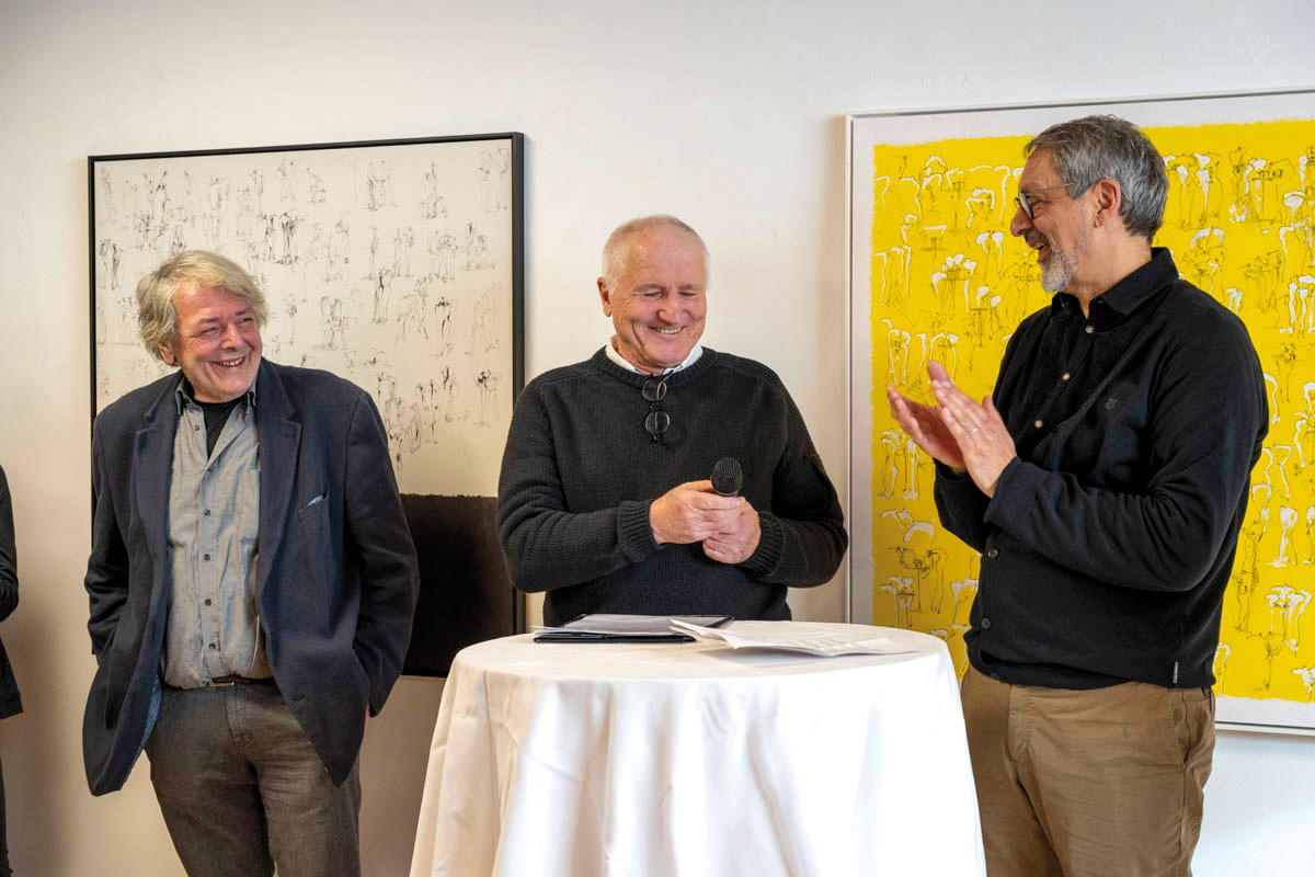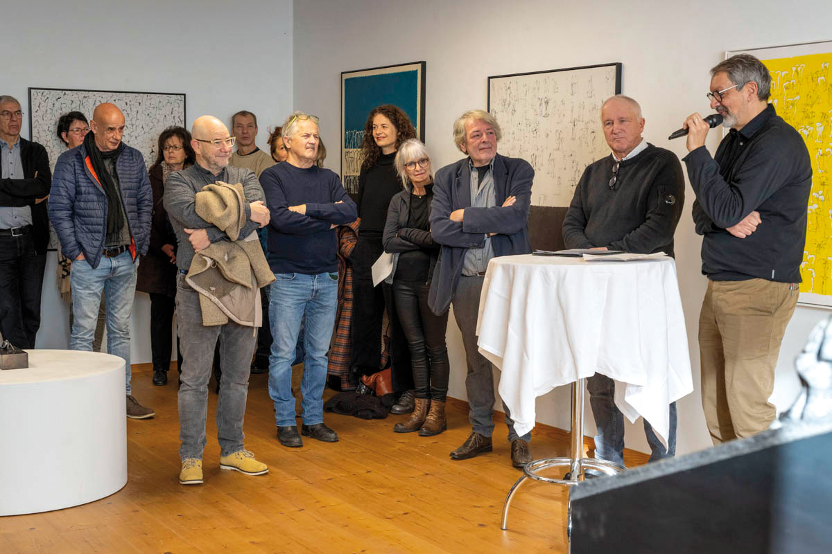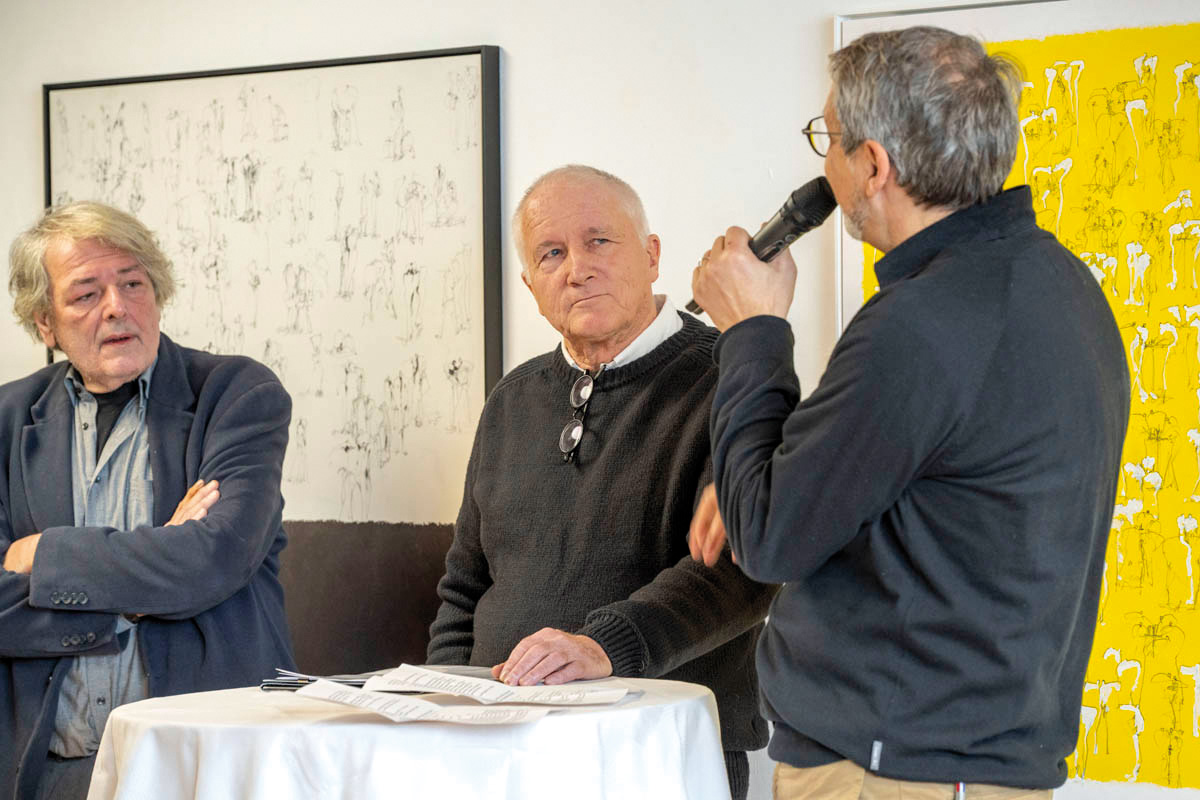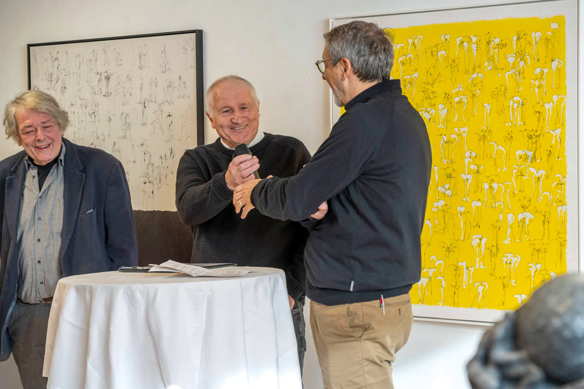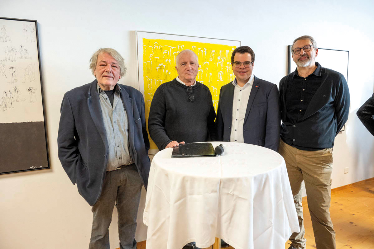 Am Sonntag, 14. Januar fand im Küefer-Martis-Huus in Ruggell die Ausstellungseröffnung «Mensch & Mythos» statt. Nach den Grussworten von Gemeindevorsteher Christian Öhri sprach Johannes Inama, der Leiter des Küefer-Martis-Huus, mit den beiden Künstlern Heinz P. Nitzsche und Günther Blenke über die Ausstellung, das Gemeinsame und die Gestaltungskraft.
