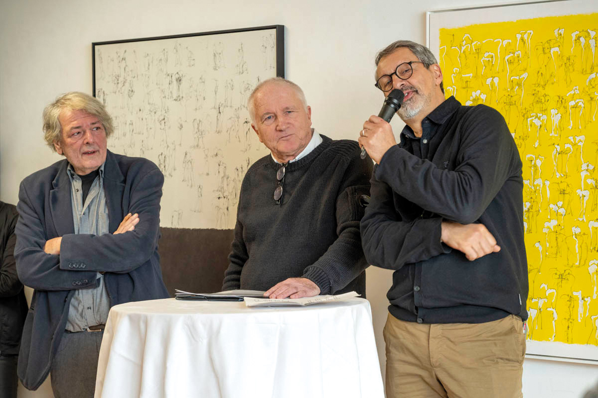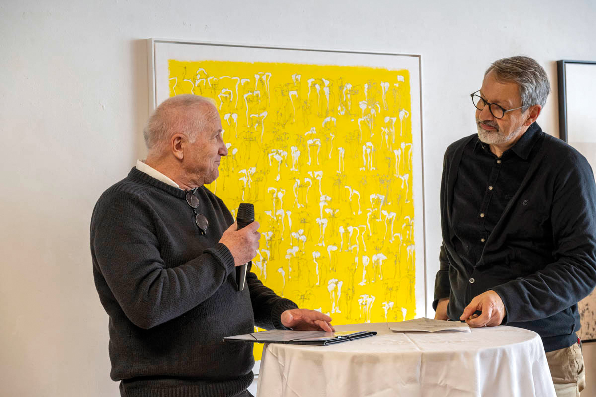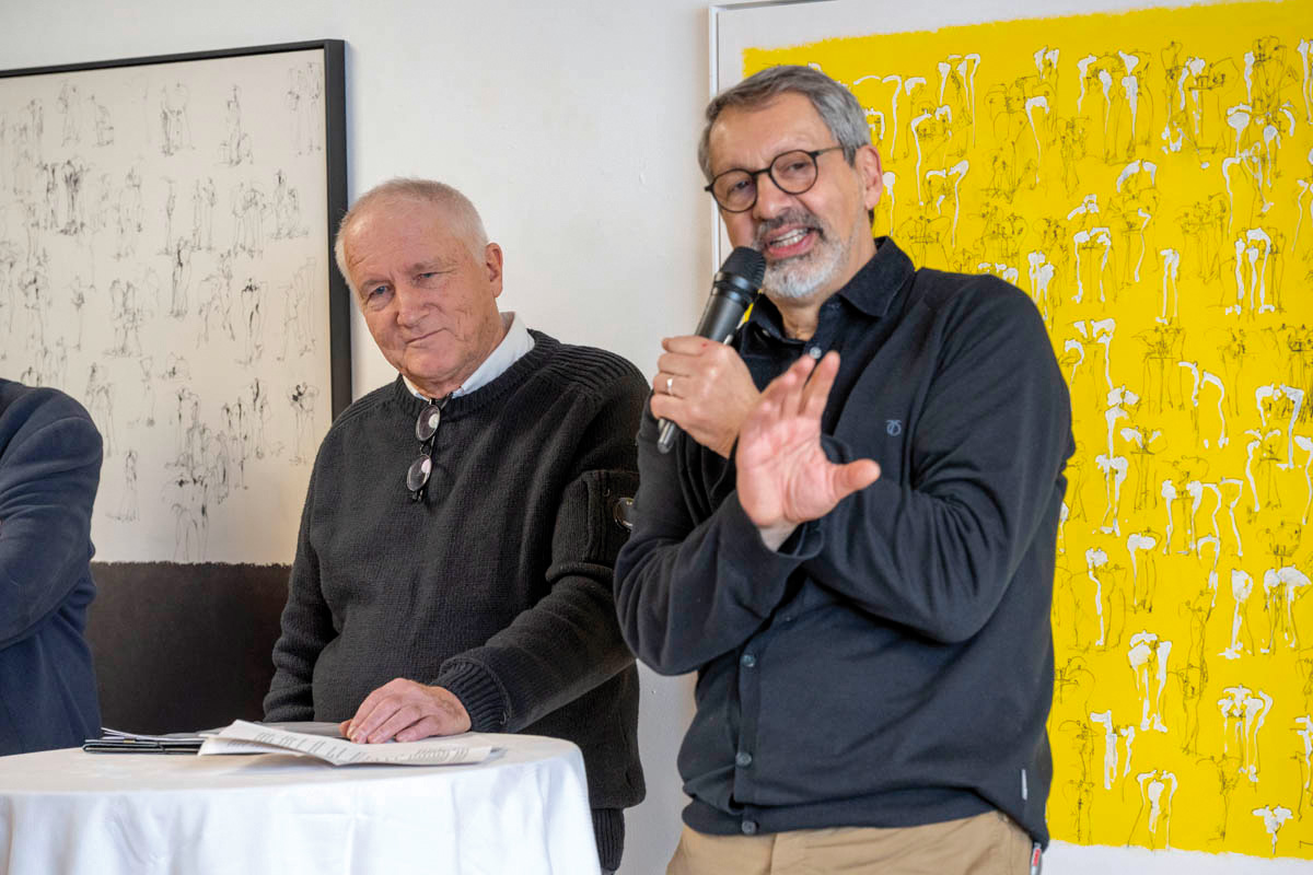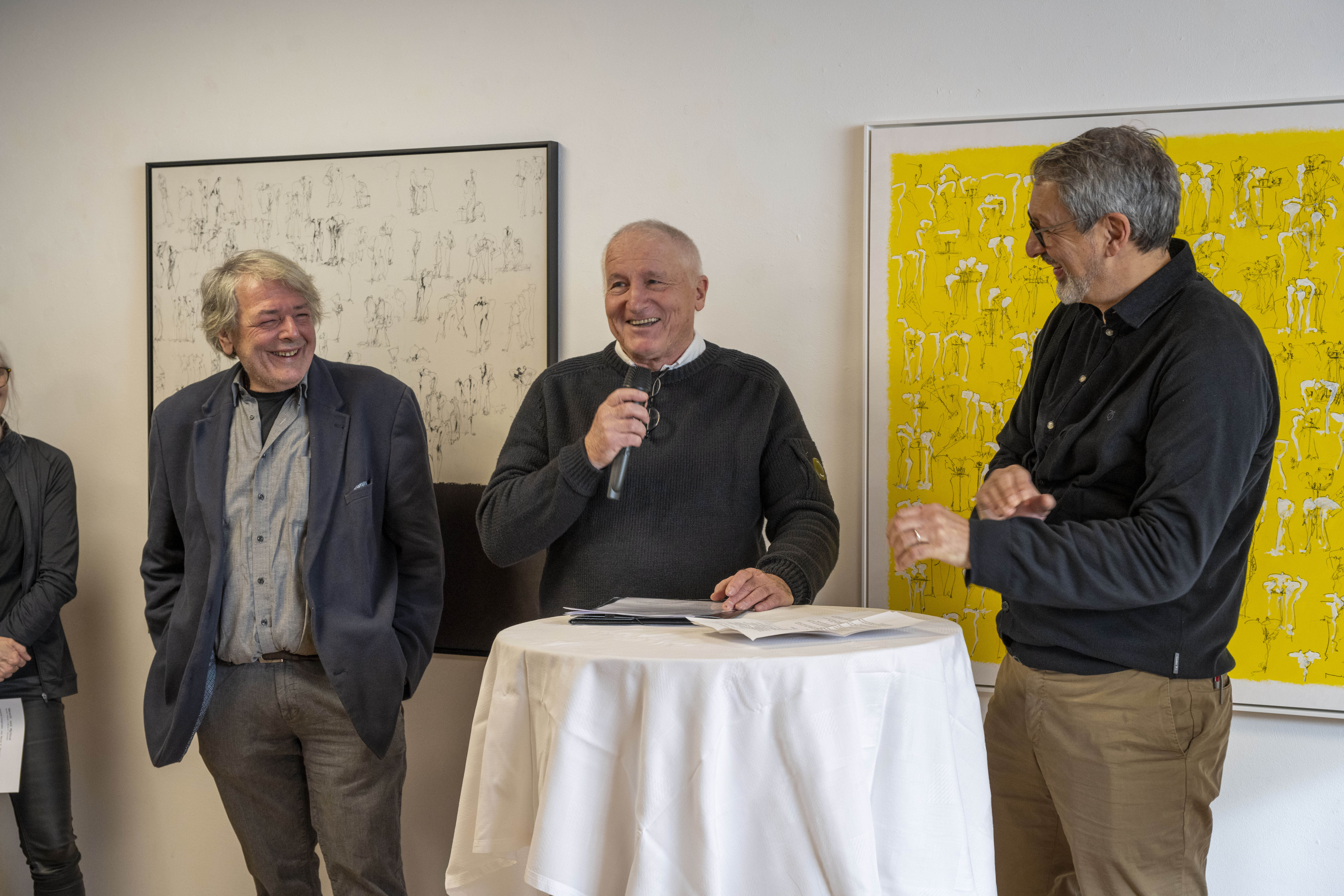 Am Sonntag, 14. Januar fand im Küefer-Martis-Huus in Ruggell die Ausstellungseröffnung «Mensch & Mythos» statt. Nach den Grussworten von Gemeindevorsteher Christian Öhri sprach Johannes Inama, der Leiter des Küefer-Martis-Huus, mit den beiden Künstlern Heinz P. Nitzsche und Günther Blenke über die Ausstellung, das Gemeinsame und die Gestaltungskraft.