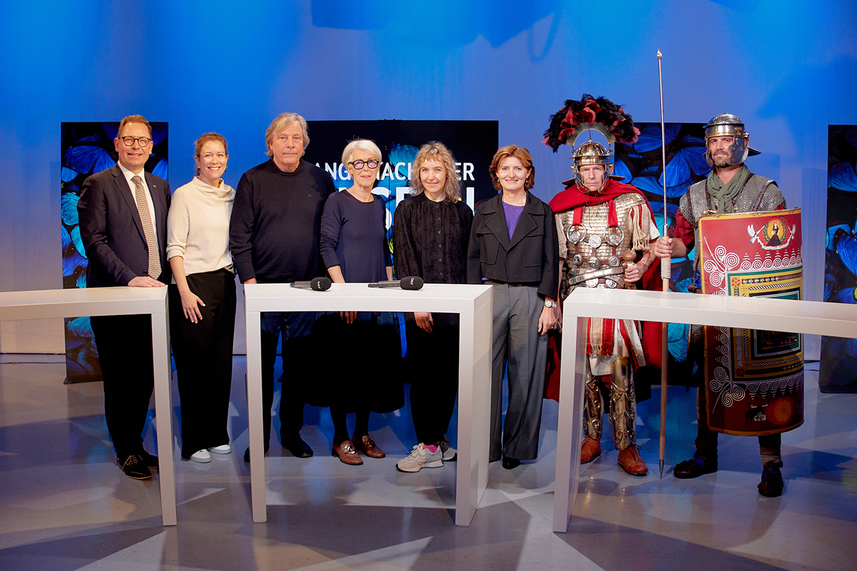 (Foto: v.l.) Markus Klement (Landesdirektor ORF Vorarlberg), Sandra Feurstein-Thaler (Projektleiterin ORF-Lange Nacht der Museen Vorarlberg, Agentur commA7), Walter Lingg (Barockbaumeister Museum Au), Theresia Fröwis (Museum Bezau), Daniela Fetz-Mages (S-MAK Lustenau), Jasmin Ölz (Kulturkoordinatorin ORF Vorarlberg), Gerhard Sohm und Lukas Matt (beide Freilichtmuseum Römervilla). Foto: © Anna Smirnova