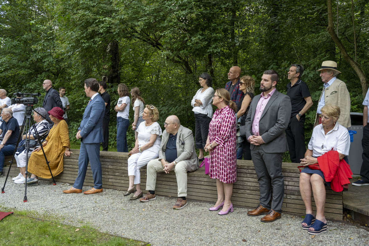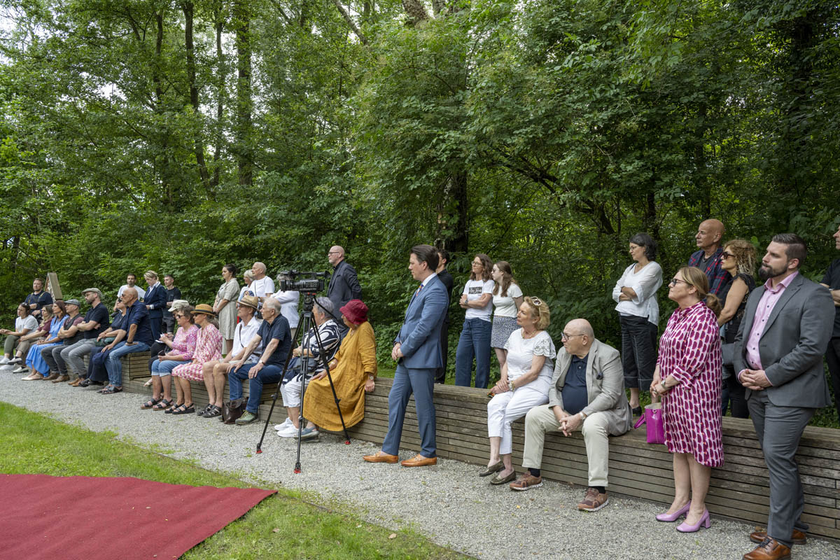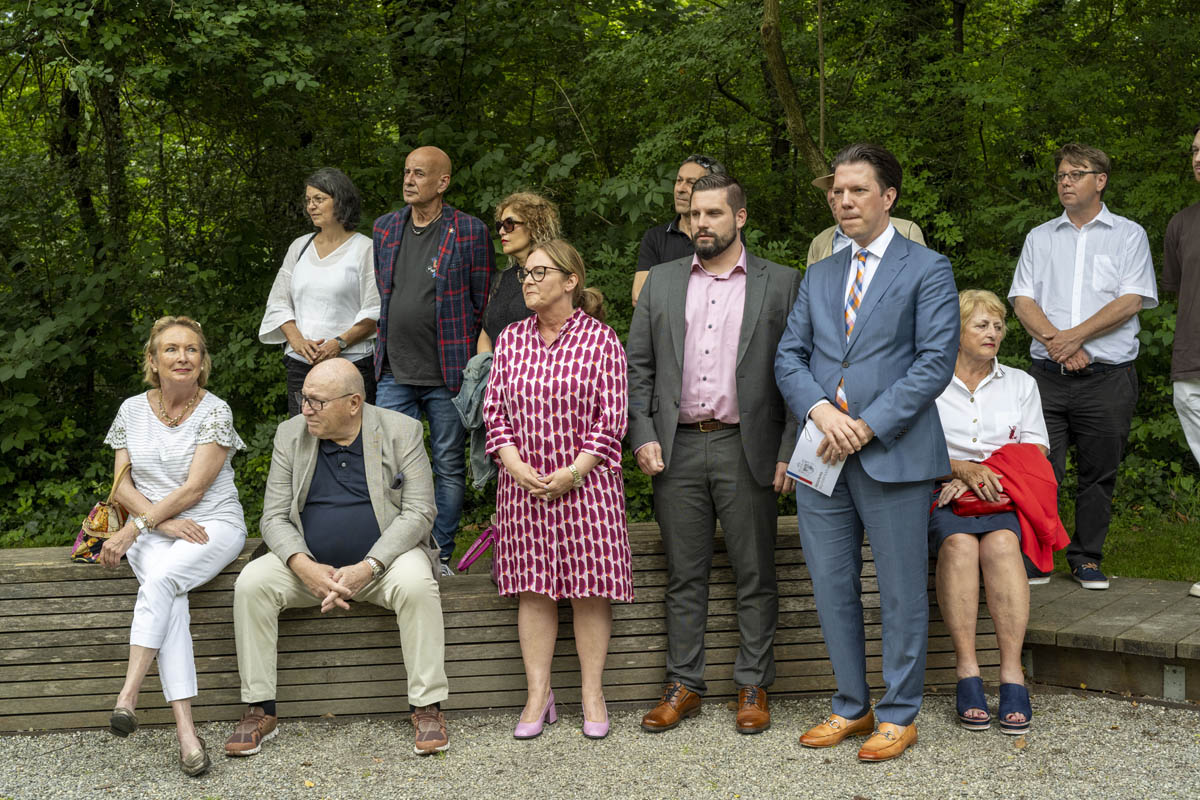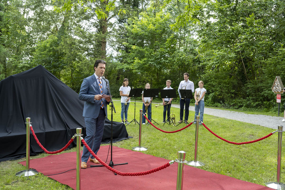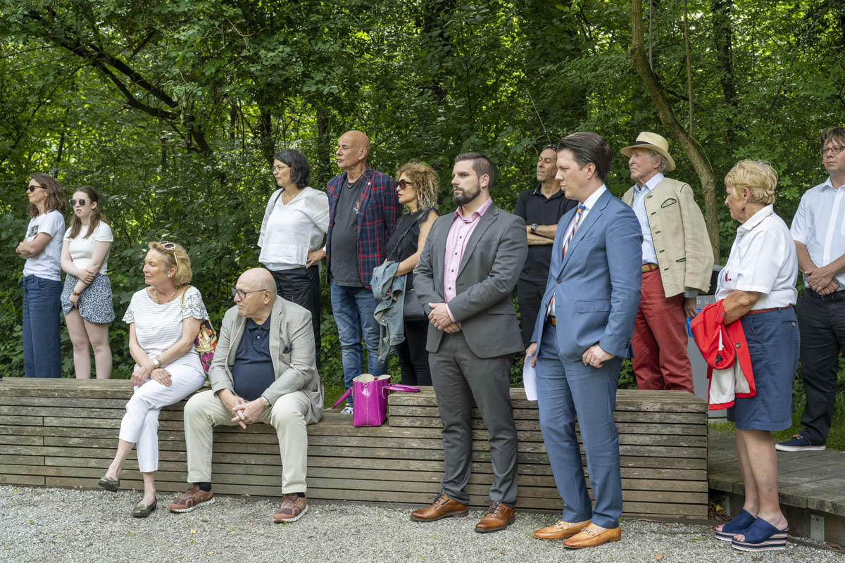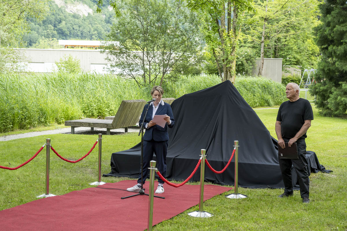 Besonderen Dank sprach er Alexandra Schädler, der Kulturbeauftragten von Vaduz aus, deren überzeugender Einsatz massgeblich zur Auswahl dieses wunderschönen Standorts beitrug: «Eine Vielzahl von potenziellen Standorten in ganz Vaduz wurden sorgfältig geprüft, diskutiert und bewertet. Nicht zuletzt durch den überzeugenden Einsatz von Alexandra Schädler kam dieses Werk auf diesem wunderschönen Platz zu stehen, einer immer wichtiger werdenden grünen Oase für Erholung und Begegnung.»