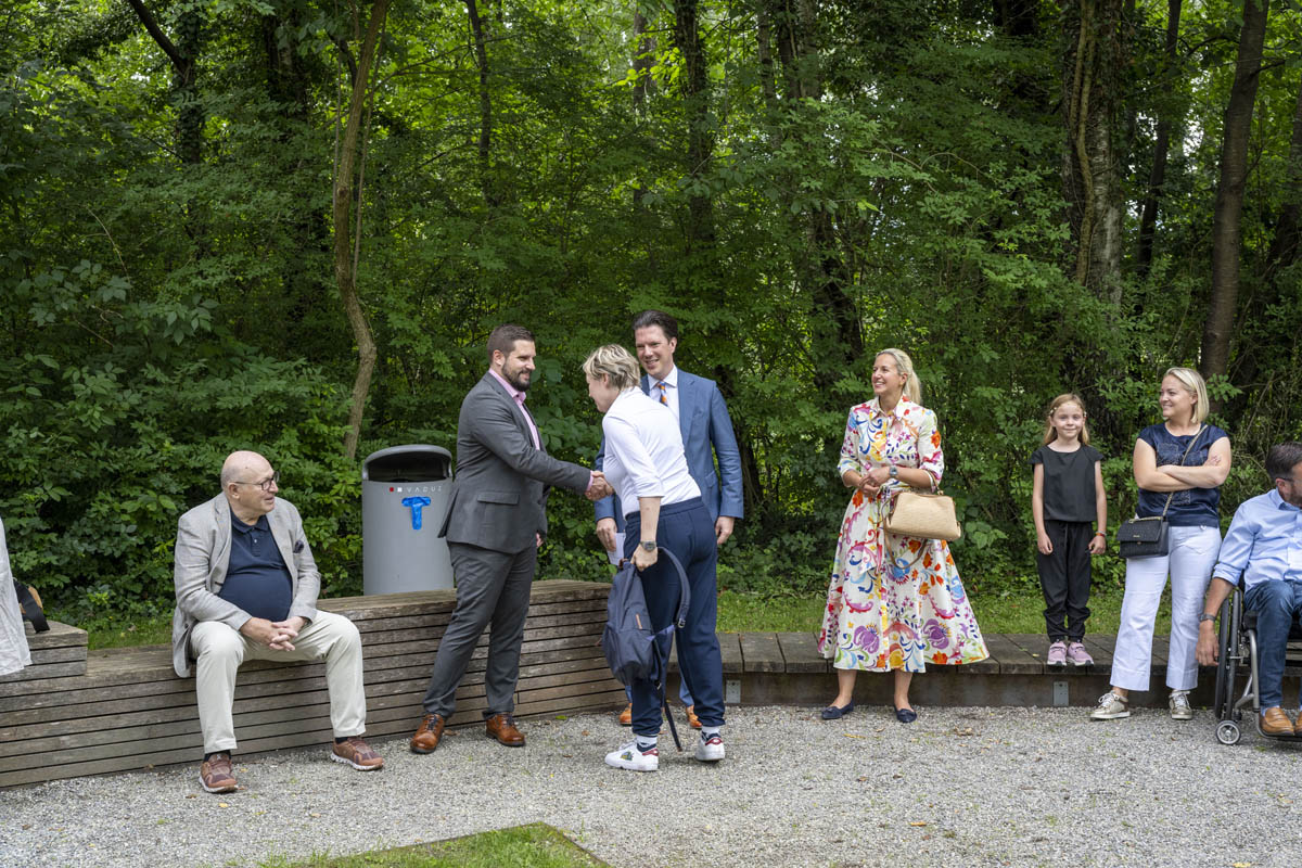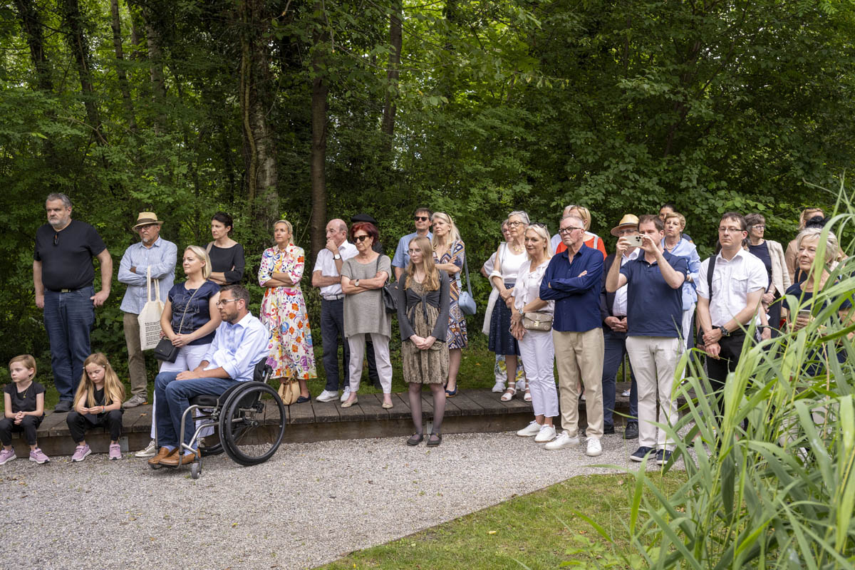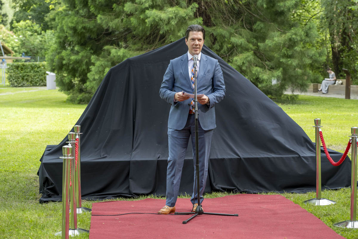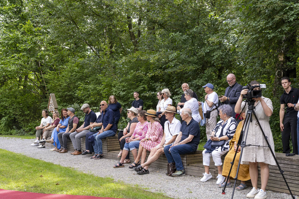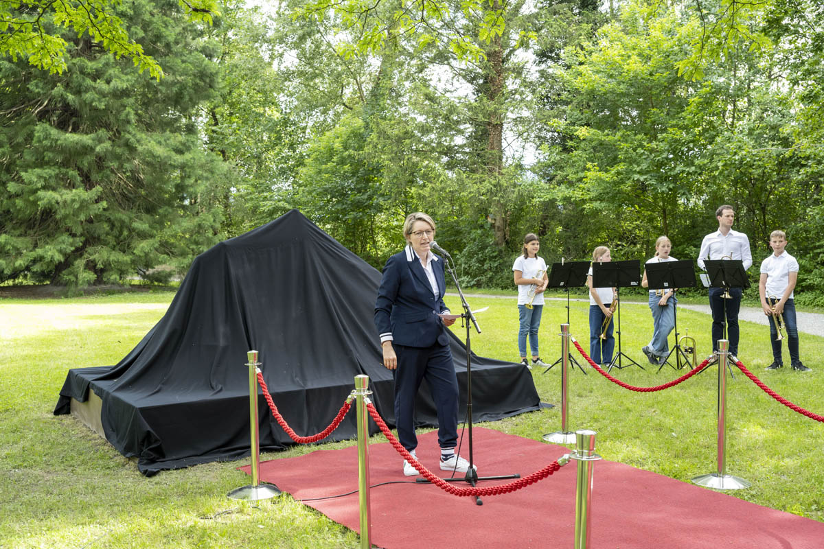 Besonderen Dank sprach er Alexandra Schädler, der Kulturbeauftragten von Vaduz aus, deren überzeugender Einsatz massgeblich zur Auswahl dieses wunderschönen Standorts beitrug: «Eine Vielzahl von potenziellen Standorten in ganz Vaduz wurden sorgfältig geprüft, diskutiert und bewertet. Nicht zuletzt durch den überzeugenden Einsatz von Alexandra Schädler kam dieses Werk auf diesem wunderschönen Platz zu stehen, einer immer wichtiger werdenden grünen Oase für Erholung und Begegnung.»