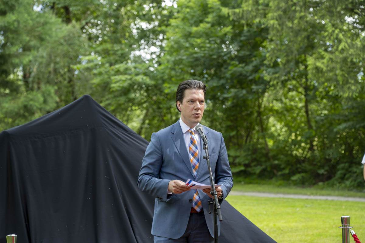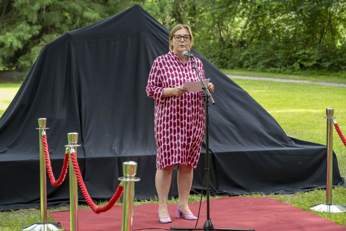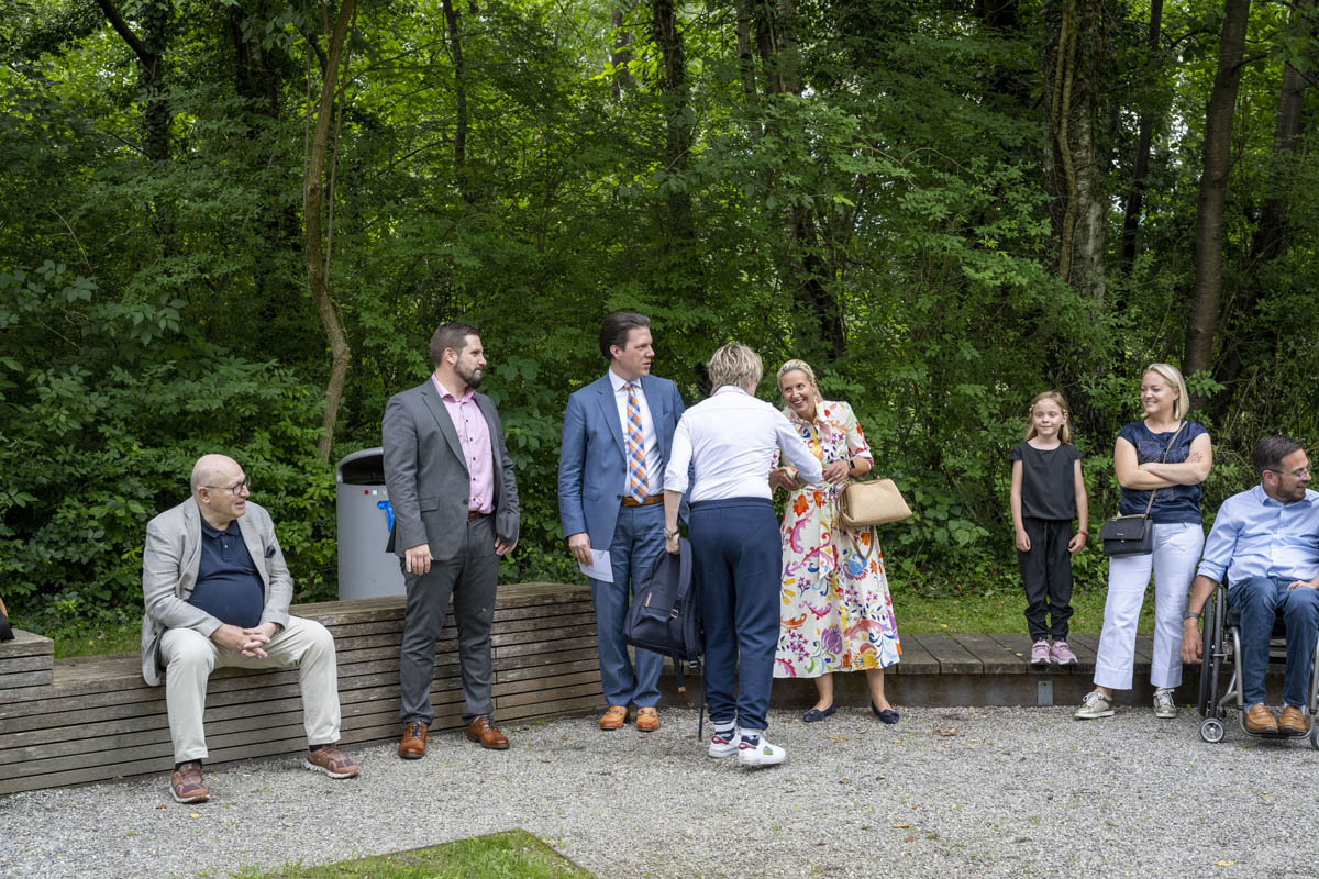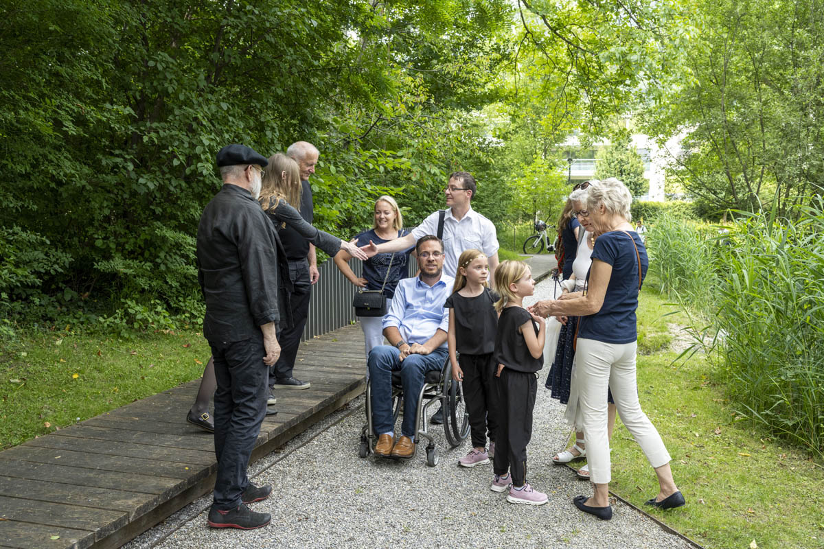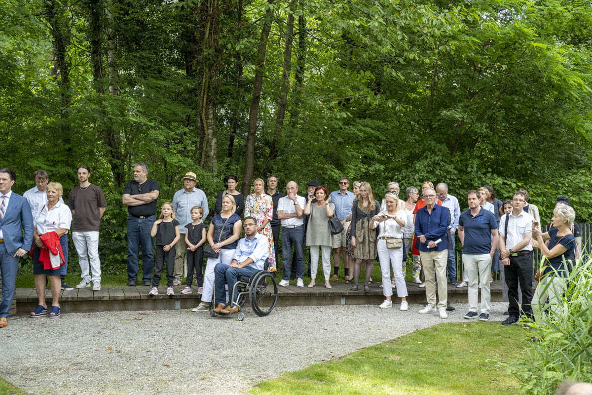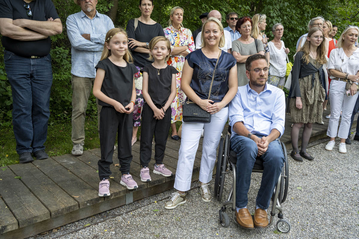 Besonderen Dank sprach er Alexandra Schädler, der Kulturbeauftragten von Vaduz aus, deren überzeugender Einsatz massgeblich zur Auswahl dieses wunderschönen Standorts beitrug: «Eine Vielzahl von potenziellen Standorten in ganz Vaduz wurden sorgfältig geprüft, diskutiert und bewertet. Nicht zuletzt durch den überzeugenden Einsatz von Alexandra Schädler kam dieses Werk auf diesem wunderschönen Platz zu stehen, einer immer wichtiger werdenden grünen Oase für Erholung und Begegnung.»