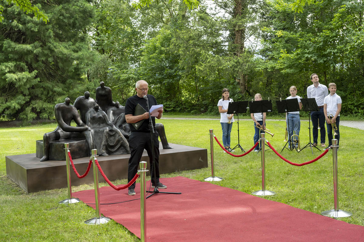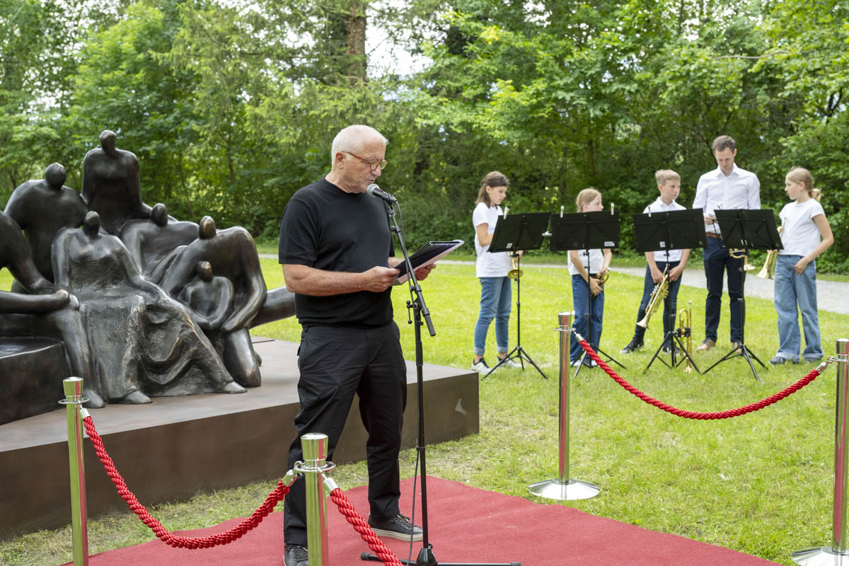 In seiner Ansprache drückte der Künstler Heinz P. Nitzsche seine tiefe Bewegtheit und Dankbarkeit aus: «Es ist mir eine grosse Freude, heute mit Ihnen die Inspiration und Leidenschaft zu teilen, die zur Erschaffung dieser Bronzeskulptur geführt haben und die wir nun gemeinsam feierlich enthüllen.»