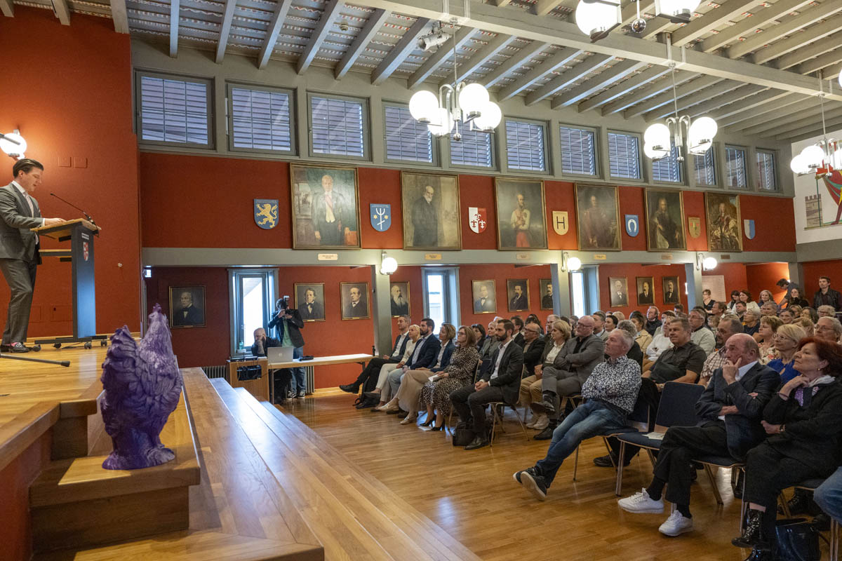 Vom 4. Mai bis zum 30. Oktober 2024 zeigt die 9. Schweizerische Triennale der Skulptur in Bad Ragaz und Vaduz Werke von 88 Künstlerinnen und Künstlern aus 19 Ländern. Am Mittwoch, 8. Mai 2024, wurde die Bad Ragartz im Rathaussaal Vaduz in Anwesenheit von Regierungsrat Manuel Frick, Bürgermeisterin Petra Miescher, Vorsitzende der Kulturkommission und Gemeinderätin der Gemeinde Vaduz Antje Moser, Familie Hohmeister und zahlreichen Kunstschaffenden feierlich eröffnet.