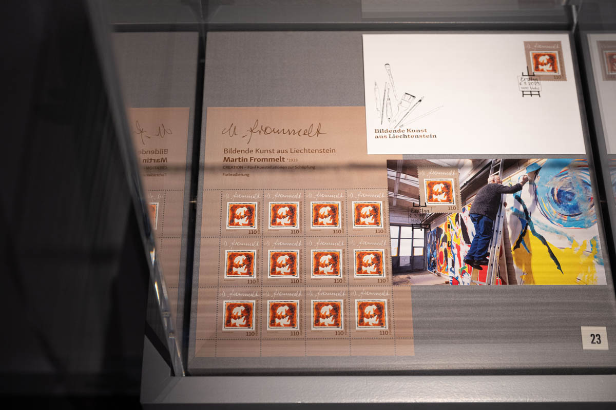 Die Sonderausstellung im Liechtensteinischen PostMuseum beleuchtet das Briefmarkenschaffen von Martin Frommelt. Die von ihm stammenden 24 liechtensteinische Briefmarken, die er zwischen 1959 und 2023 gestaltete, behandeln die Themen Religion und Weihnachten, Bäume und Sträucher in Liechtensteiner Landschaften, Flugpost sowie Kunst. Er entwarf mehrere Europamarken. Skizzen, alle Originalentwürfe sowie seine nicht umgesetzten Entwürfe für Gestaltungswettbewerbe und Automatenmarken sind noch bis 18. Februar 2024 im Liechtensteinische PostMuseum ausgestellt.