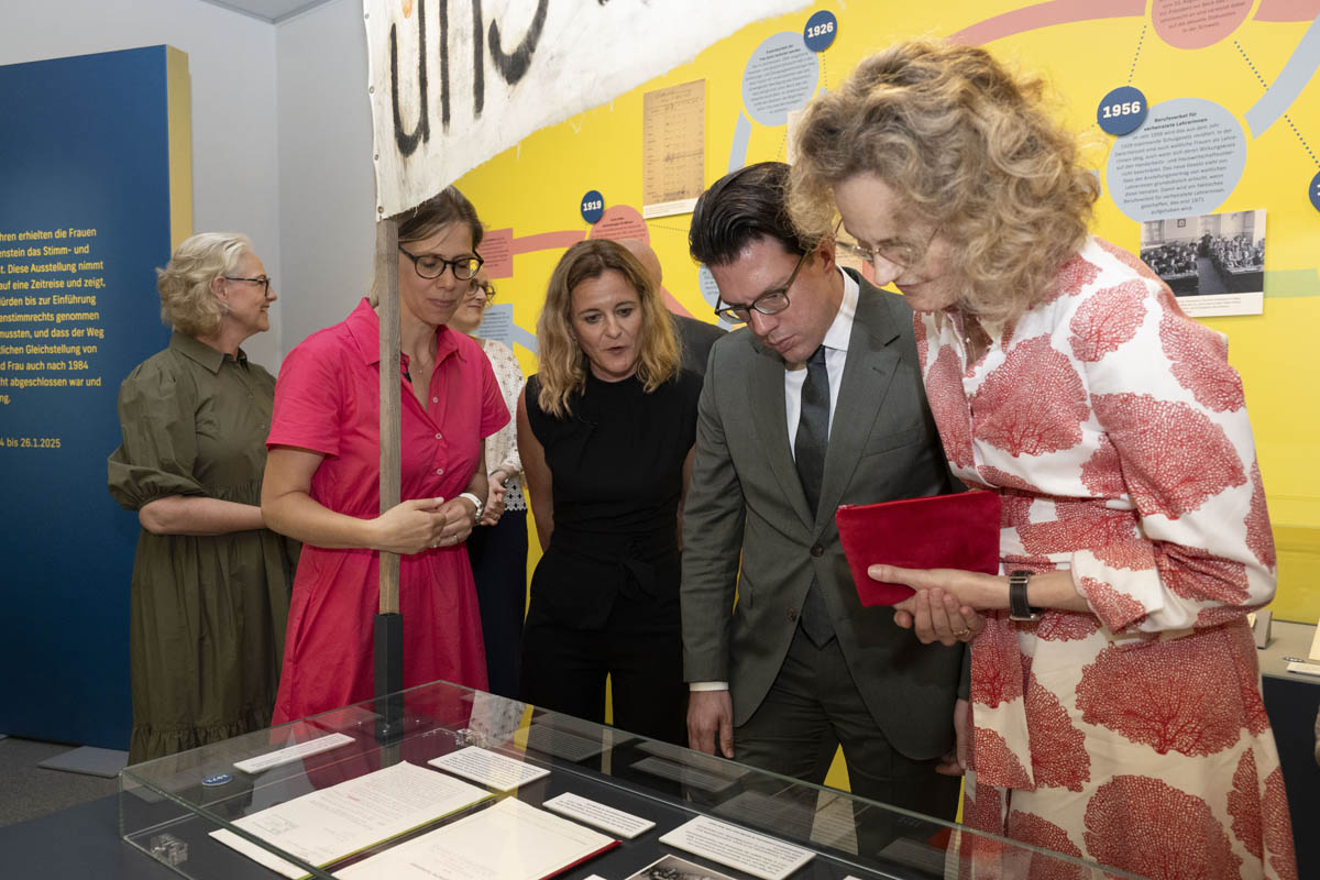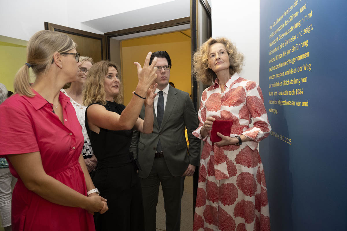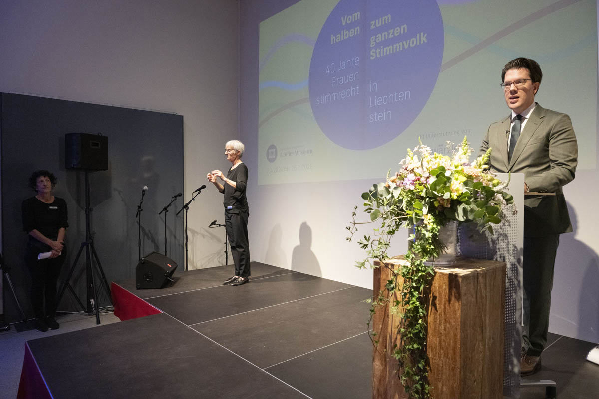 Die von Julia Frick und Martina Sochin-D'Elia kuratierte und von der neuen Direktorin des Liechtensteinischen Landesmuseums Andrea Kauer Loens verantwortete Ausstellung setzt genau hier an. Sie erinnert uns und schärft das Bewusstsein für die Gleichstellung. Wir dürfen nicht vergessen, welchen harten und langwierigen Kampf die Wegbereiterinnen und Wegbereiter des Frauenstimmrechts führen mussten. Wir dürfen nicht vergessen, wie viel Mut und Ausdauer sie benötigten, um den vielen Anfeindungen zu trotzen und sich ihre Entschlossenheit und den Glauben an einen guten Ausgang zu bewahren. Und wir dürfen nicht vergessen, dass die Gleichstellung der Frau auch nach 1984 oftmals ein zähes Ringen blieb und bis heute nicht in allen Lebensbereichen erreicht ist», so Regierungsrat Manuel Frick in seiner Begrüssungsrede.
