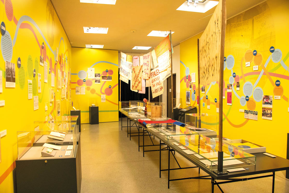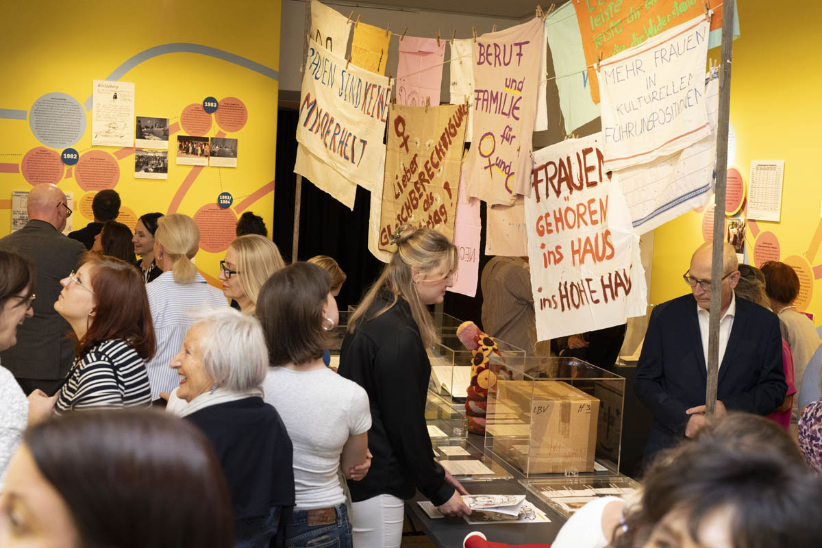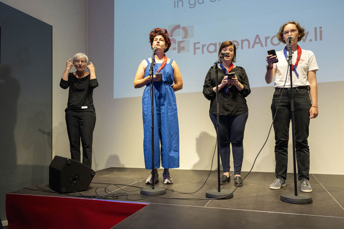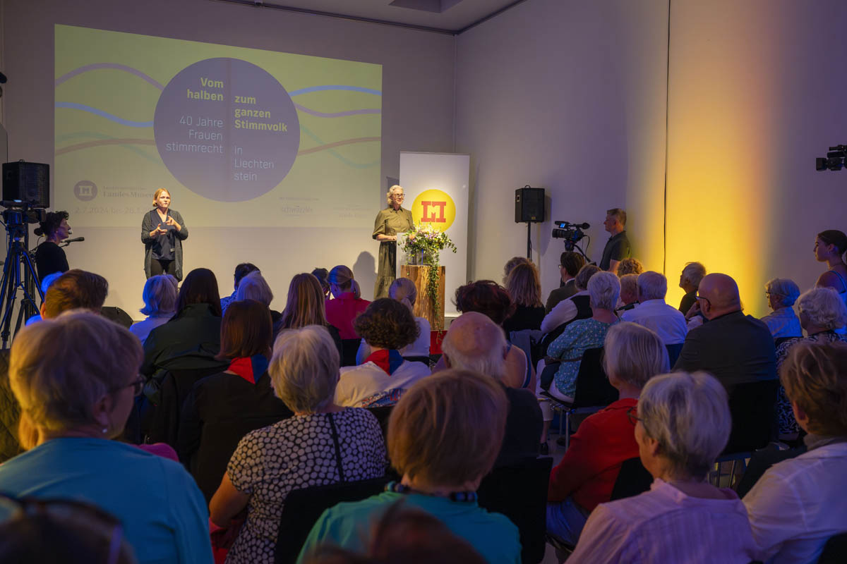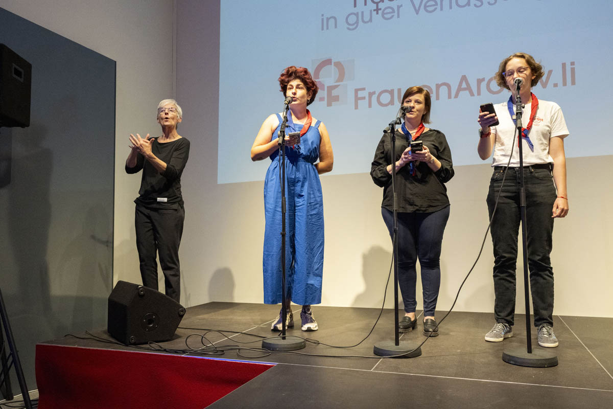 Nach den Grussworten der Stiftungsratspräsidentin Jasmin Collini Heidegger und Astrid Walser vom Verein Frauen in guter Verfassung führten die beiden Kuratorinnen Julia Frick und Martina Sochin-D'Elia die Gäste in die Sonderausstellung ein. Musikalisch umrahmt wurde der Abend von Markus Gsell am Saxophon, und Pfadfinderinnen trugen das «Frauenlied» vor, welches 1969 von der Pfadfinderin Judith Marxer getextet wurde. Nach einem Rundgang durch die Sonderausstellung liessen die Gäste den Abend bei einem Apéro ausklingen, bei dem die sehenswerte und wertvolle Ausstellung zu angeregten Diskussionen und Gesprächen führte.