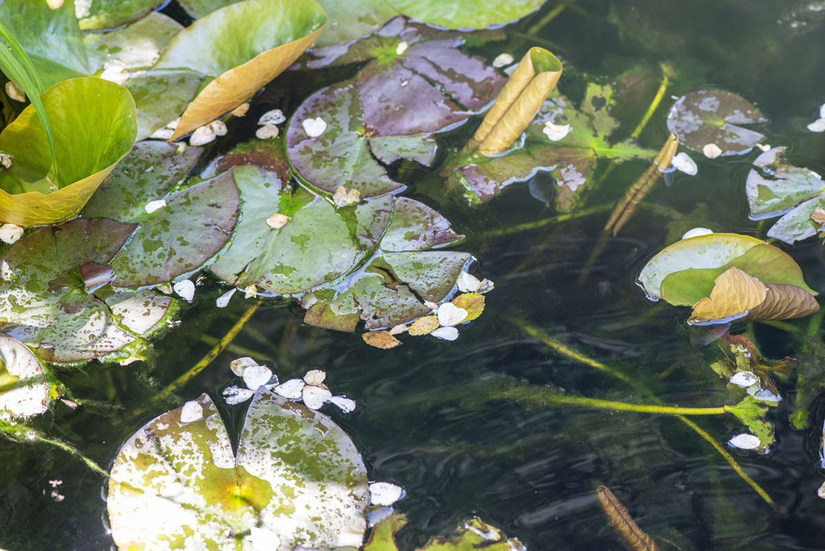 Der Rosengarten beherbergt einen kleinen Teich, auf dem unzählige Insekten leben. Es gibt Kaulquappen zu sehen und sogar kleine Fische.